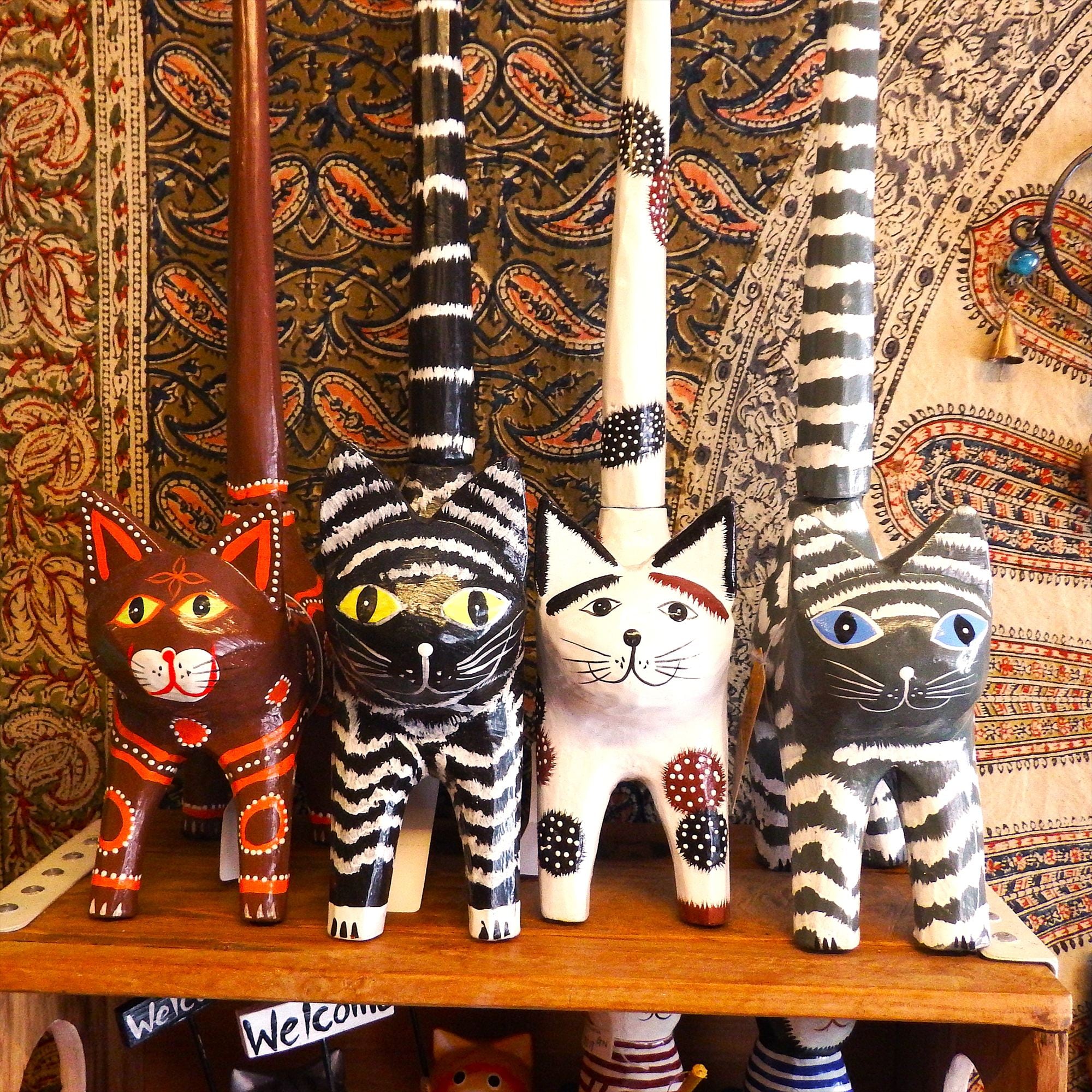 ネコ 置物 可愛い オブジェ 黒ネコ ワンピースネコ インドネシア アジアン雑貨