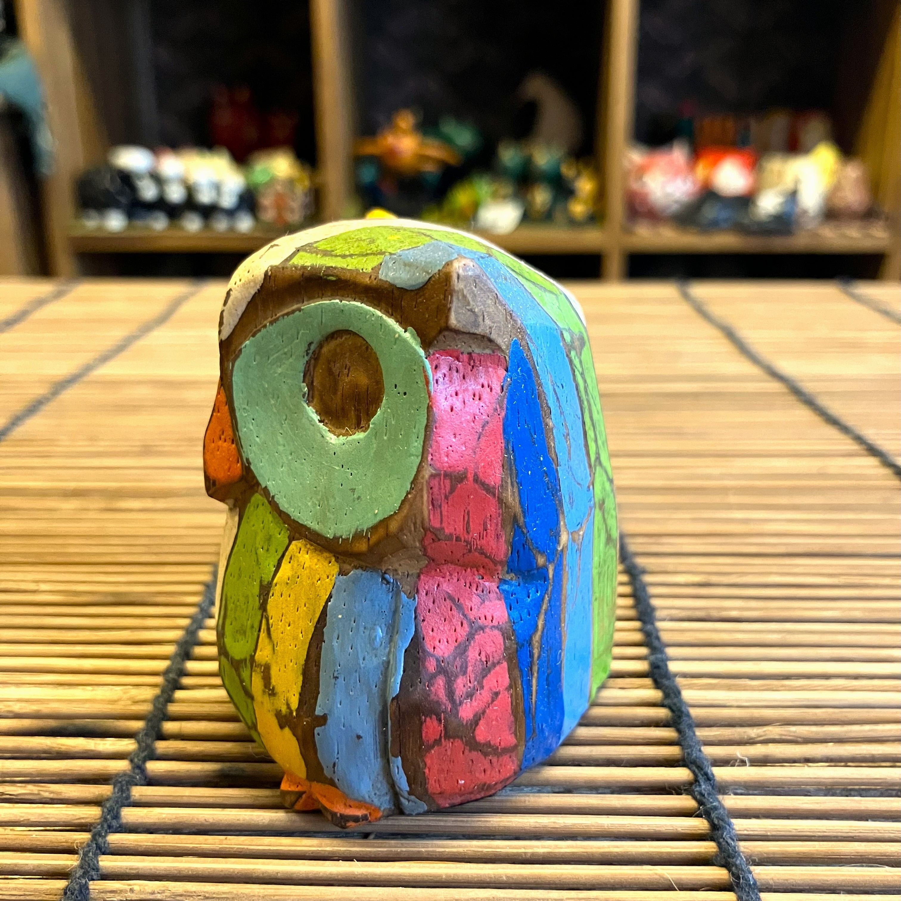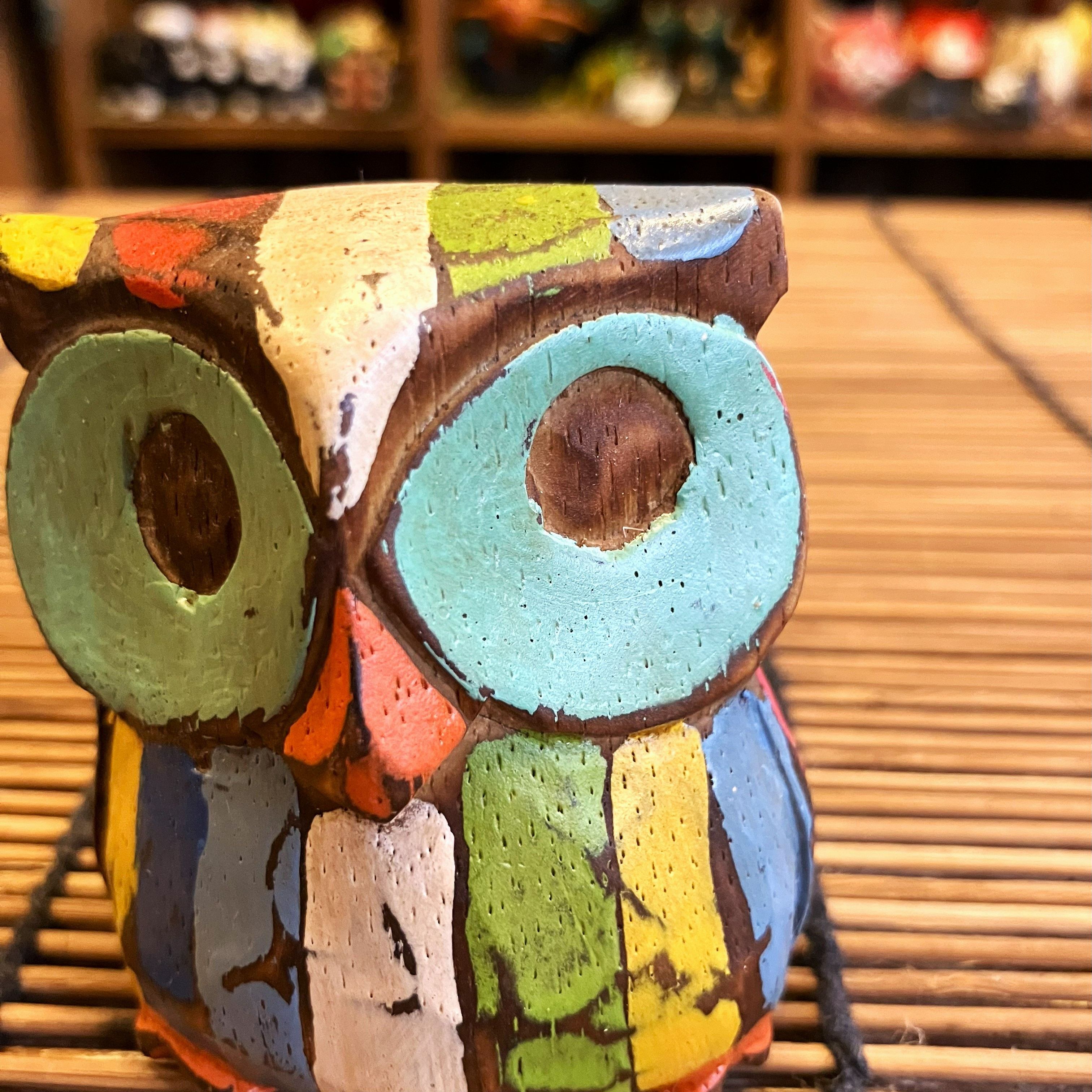 やや小ぶりのシャービックフクロウ Sサイズは、自然の温もりを感じられる可愛い置物です。