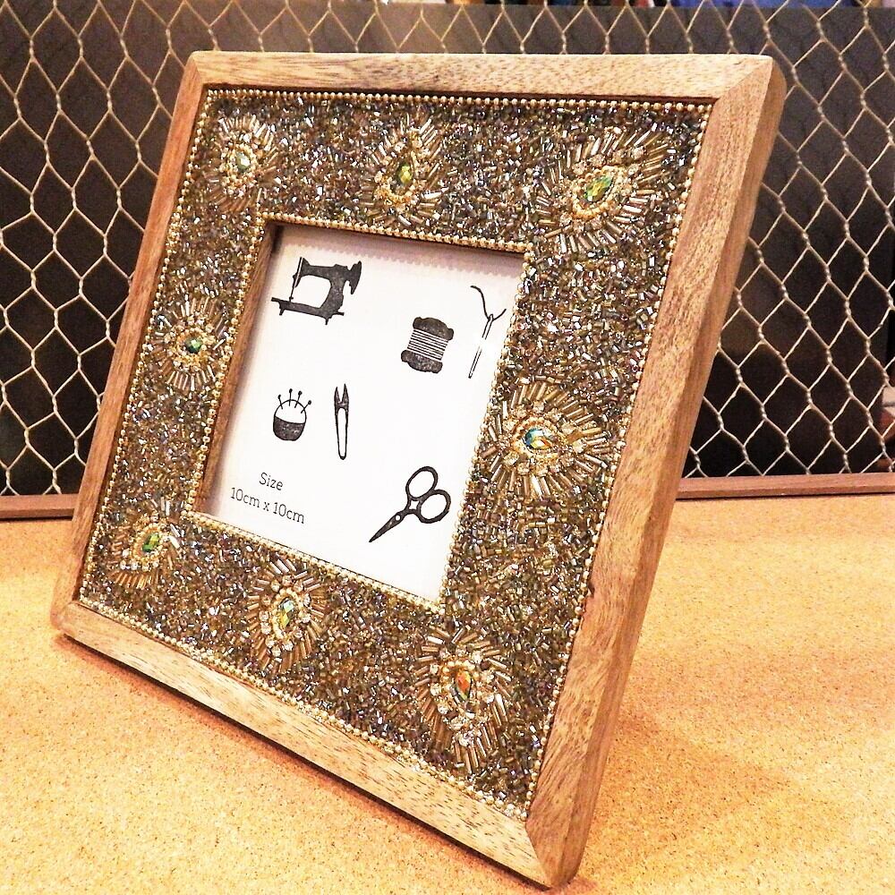 ナチュラルウッドとビーズを組み合わせた素敵なフォトフレームです。