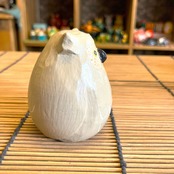 たまごのようなフォルムと手のひらサイズがとっても可愛い木彫りの置物です。