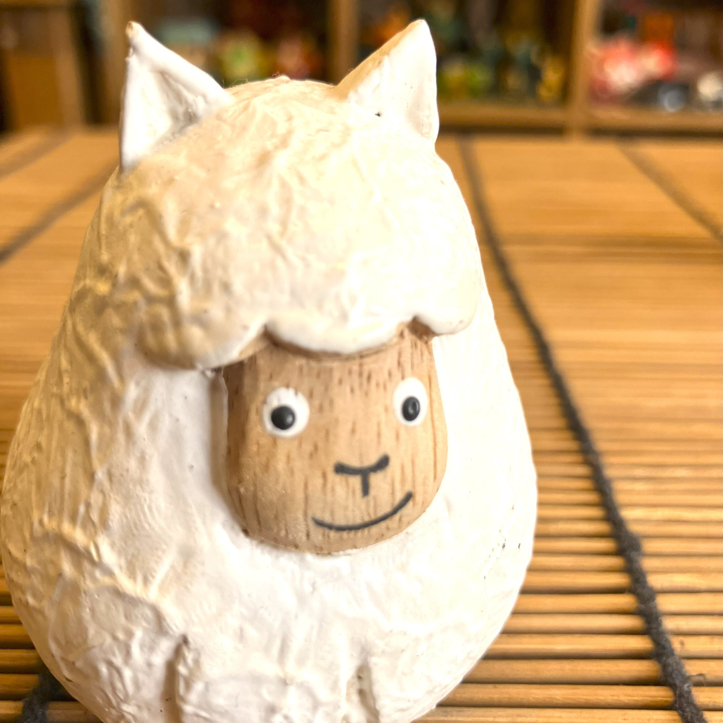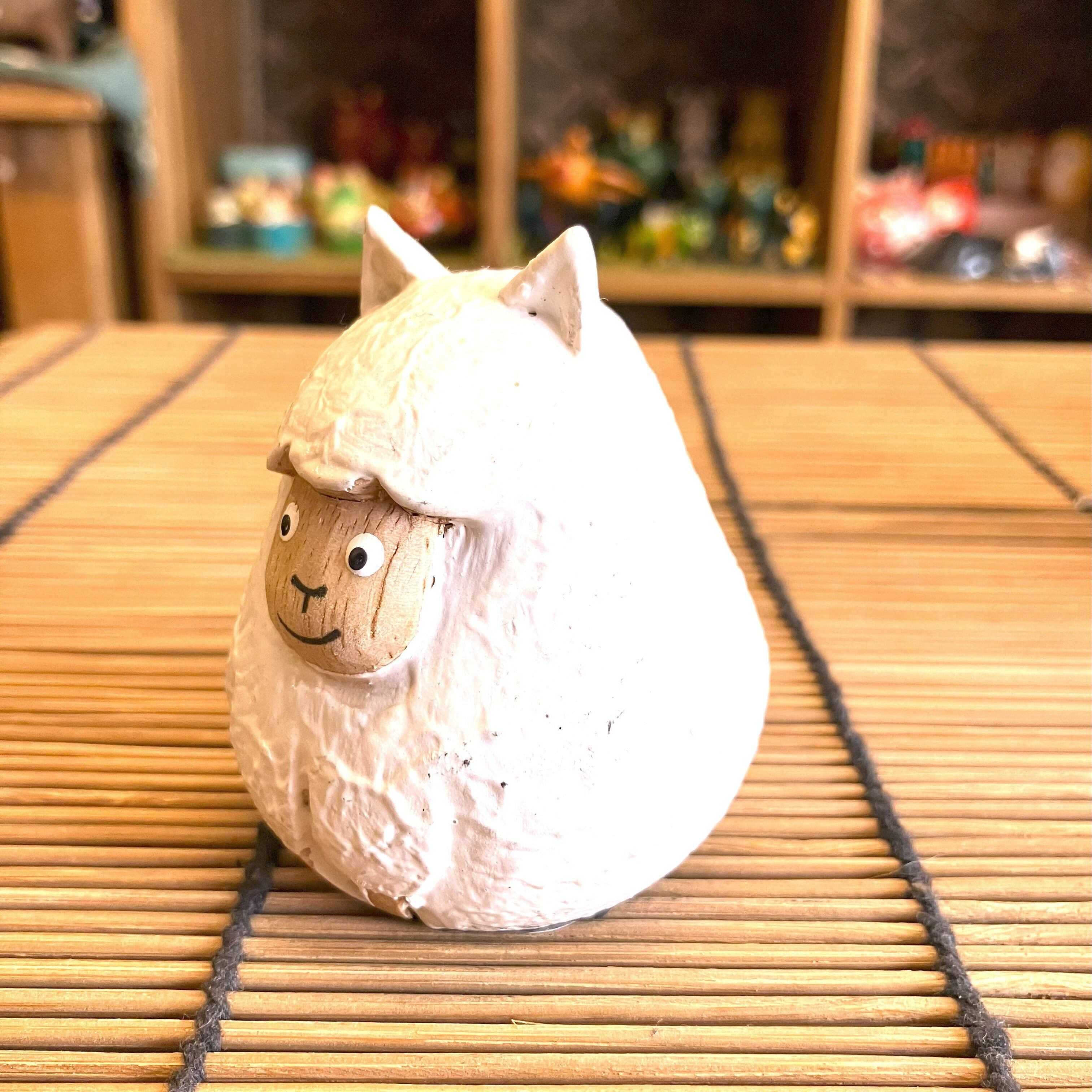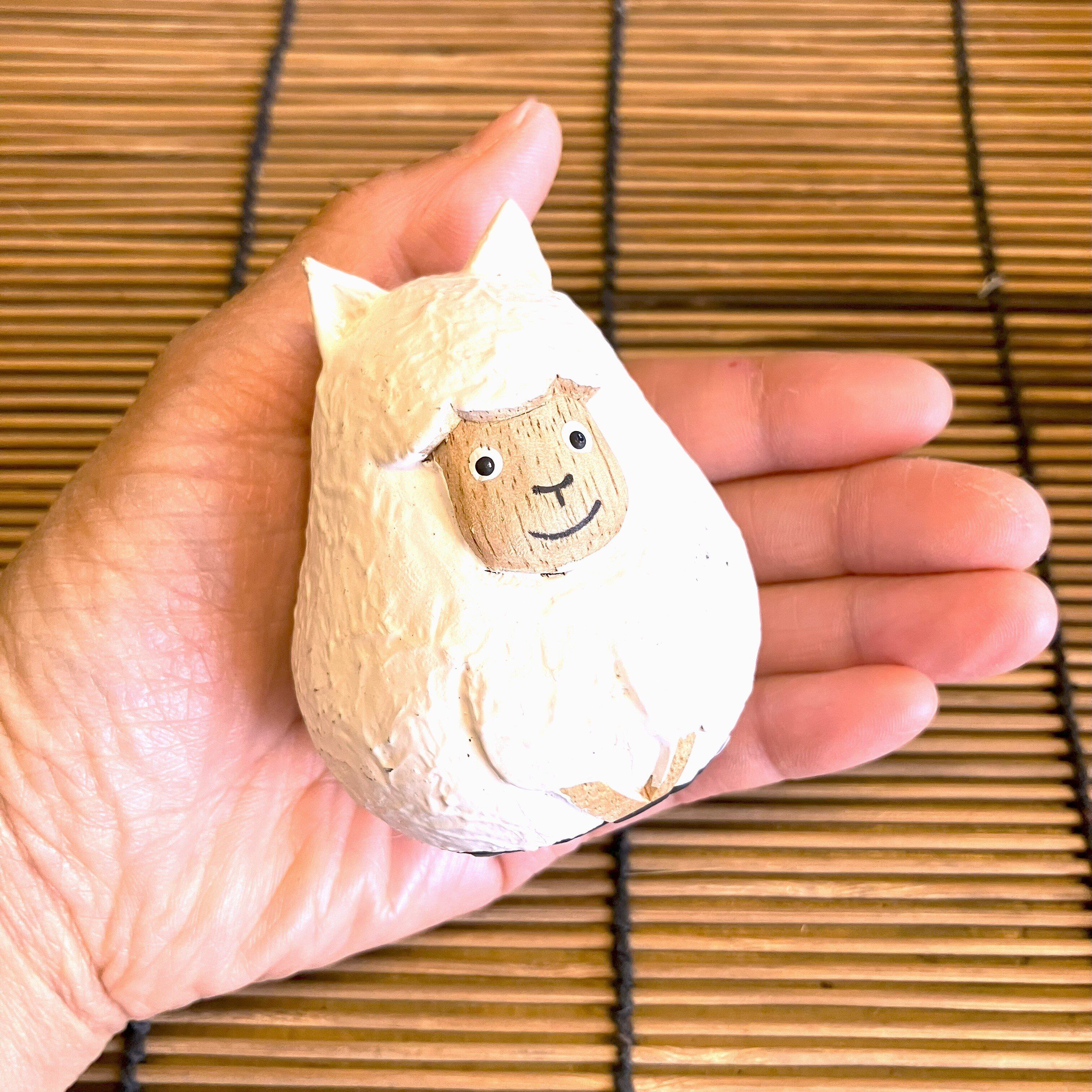 たまごのようなフォルムと手のひらサイズがとっても可愛い木彫りの置物です。