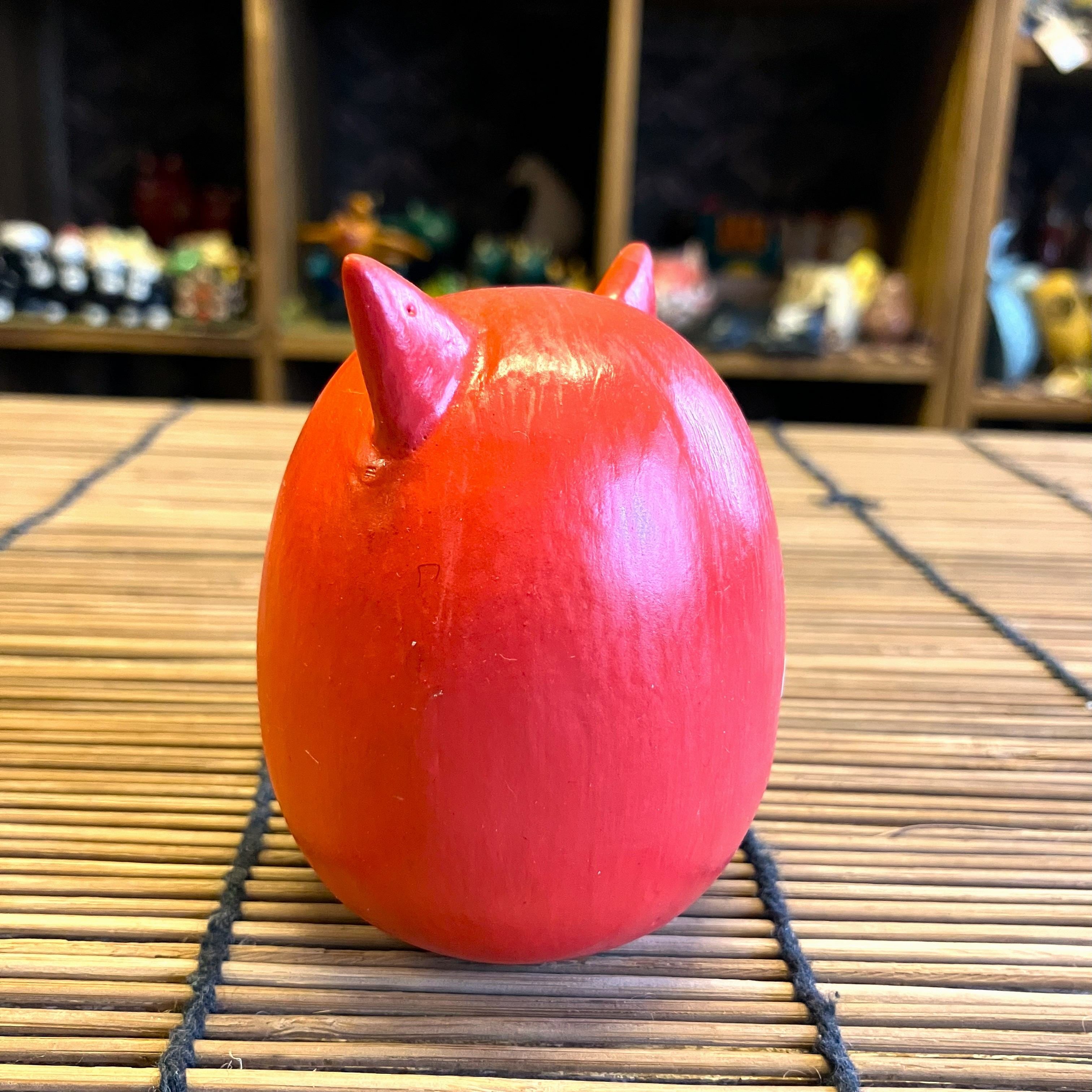 たまごのようなフォルムと手のひらサイズがとっても可愛い木彫りの置物です。