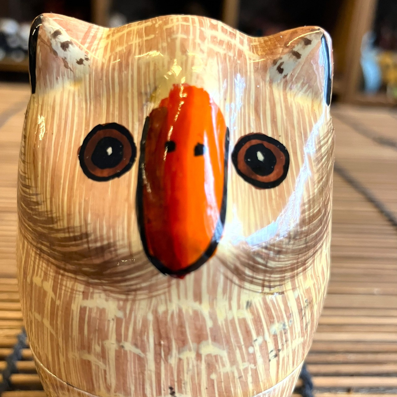 立ち姿が愛らしいフクロウ(梟)をモチーフにした、小物入れ兼オブジェです。