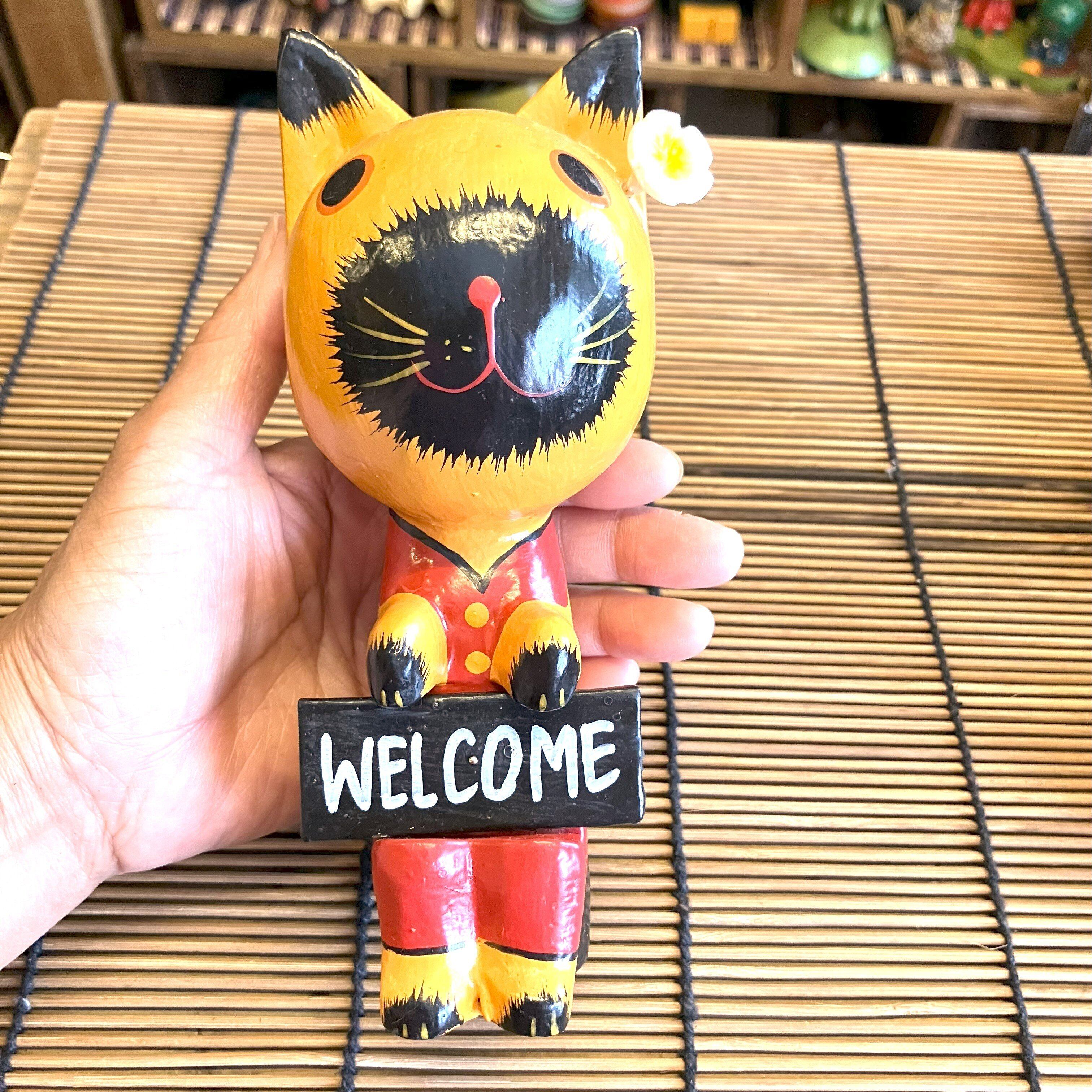 ウェルカムボードを持つ少し大き目のネコオブジェです。