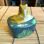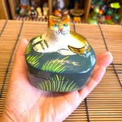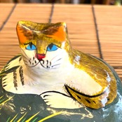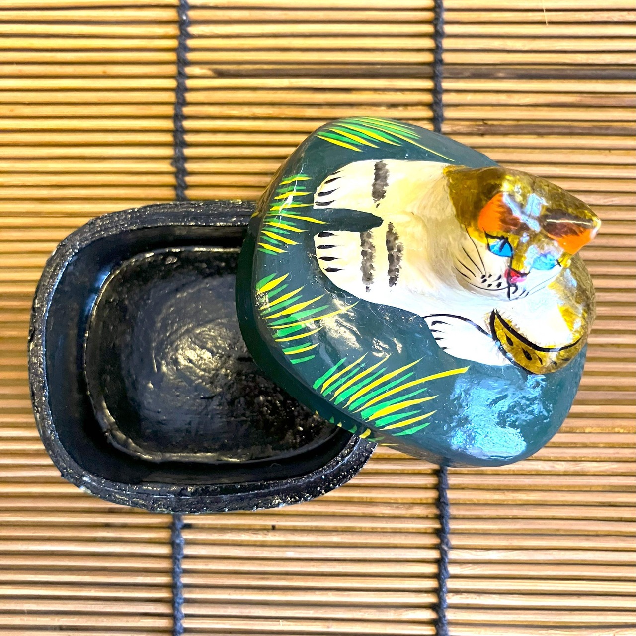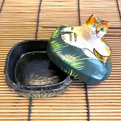 インドのカシミール地方伝統の手仕事、ペーパーマッシュのネコBOXです。