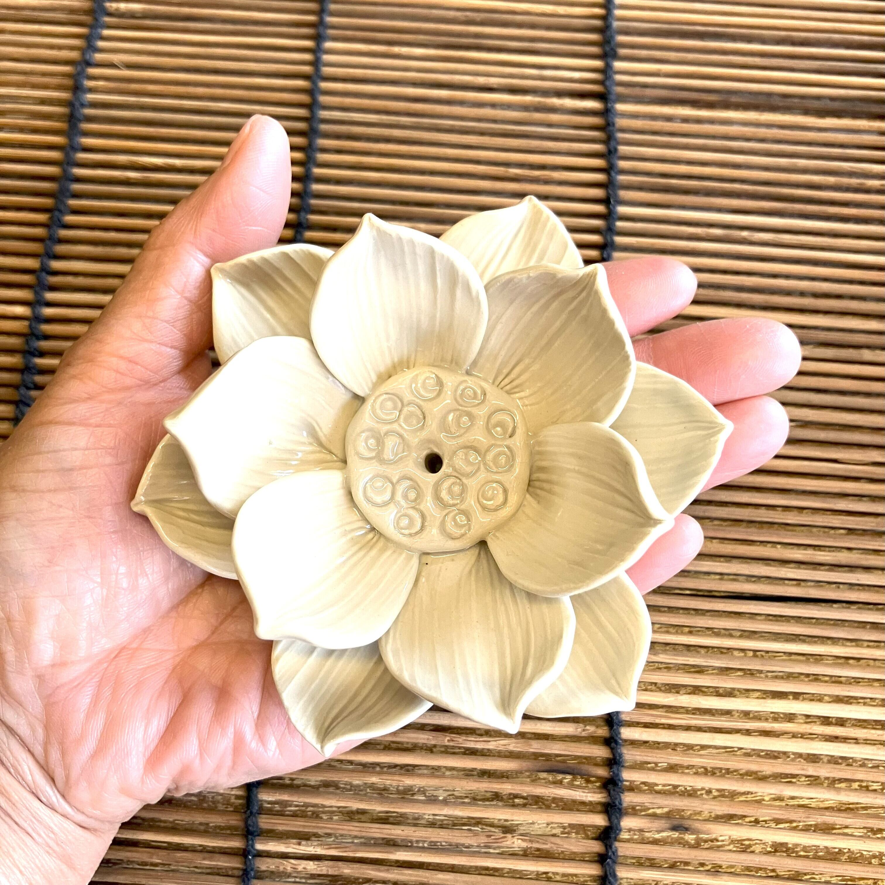 <香立て セラミックロータス L ナチュラル>