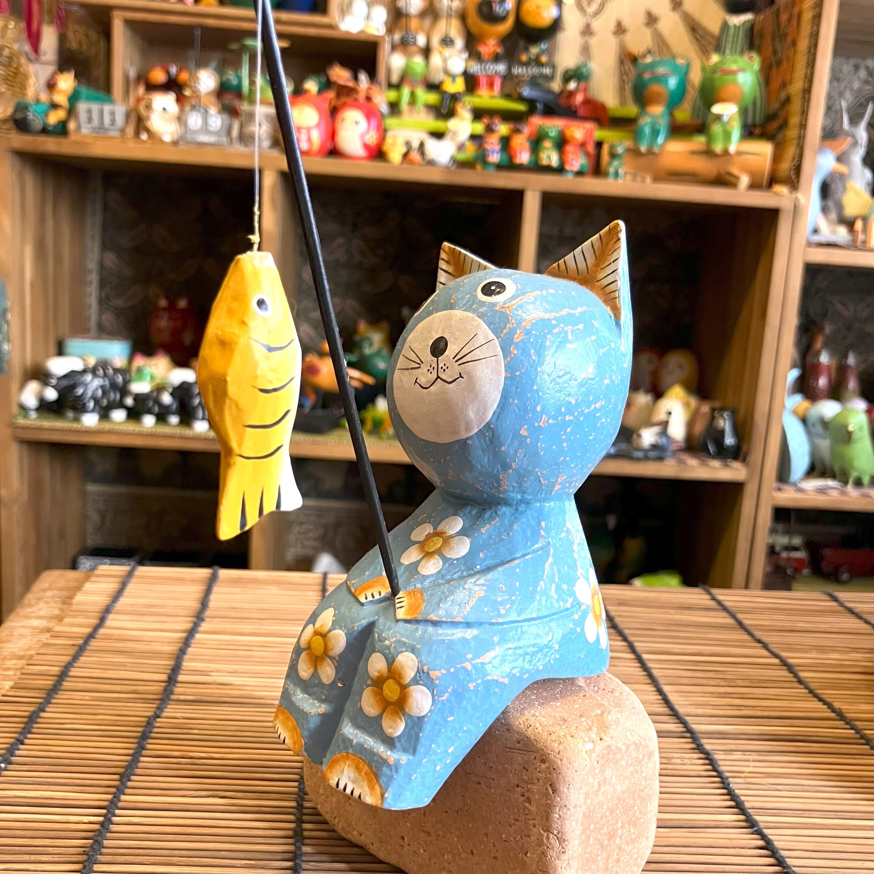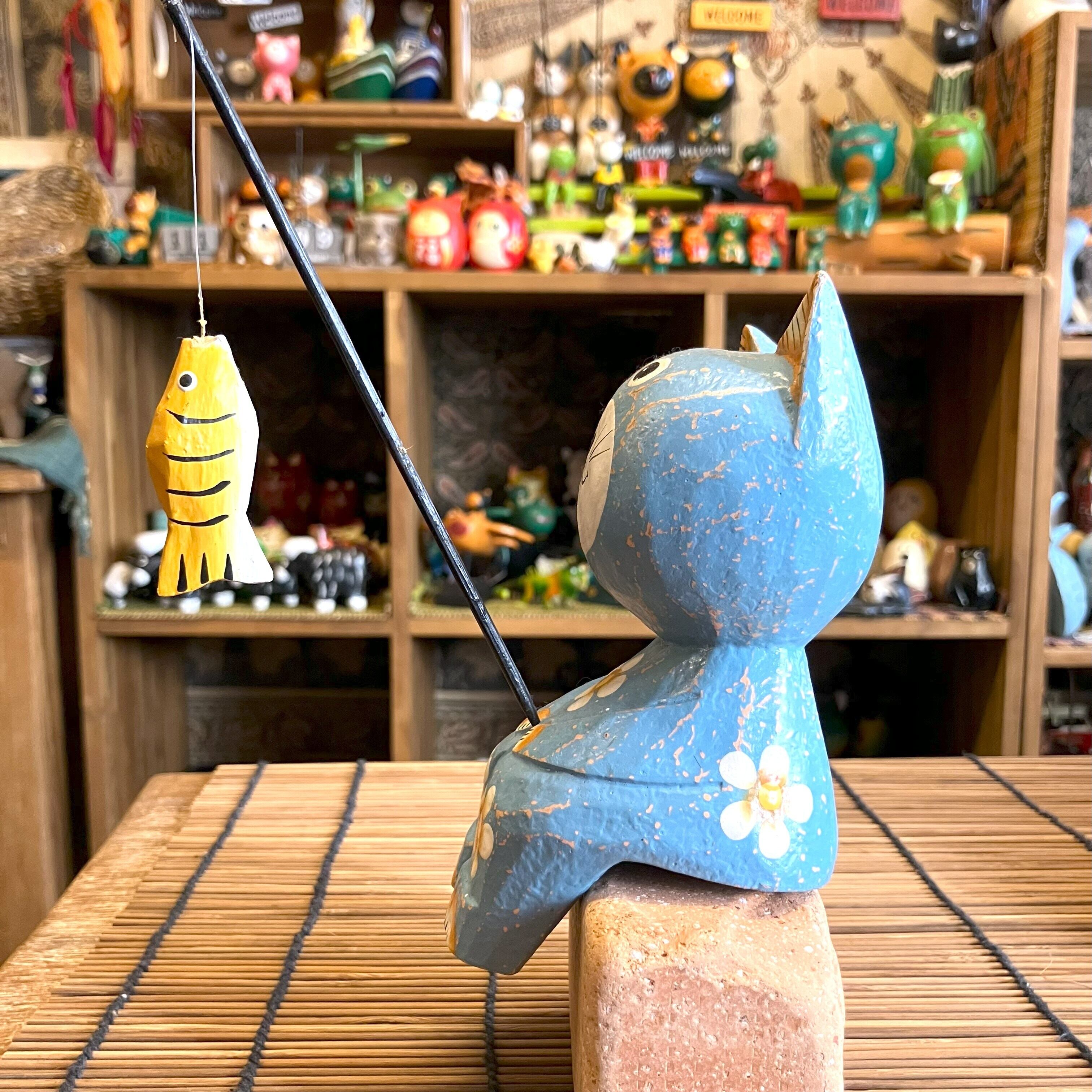 釣りをする姿が可愛いネコのオブジェです。