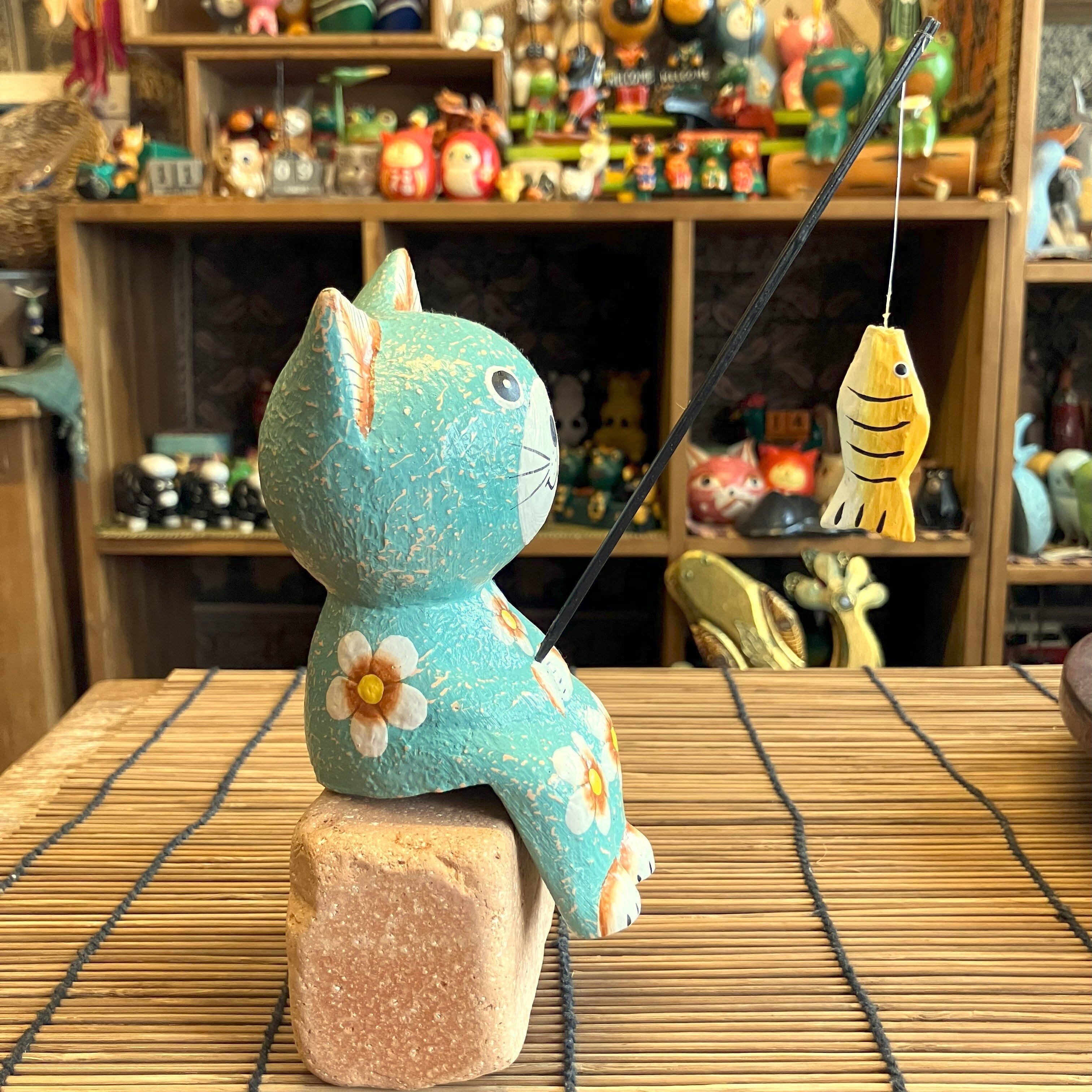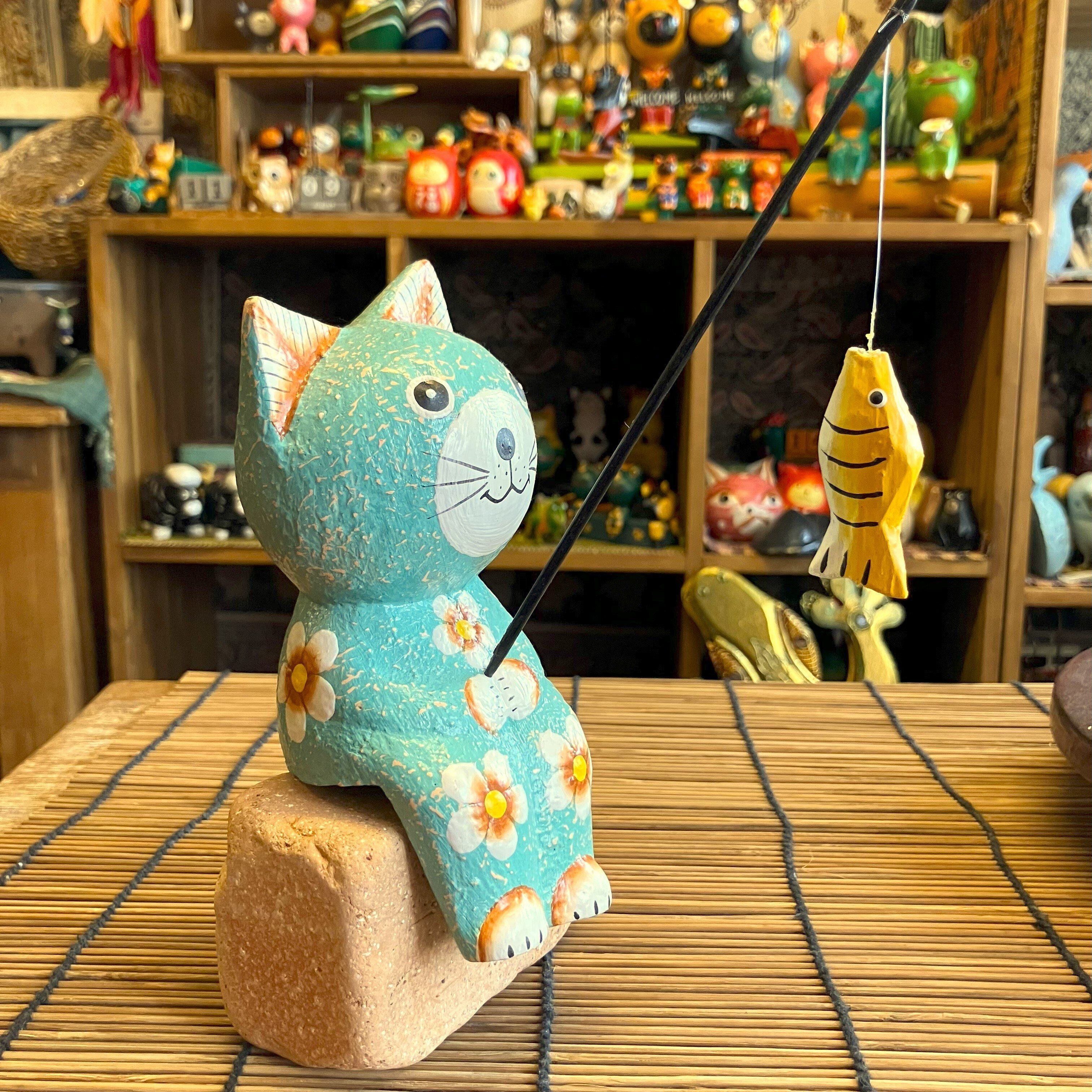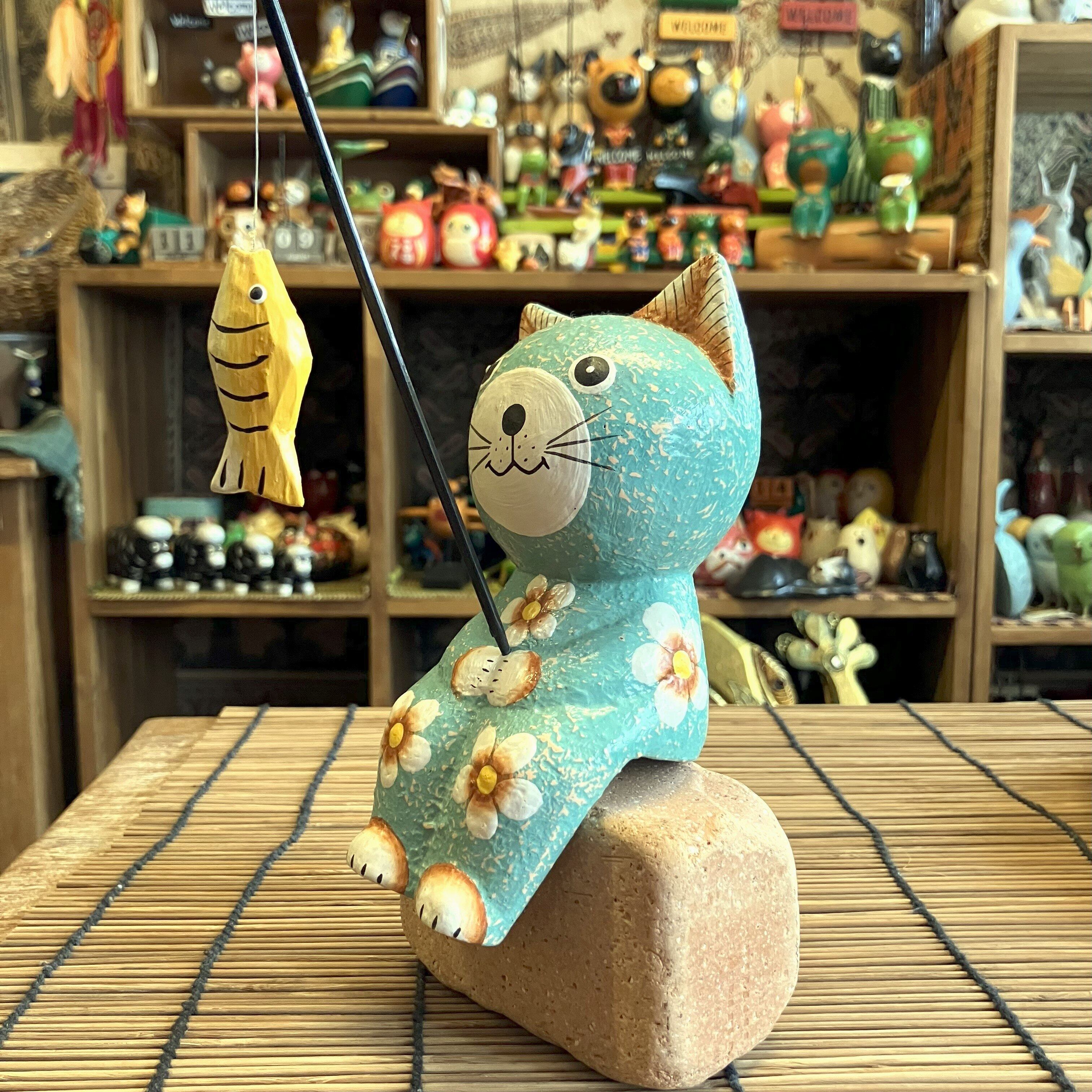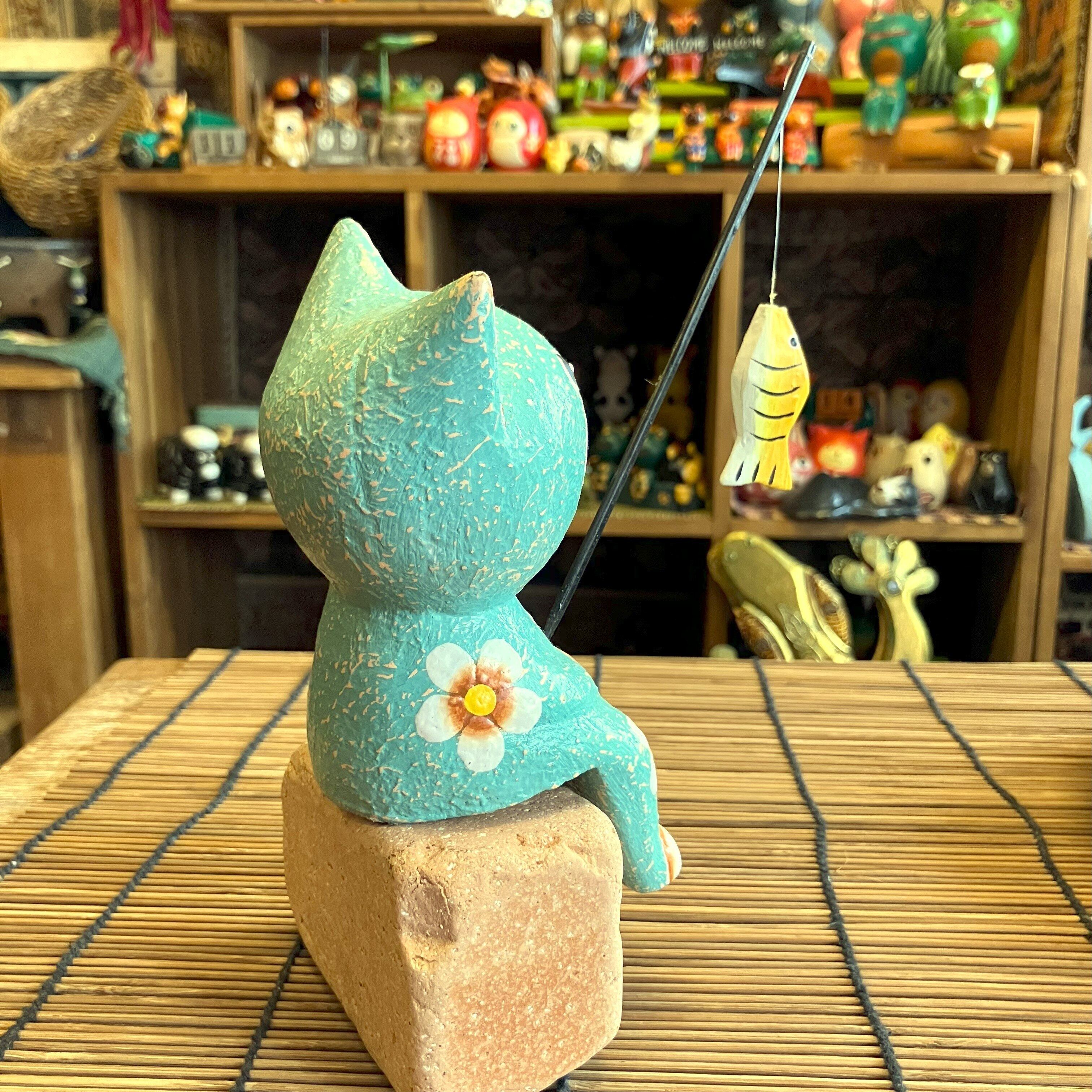 釣りをする姿が可愛いネコのオブジェです。