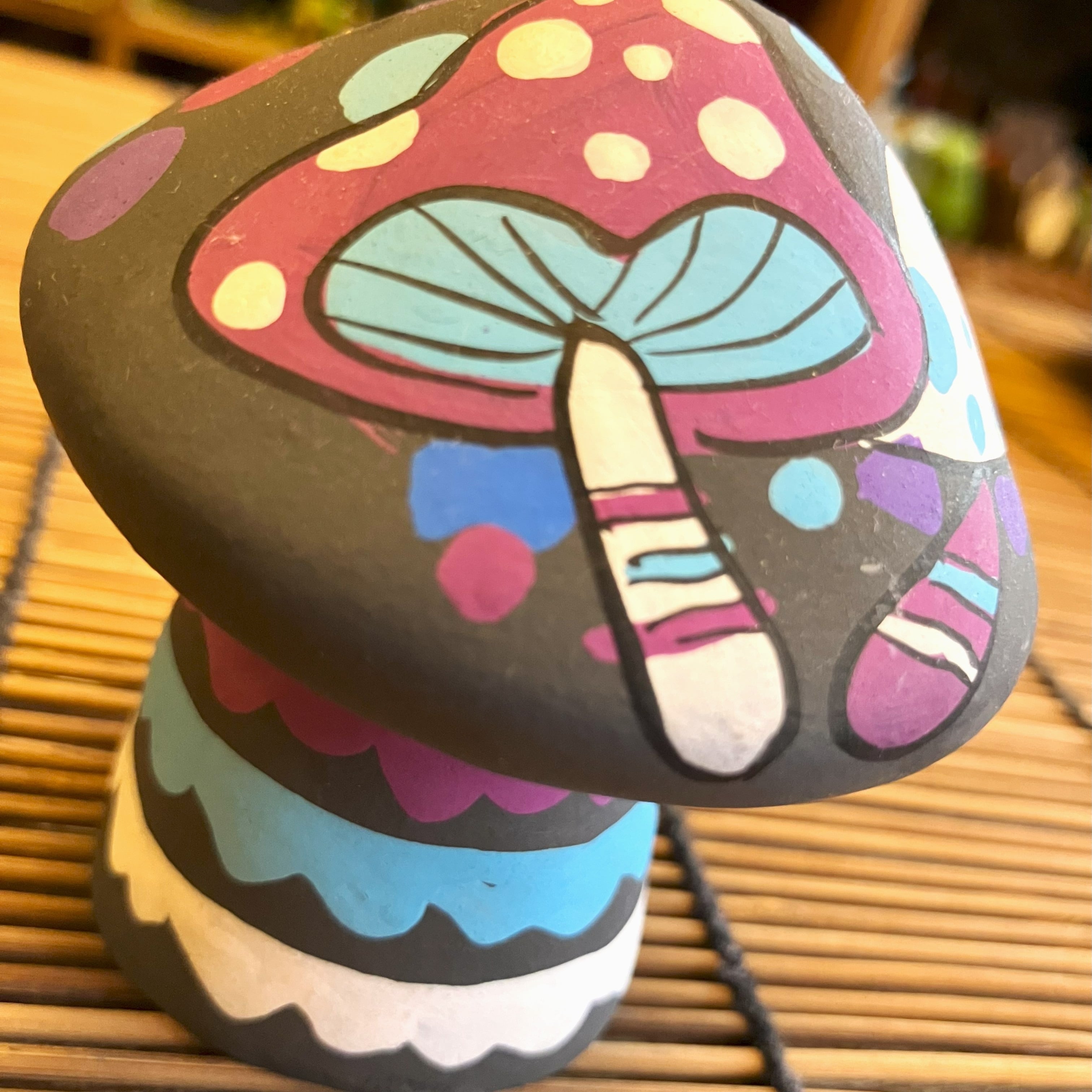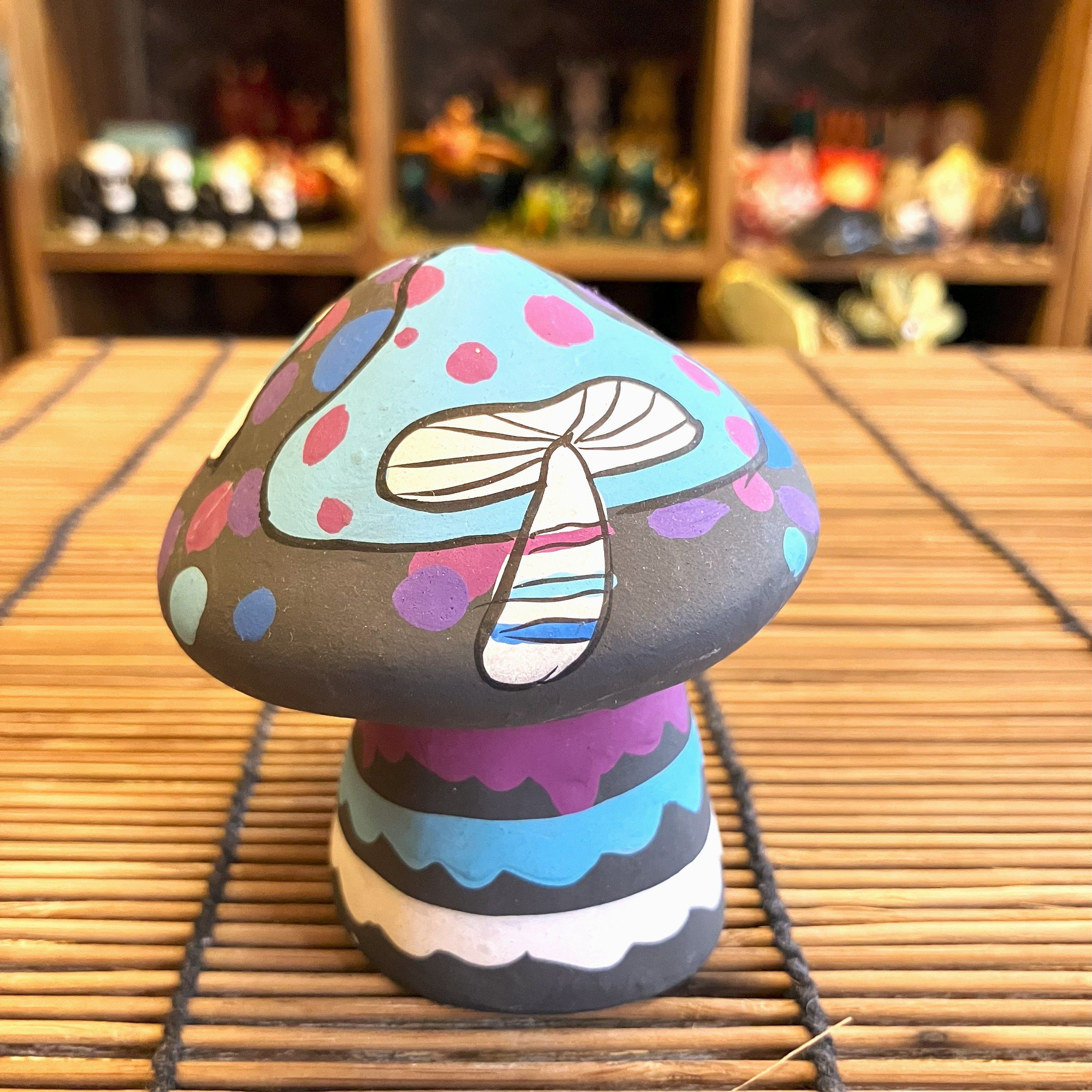 キノコの形にサイケっぽく模様を描いたスティック香専用の可愛いお香立てです。