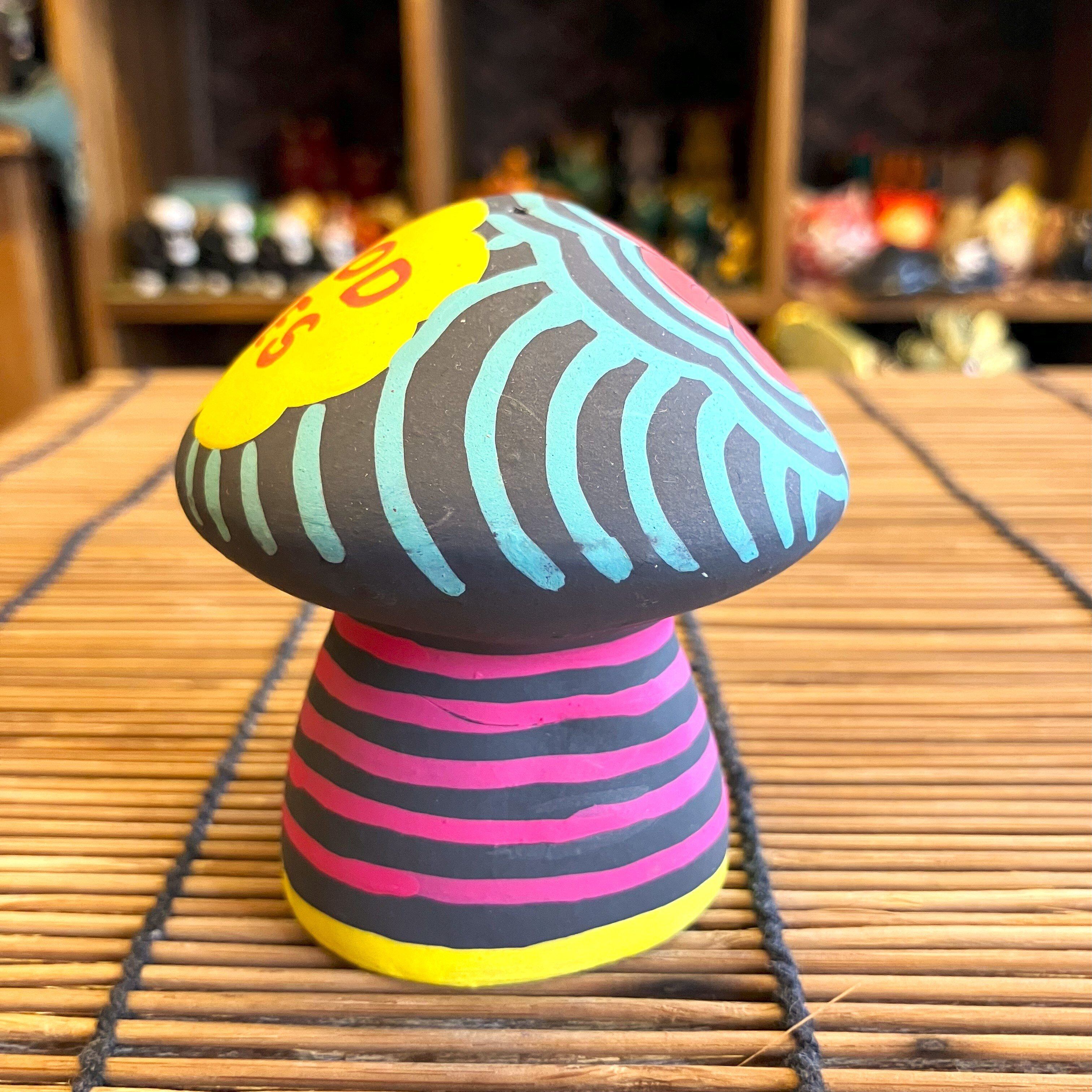 キノコの形にサイケっぽく模様を描いたスティック香専用の可愛いお香立てです。