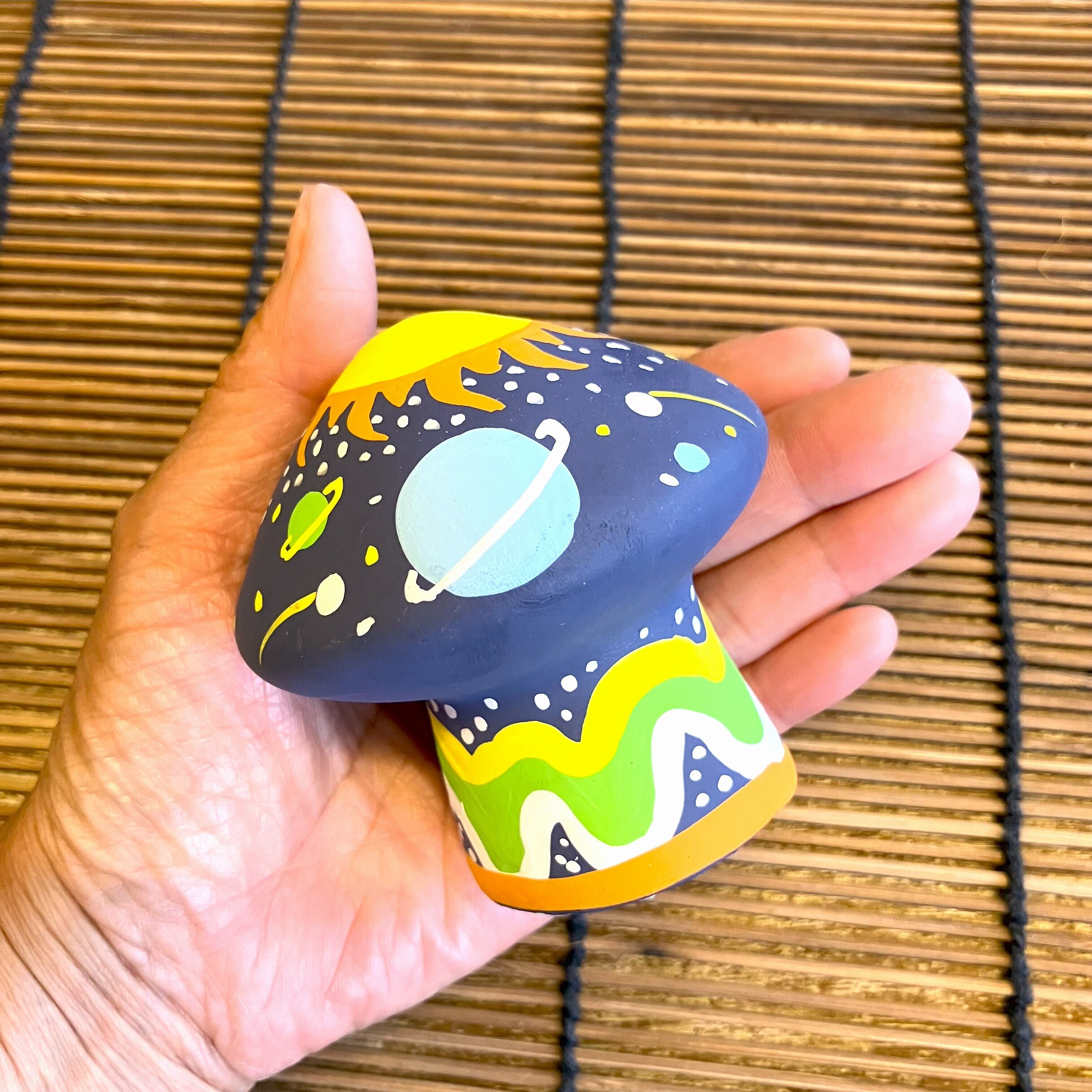 キノコの形にサイケっぽく模様を描いたスティック香専用の可愛いお香立てです。
