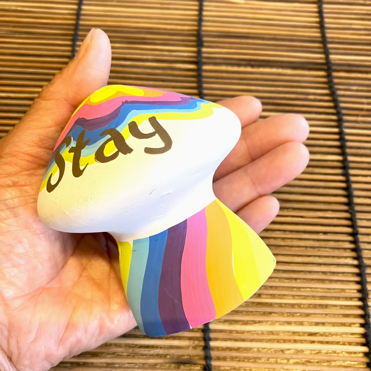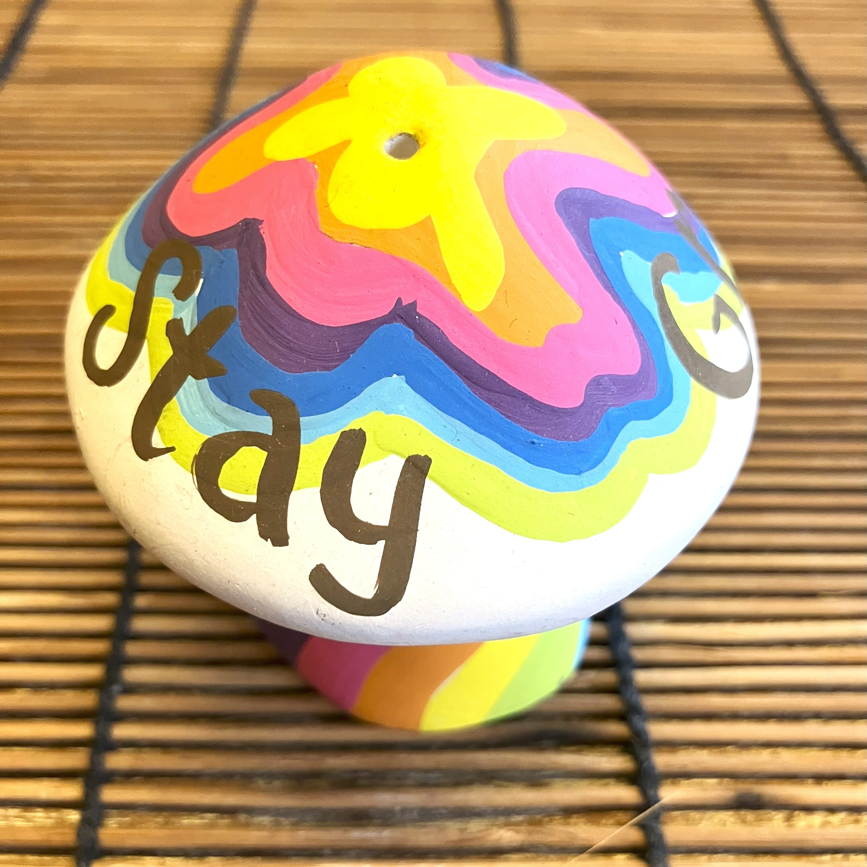キノコの形にサイケっぽく模様を描いたスティック香専用の可愛いお香立てです。