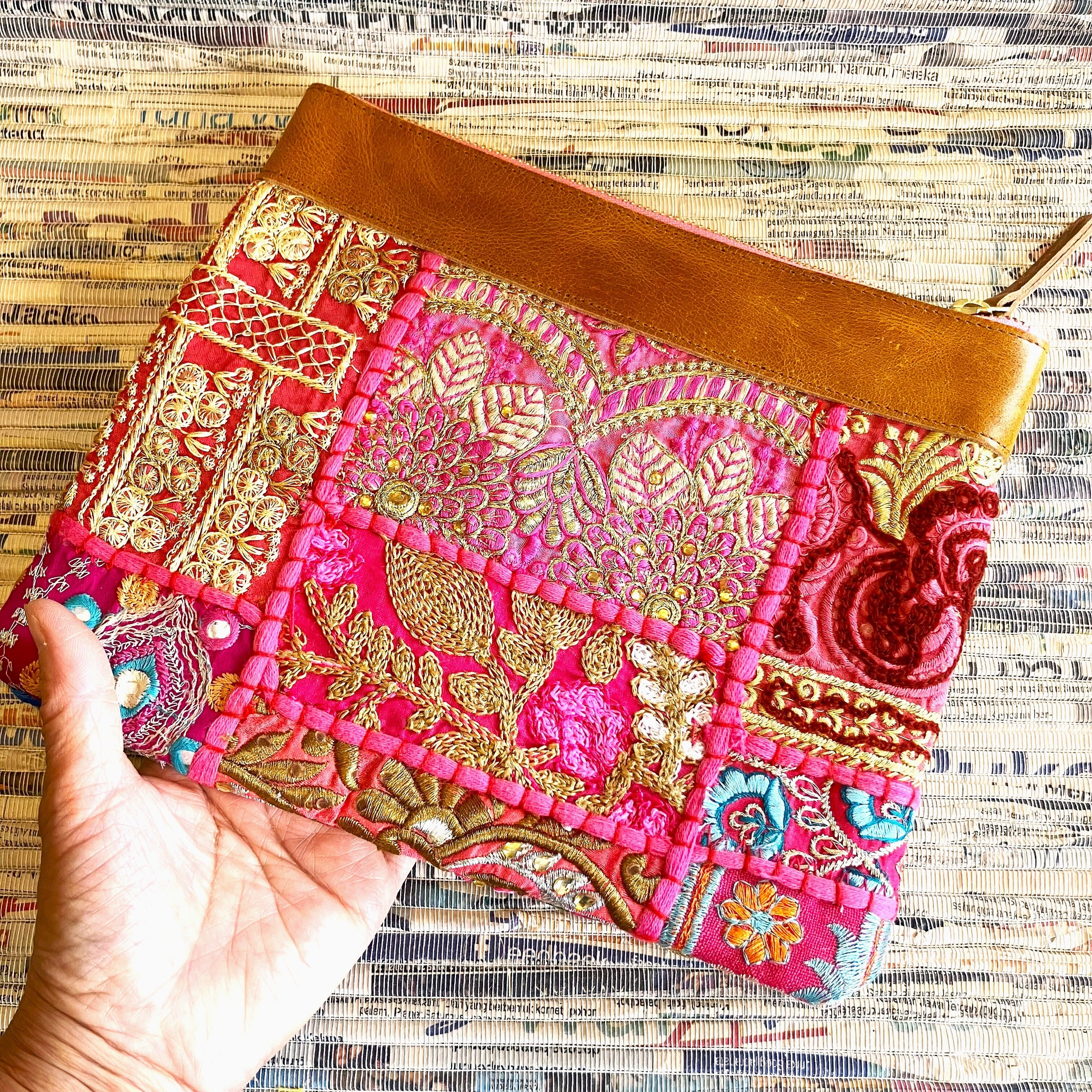 インドの伝統的な刺繍とアンティーク布をパッチワークした可愛いポーチです。