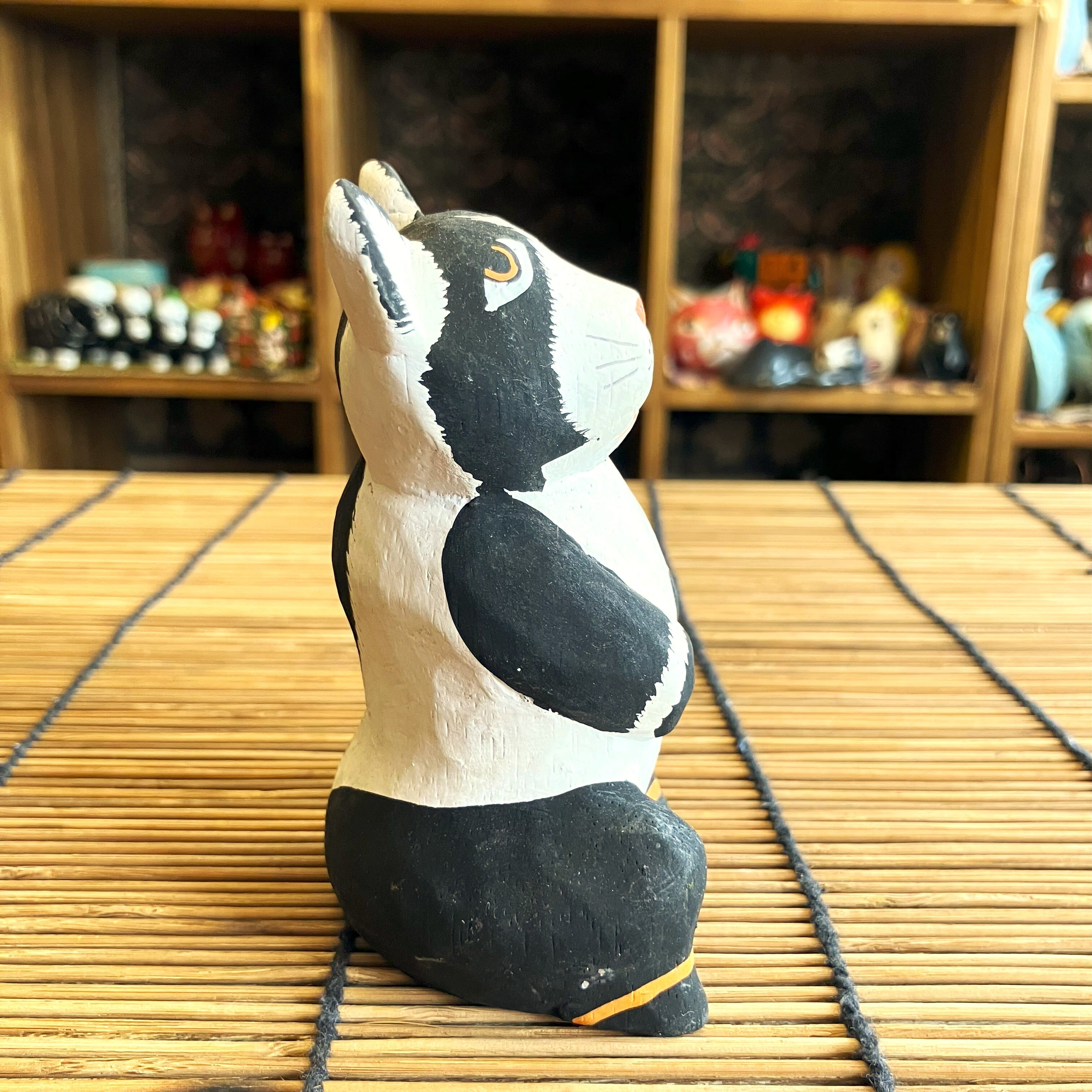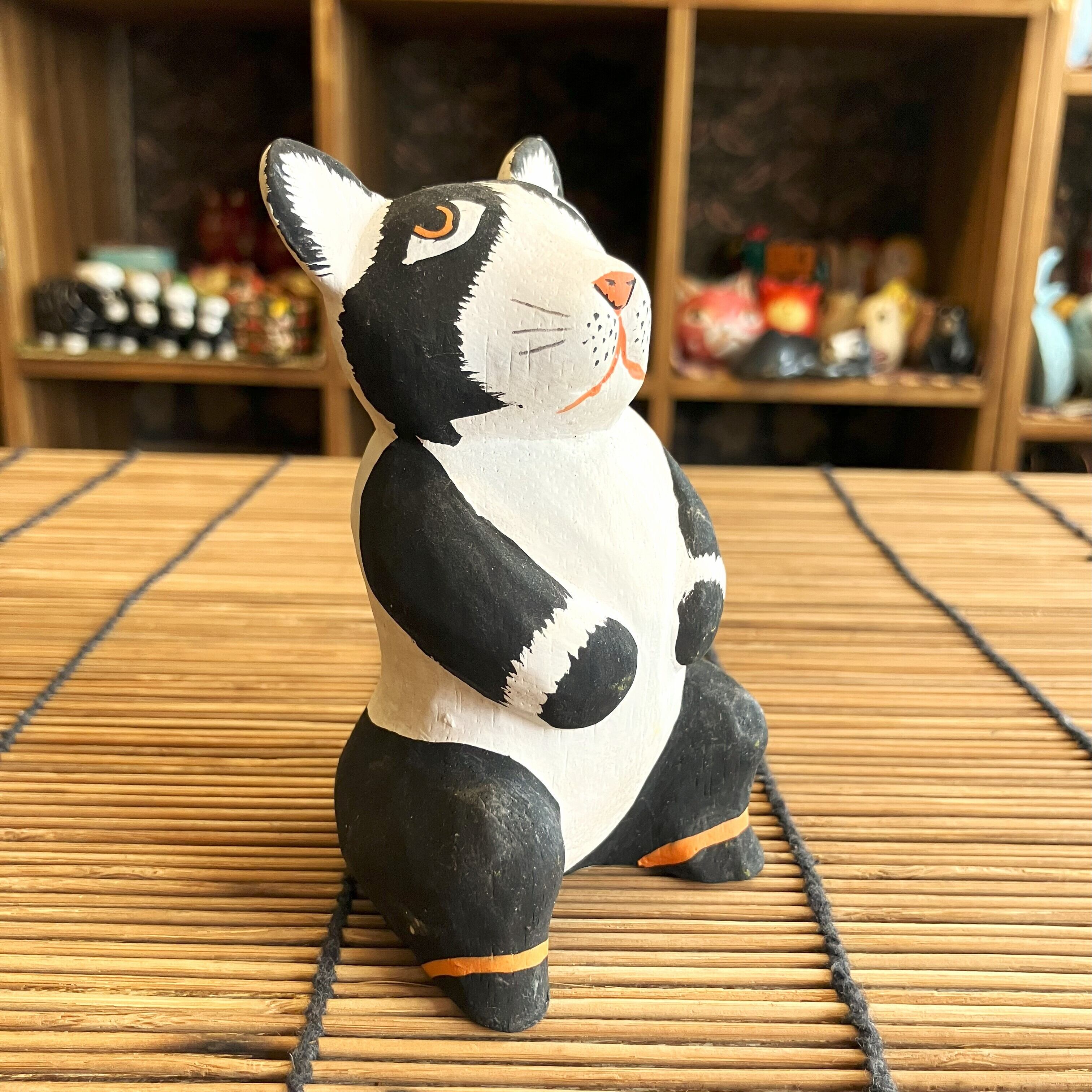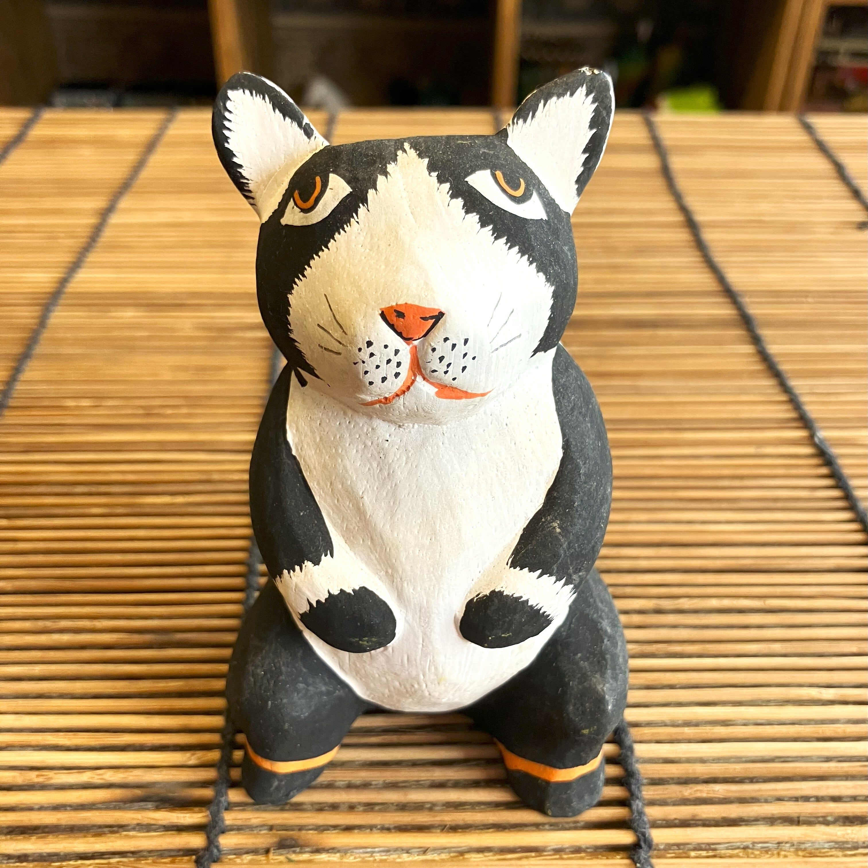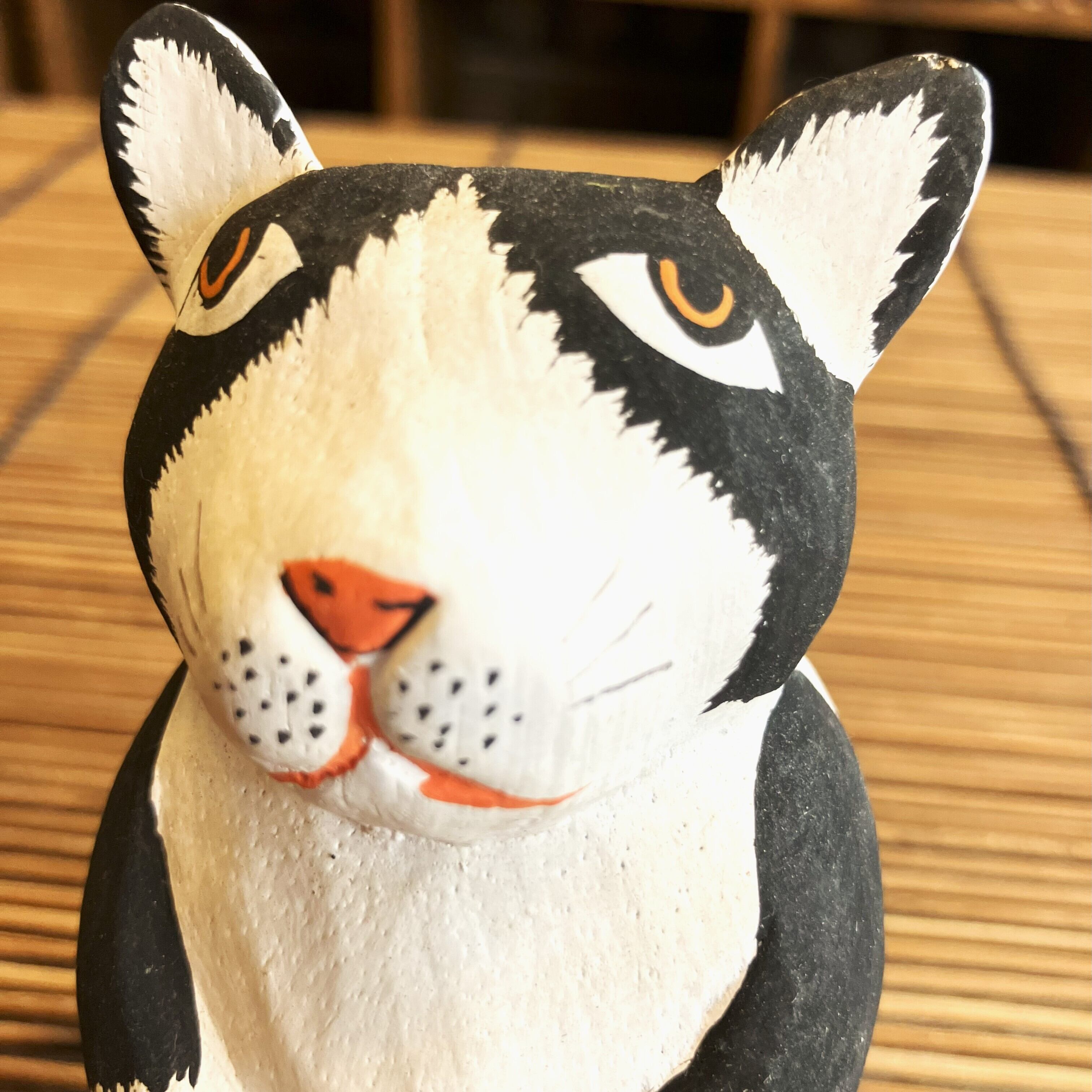 エスニックで独特の雰囲気がある木彫りネコのオブジェです。