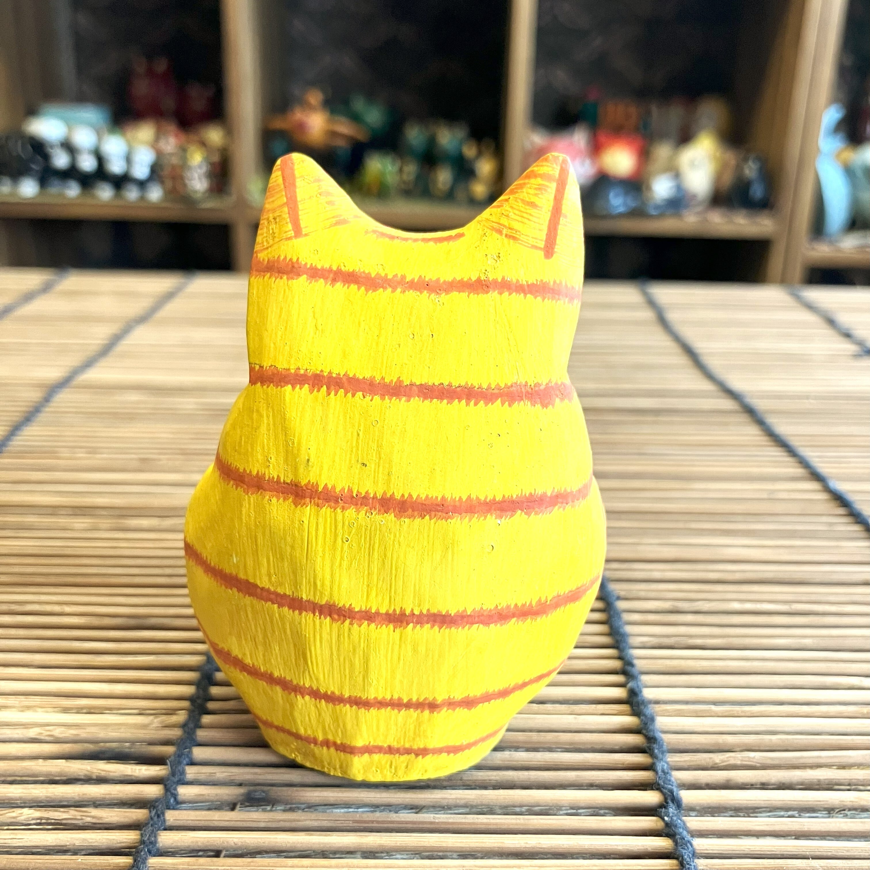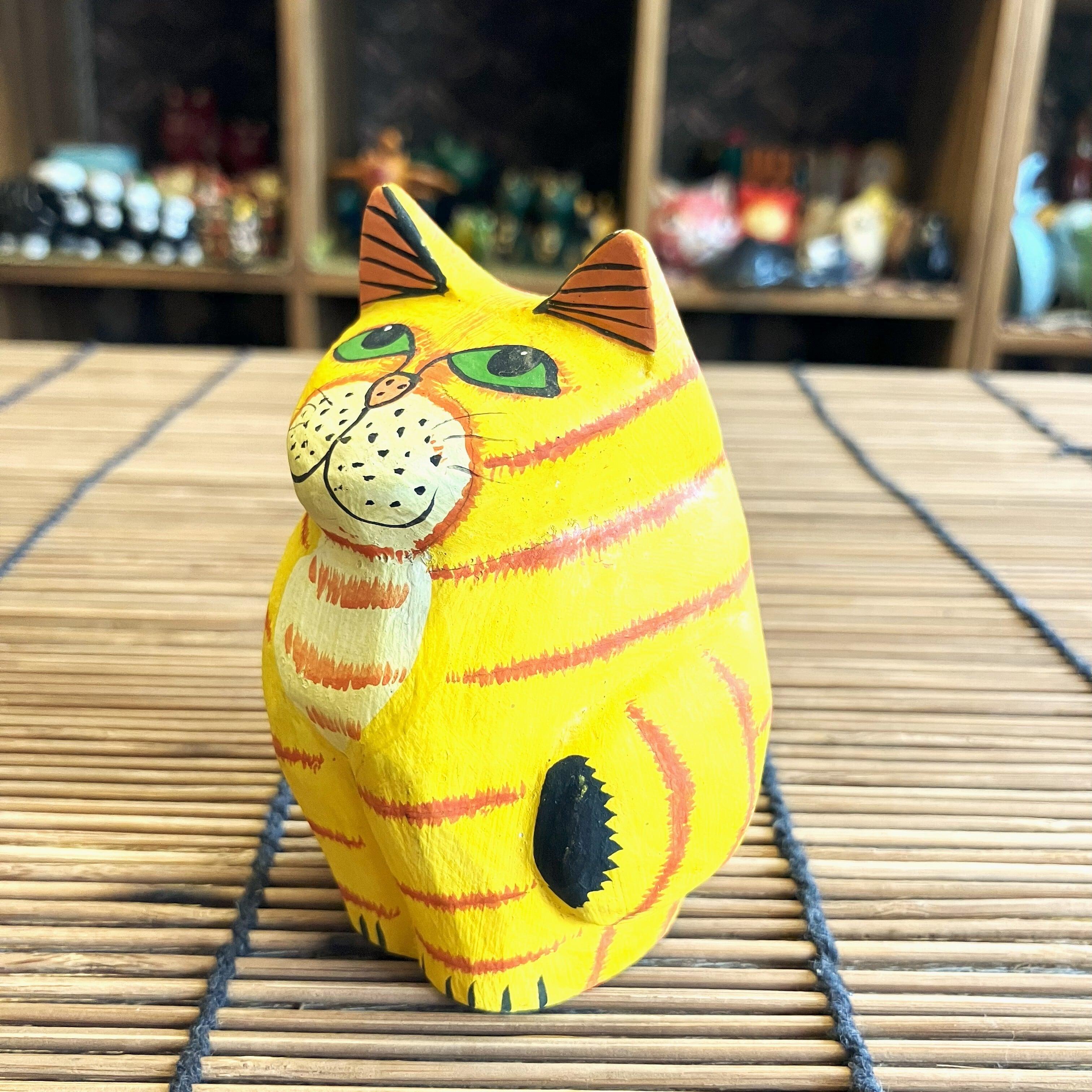 エスニックで独特の雰囲気がある木彫りネコのオブジェです。