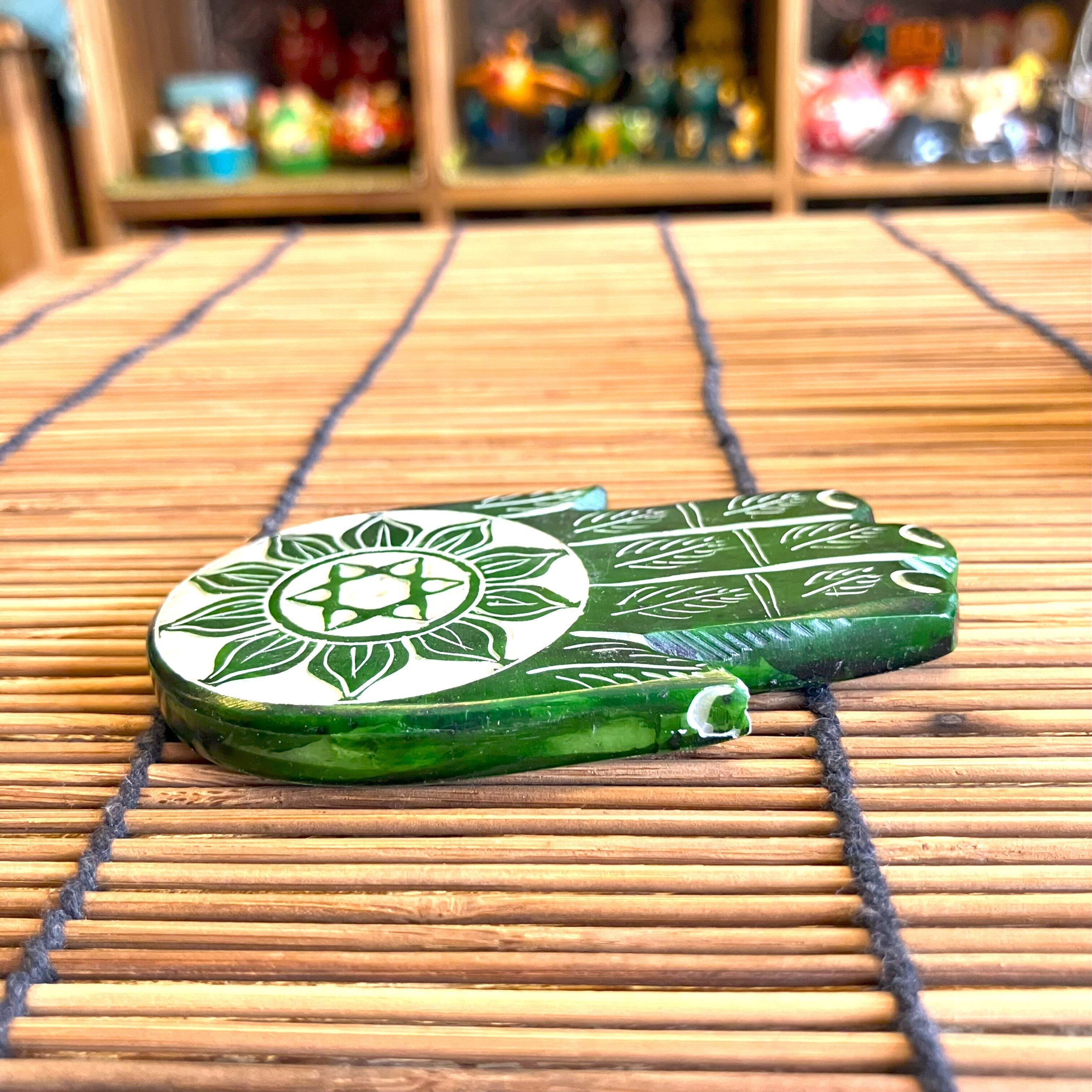 仏陀の手を表す形で、チャクラの模様が丁寧に彫られています。