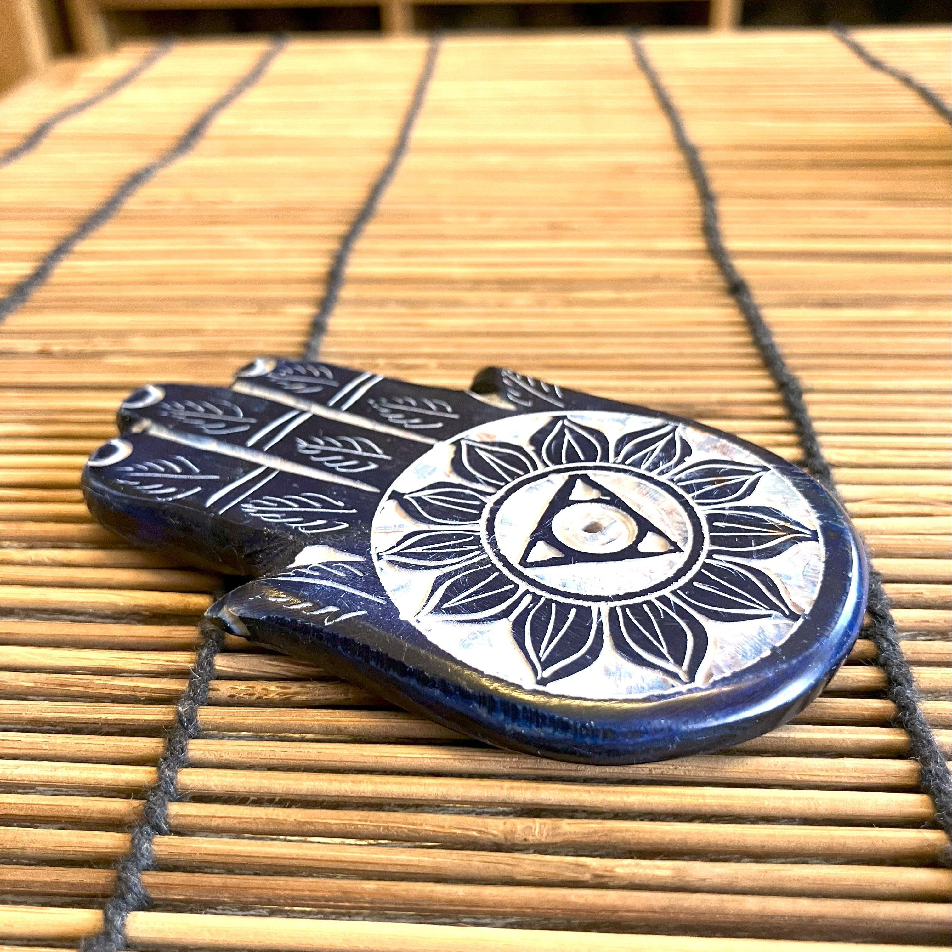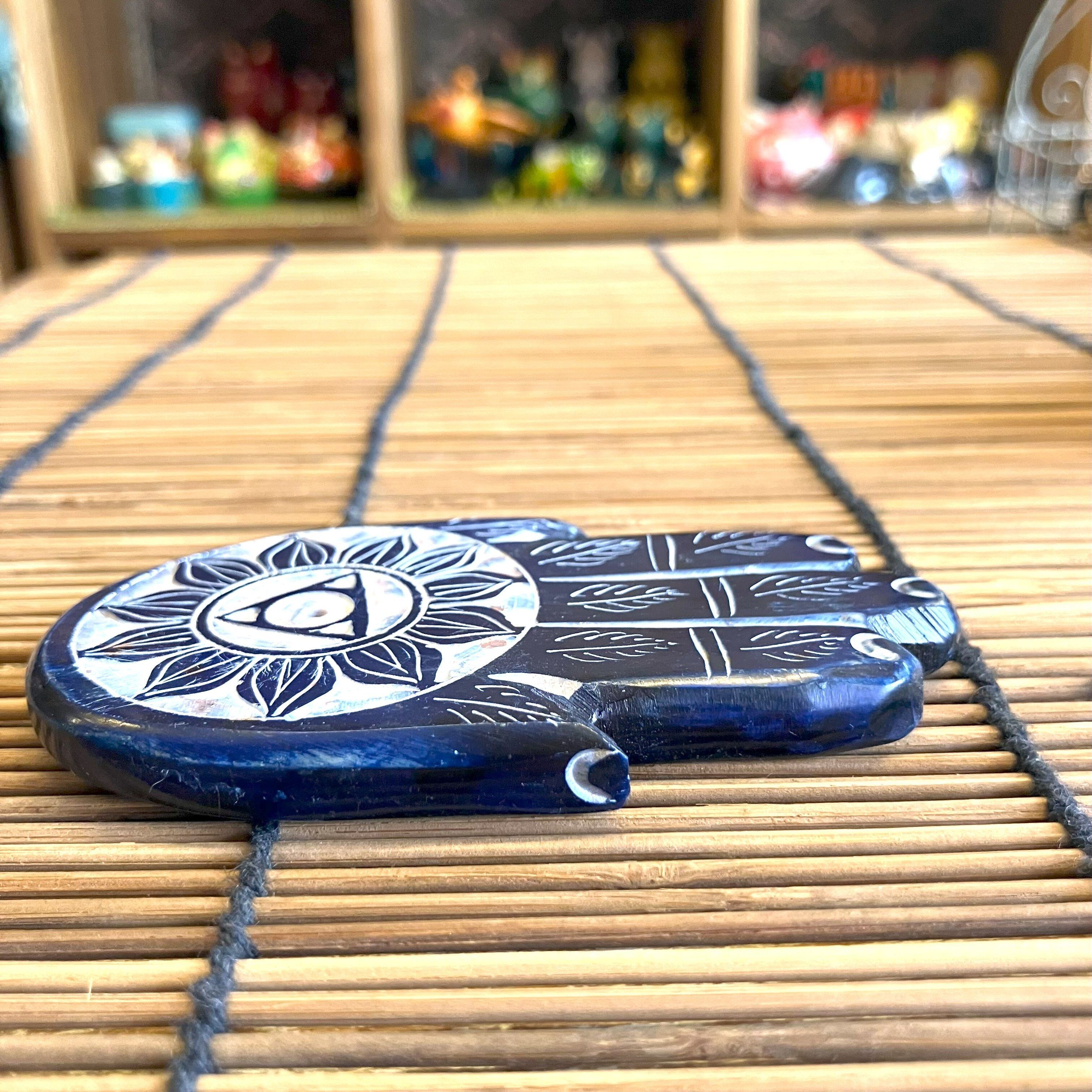 仏陀の手を表す形で、チャクラの模様が丁寧に彫られています。