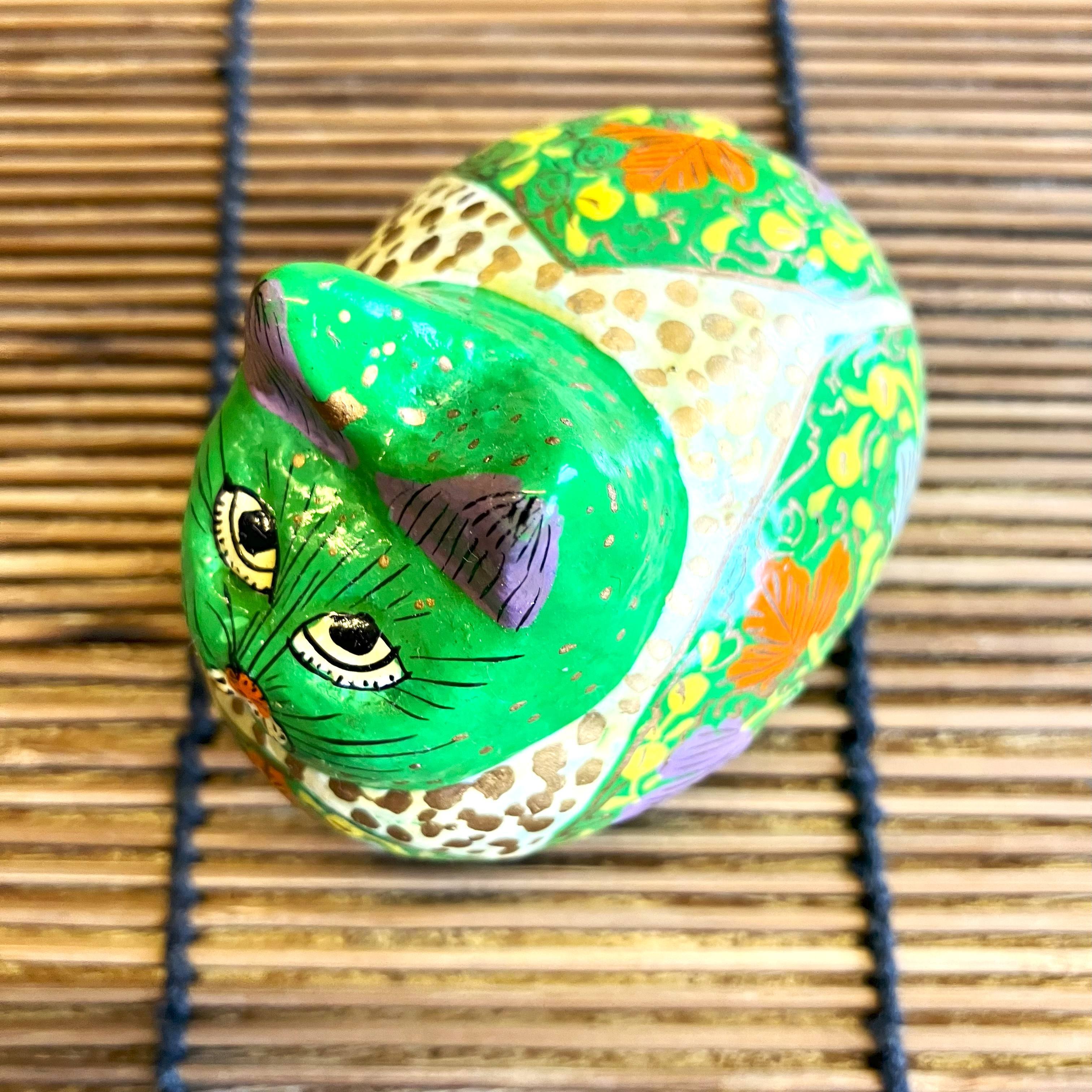 <ペーパーマッシュ お座りネコ フラワーグリーン>