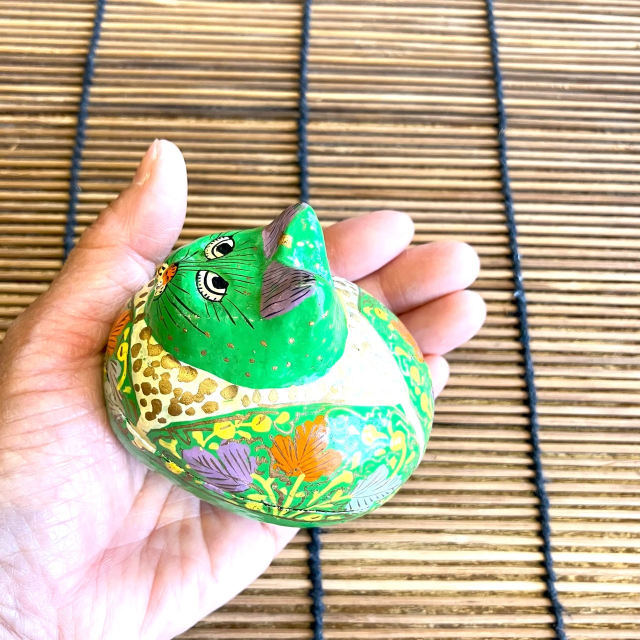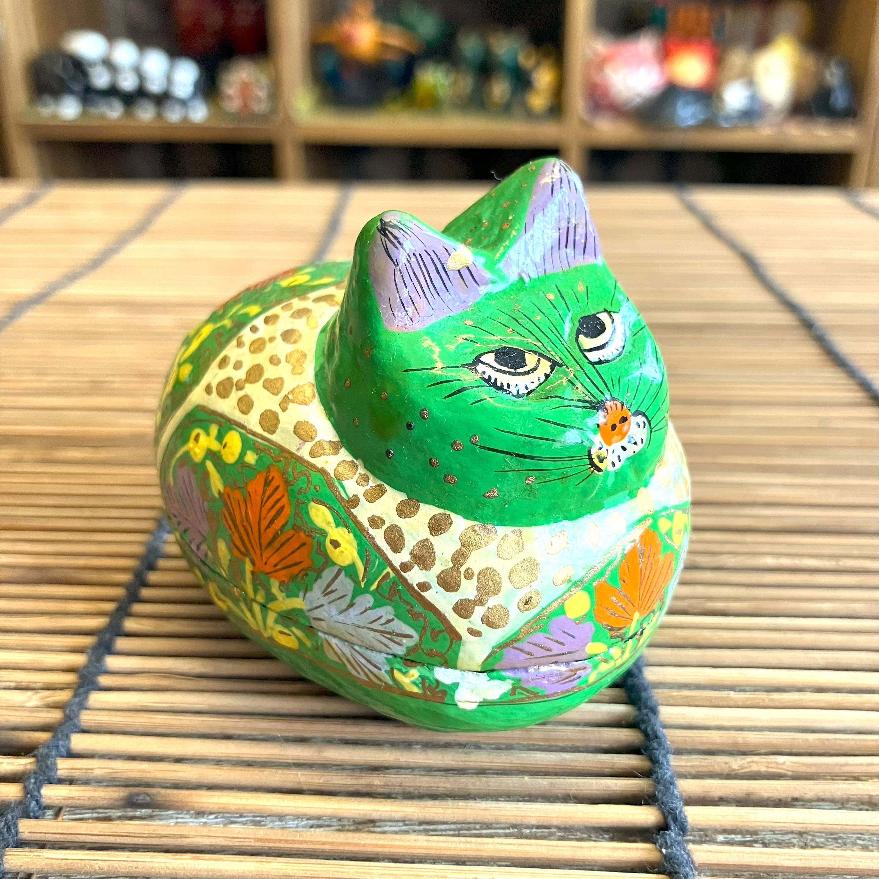 インドのカシミール地方伝統の手仕事、ペーパーマッシュのネコBOXです。