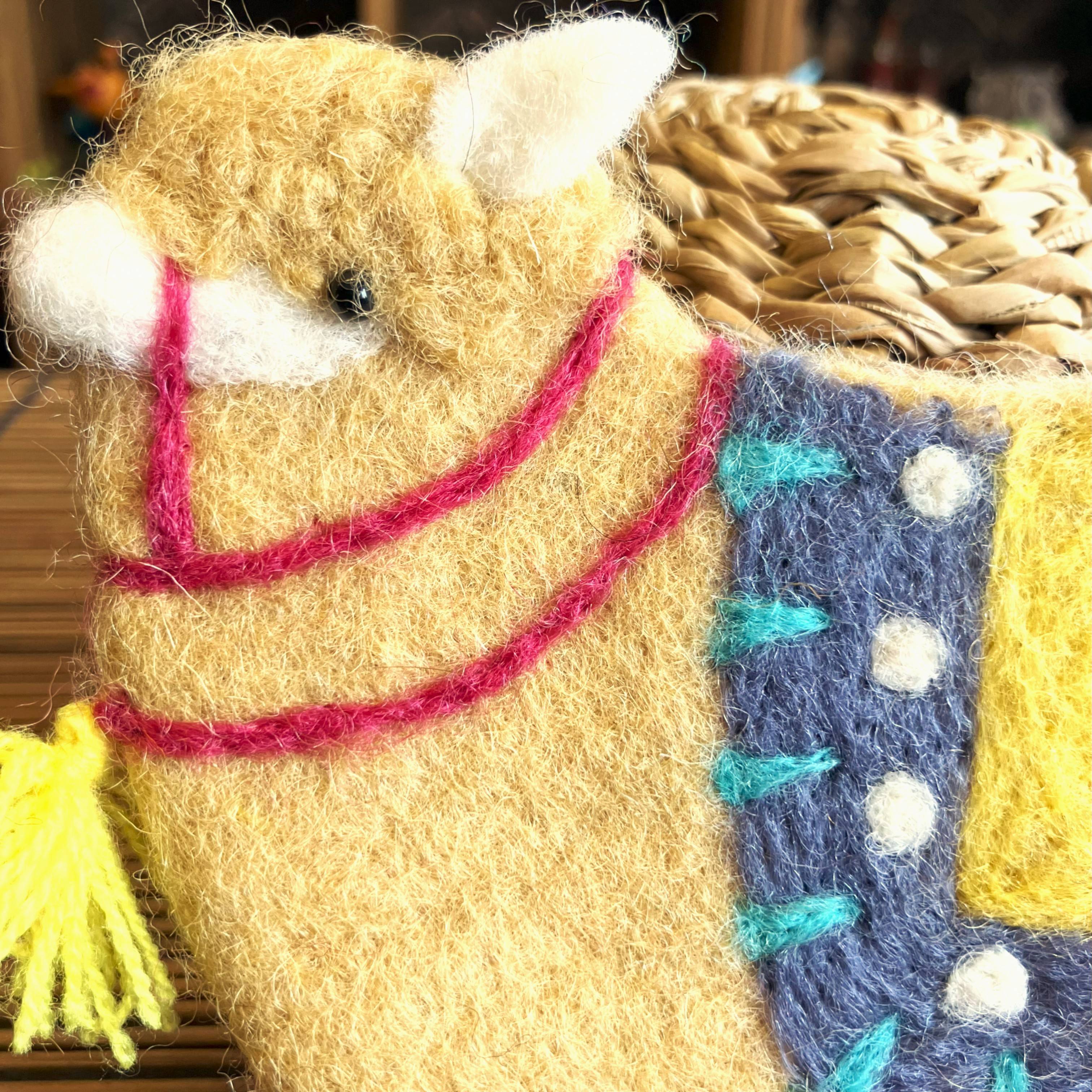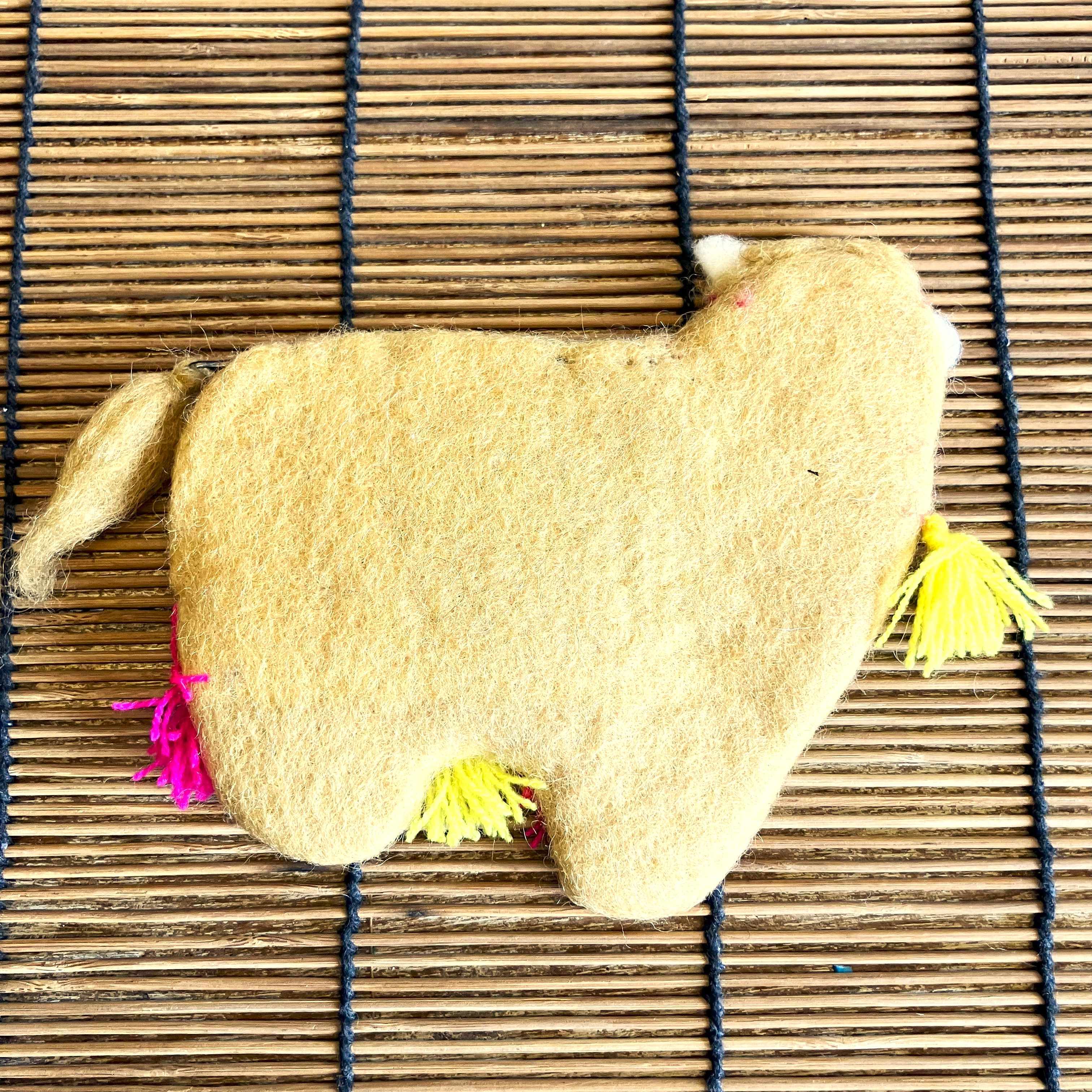 ネパールフェルト 羊の毛にお湯と石鹸をつけてゴシゴシからませて作られます。