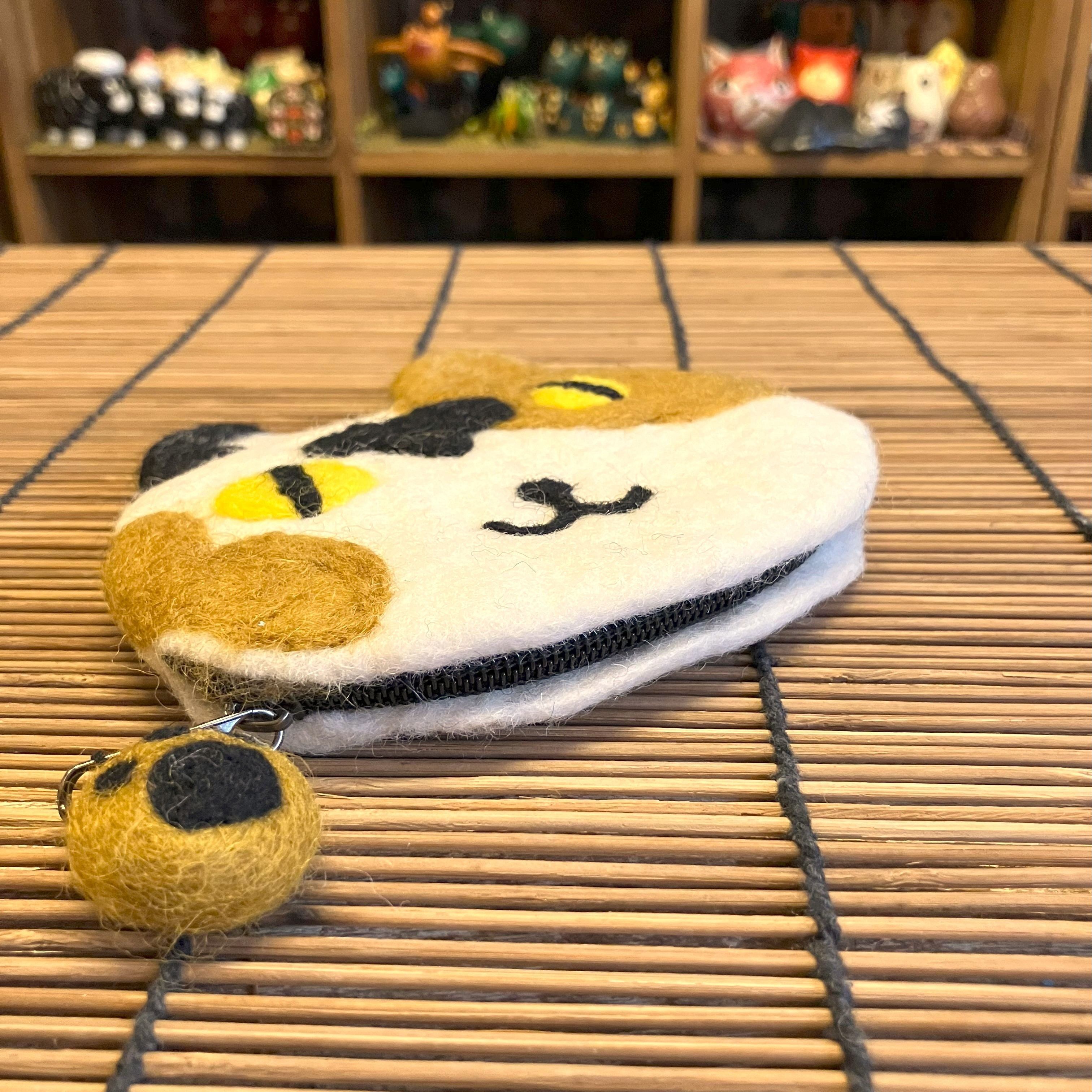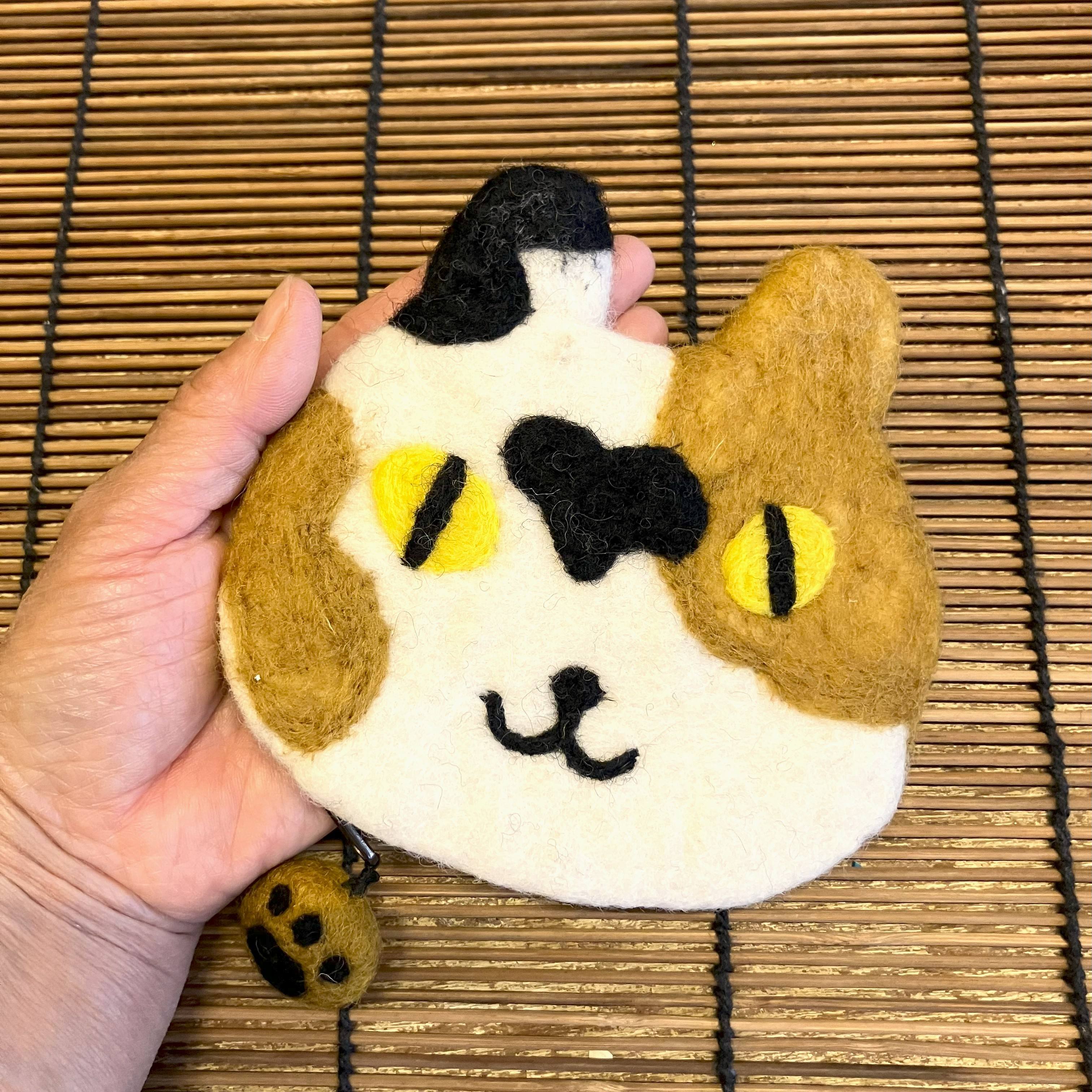 ネパールの手作りフェルトポーチでミケネコです。