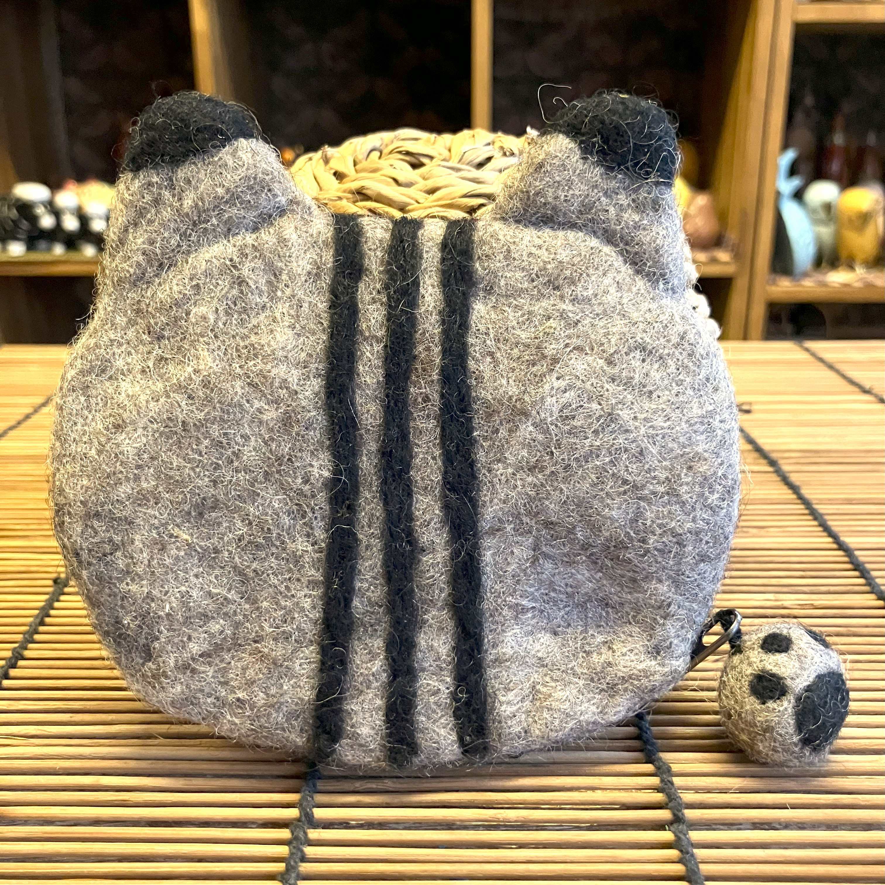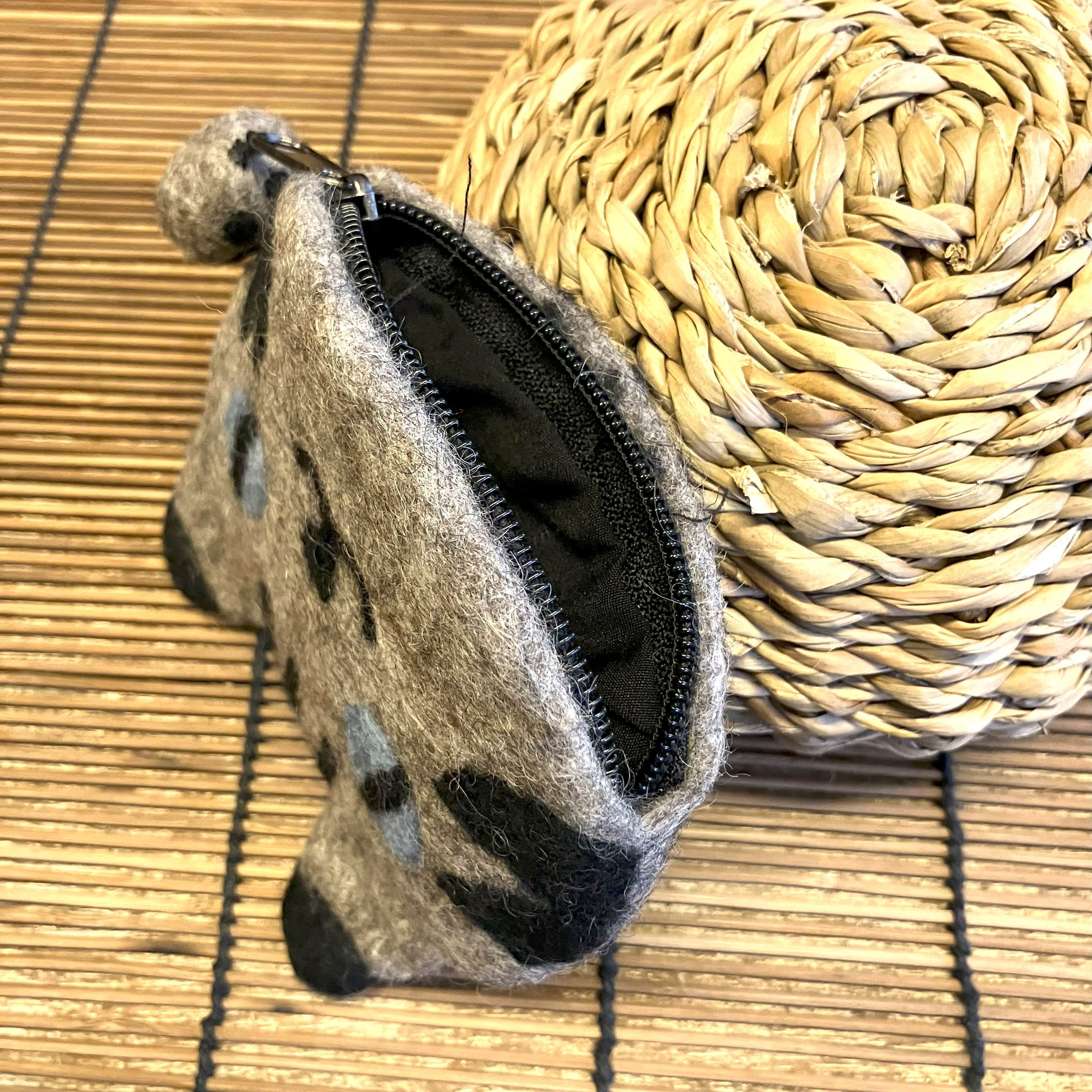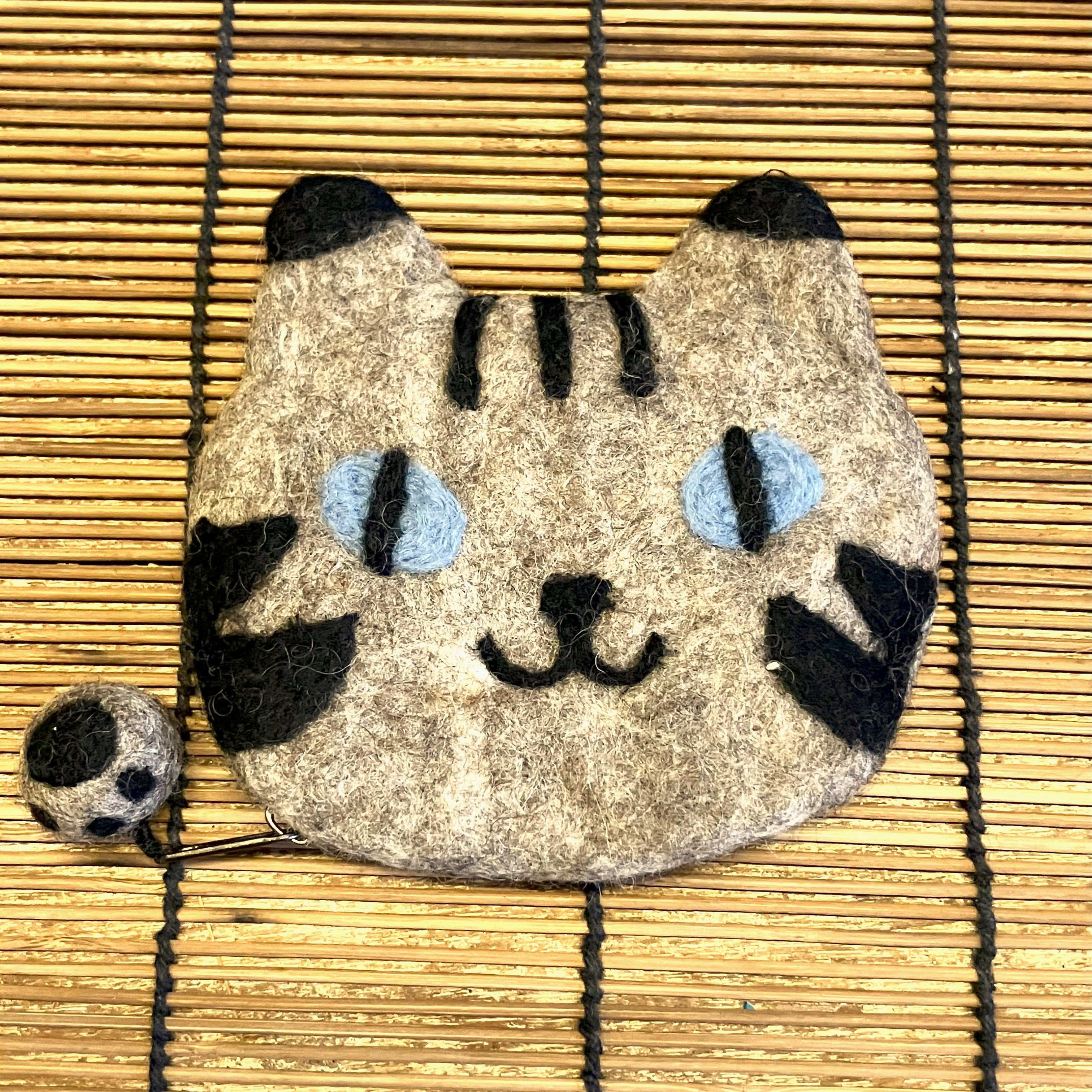 ネパールの手作りフェルトポーチでサバトラネコです。