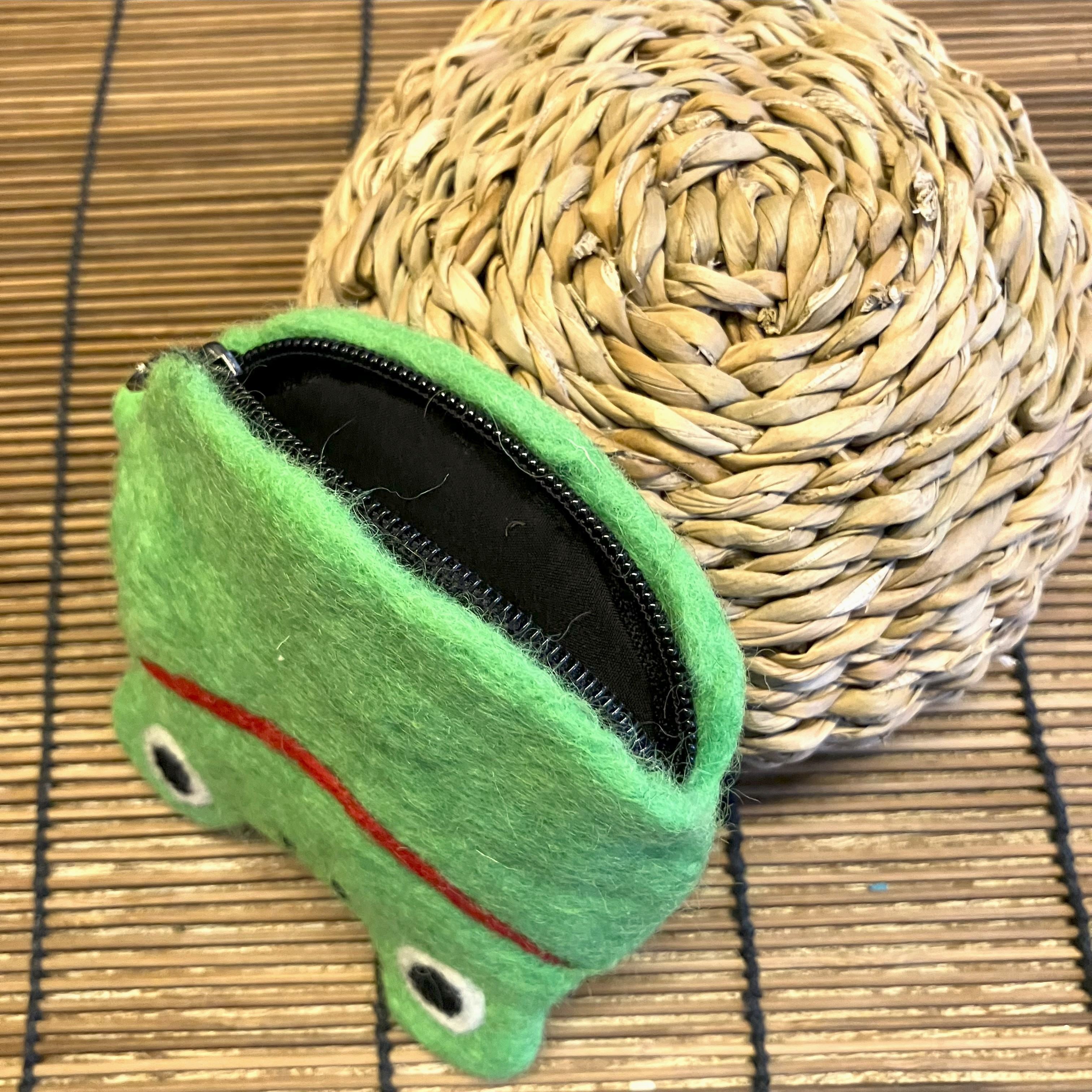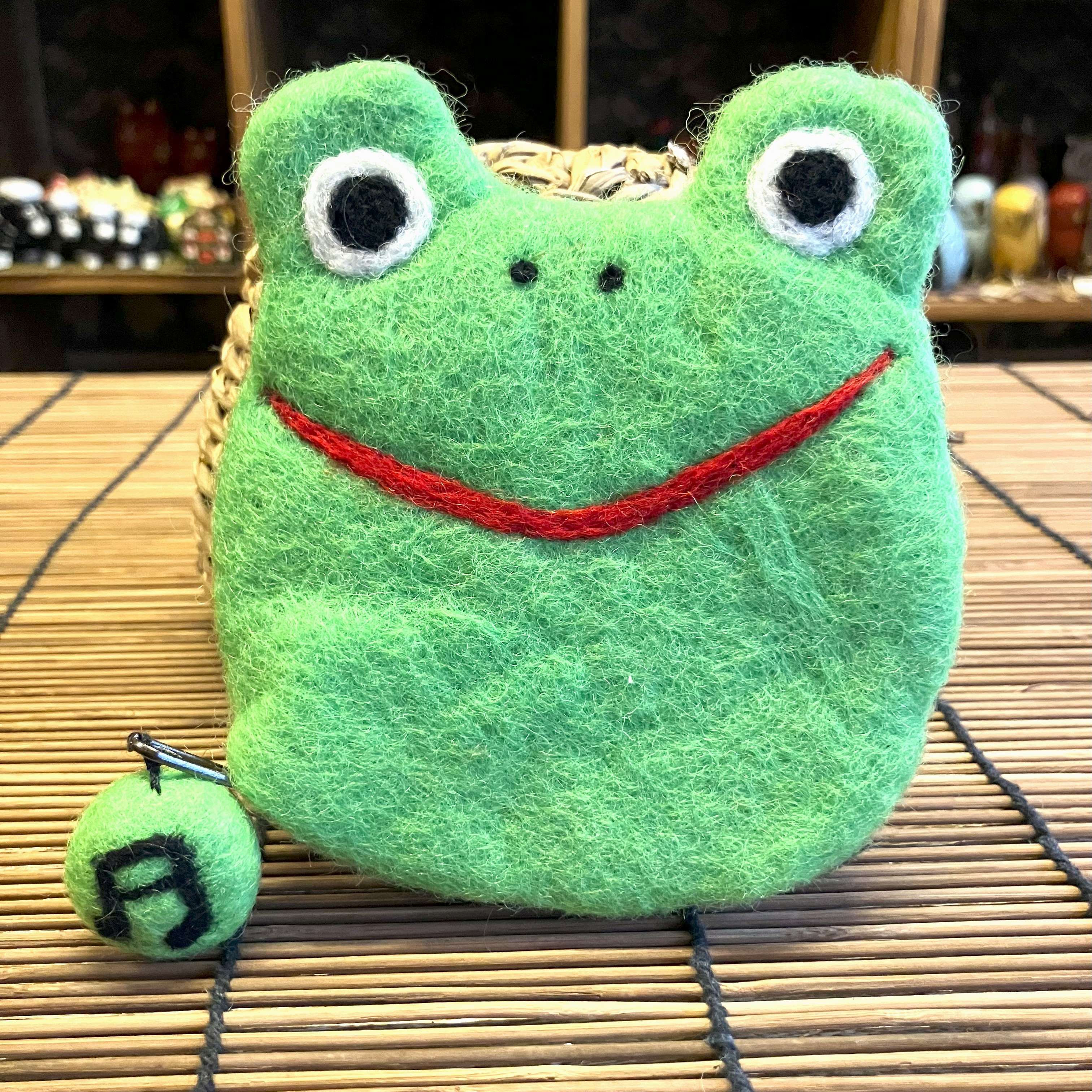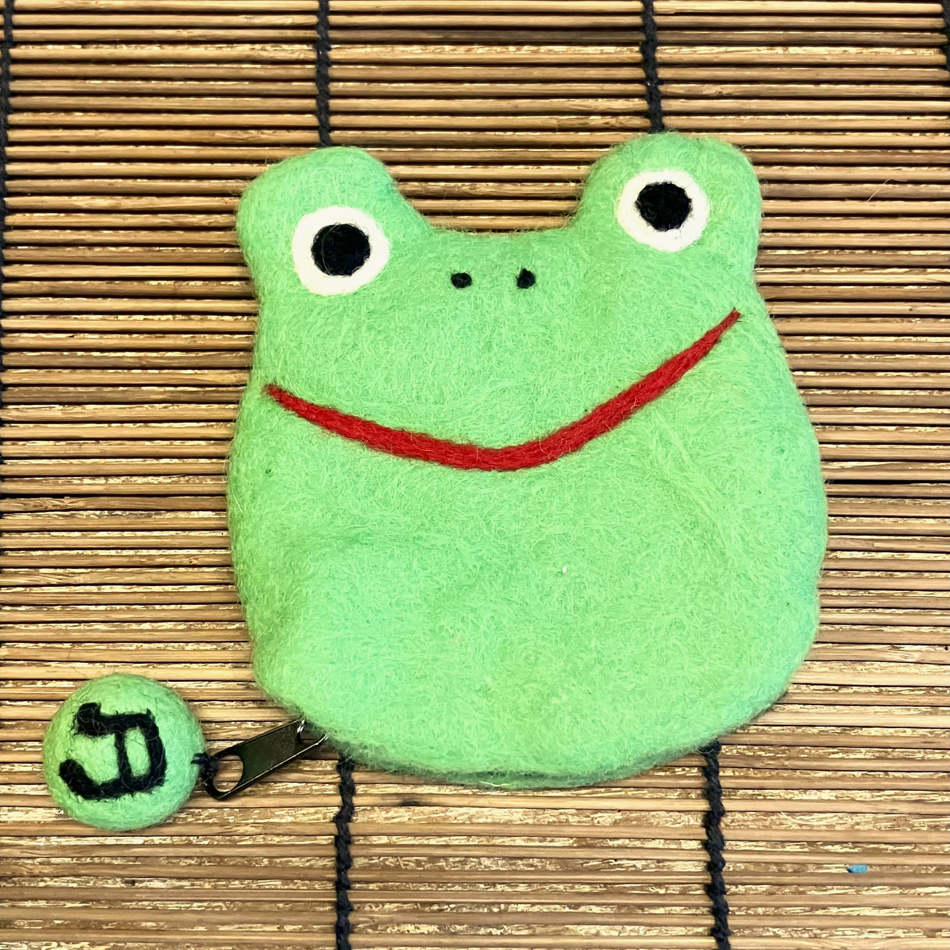 ネパールの手作りフェルトポーチでカエルです。