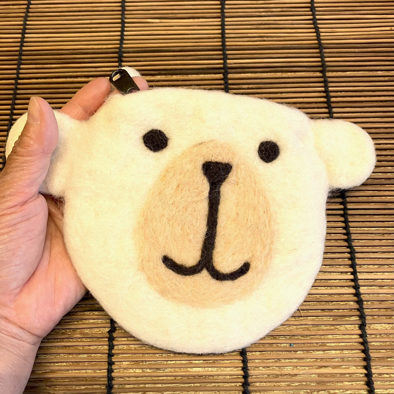 ネパールの手作りフェルトポーチでシロクマです。
