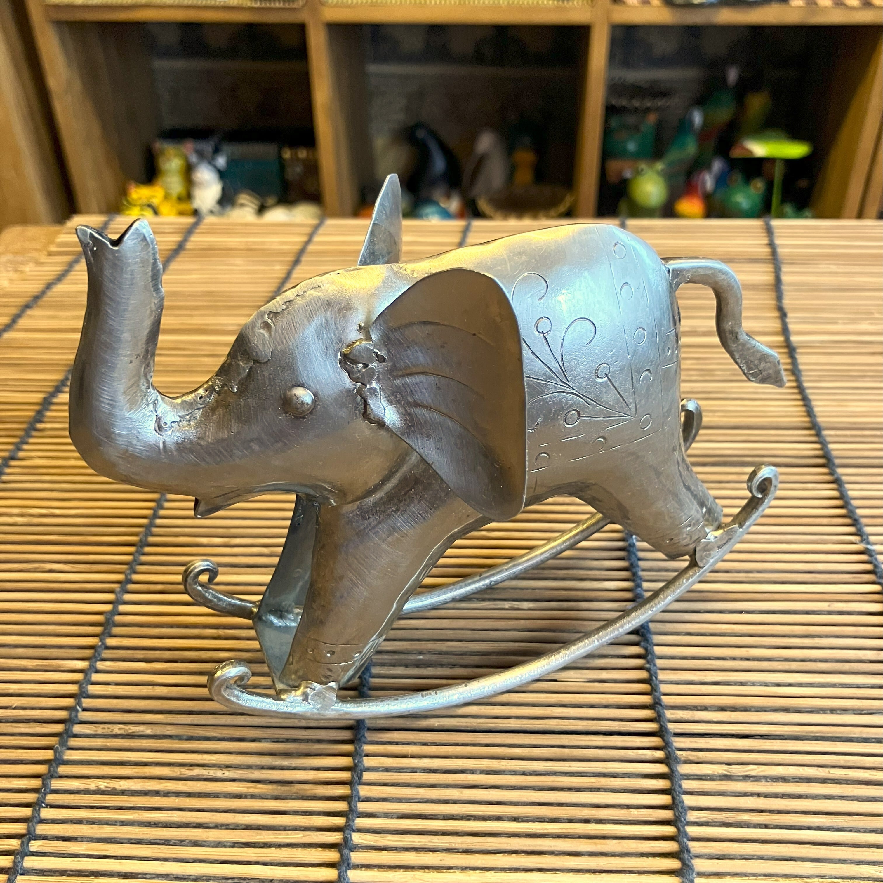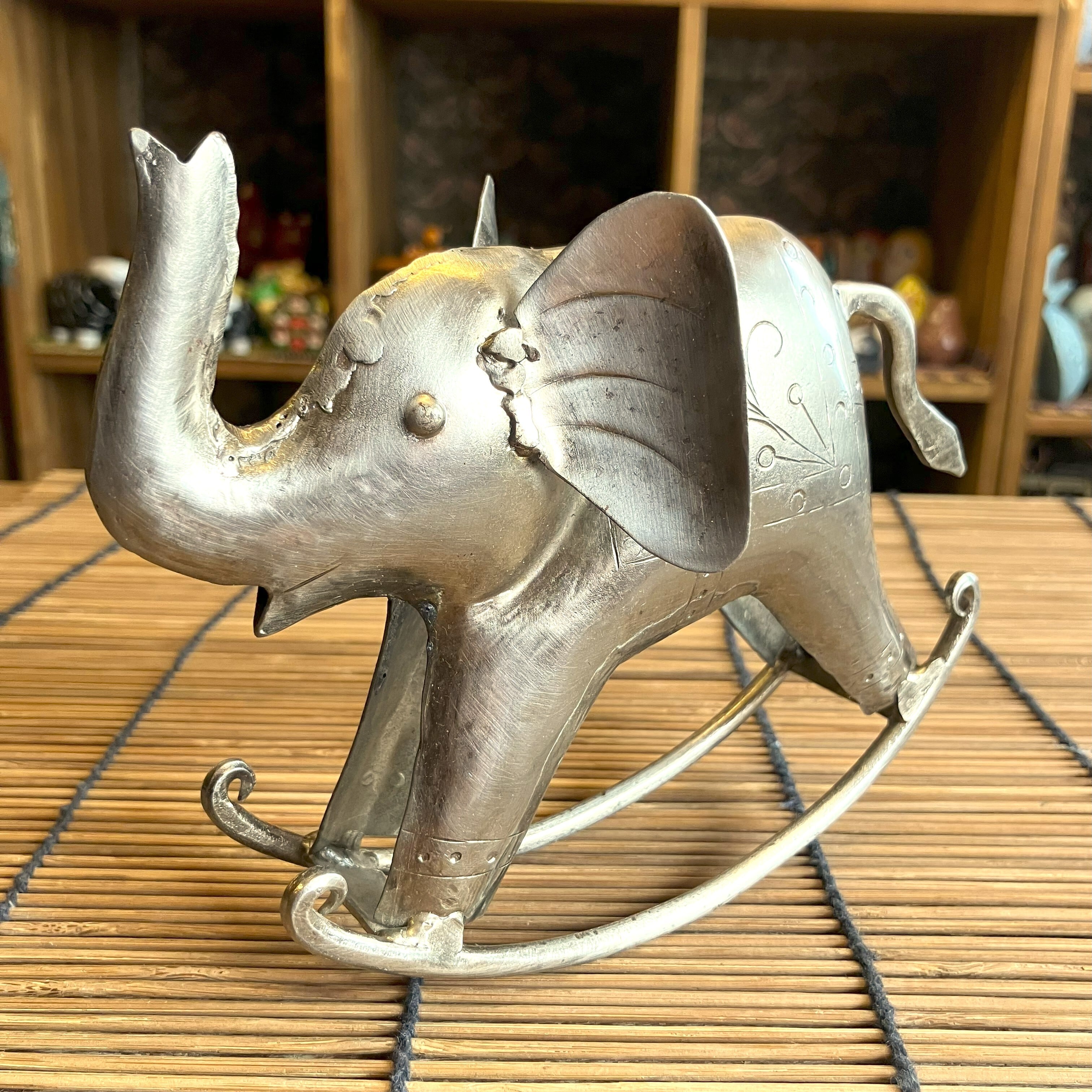 シルバーカラーが綺麗でお洒落なアイアンのゾウオブジェです。