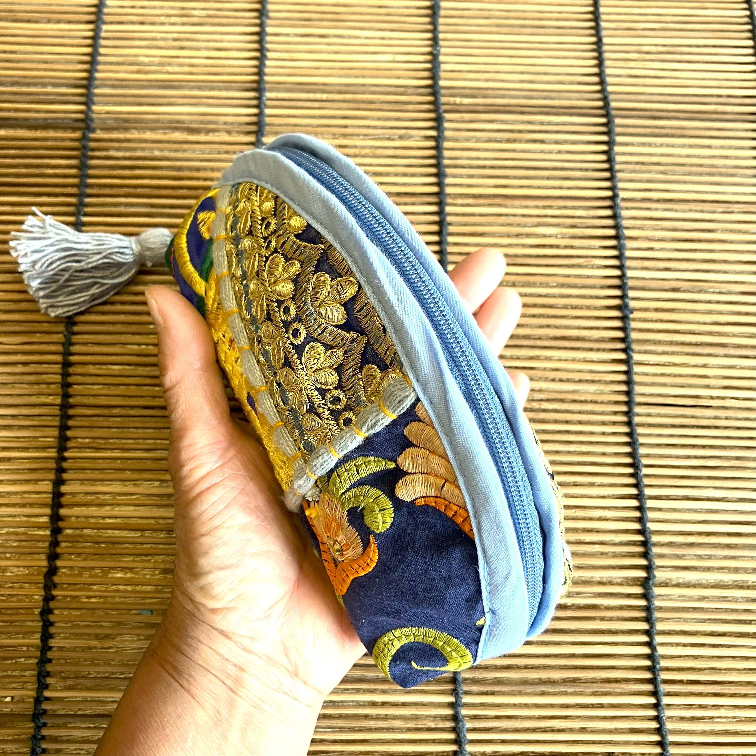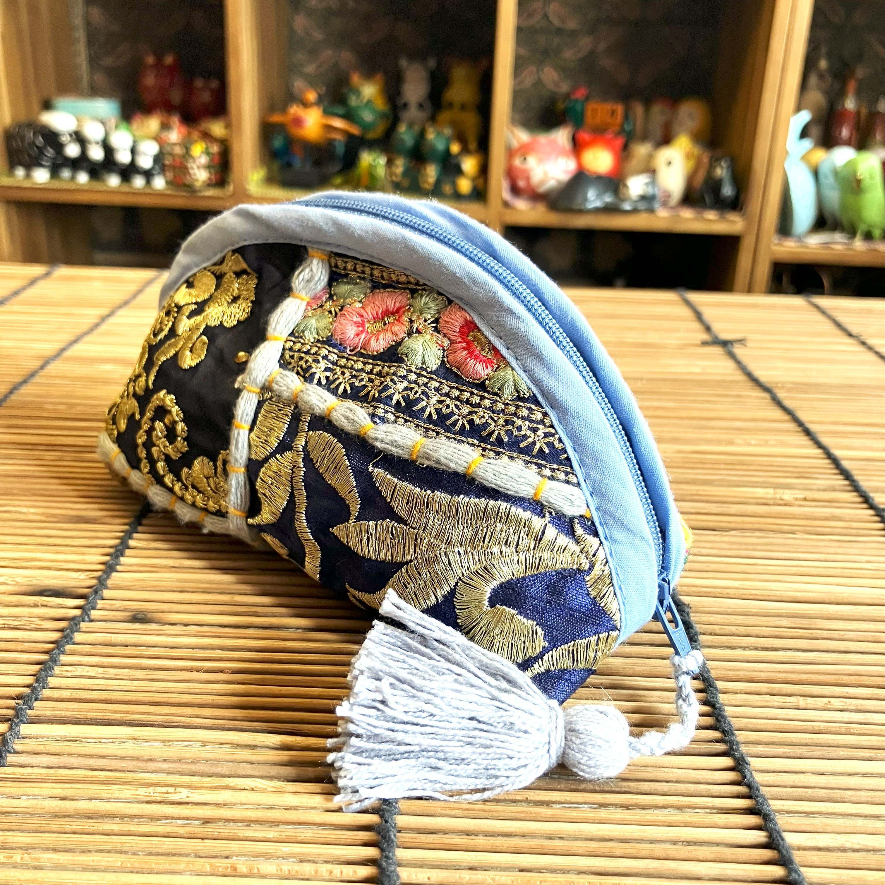 インドの伝統的な刺繍とアンティーク布をパッチワークした可愛いポーチです。