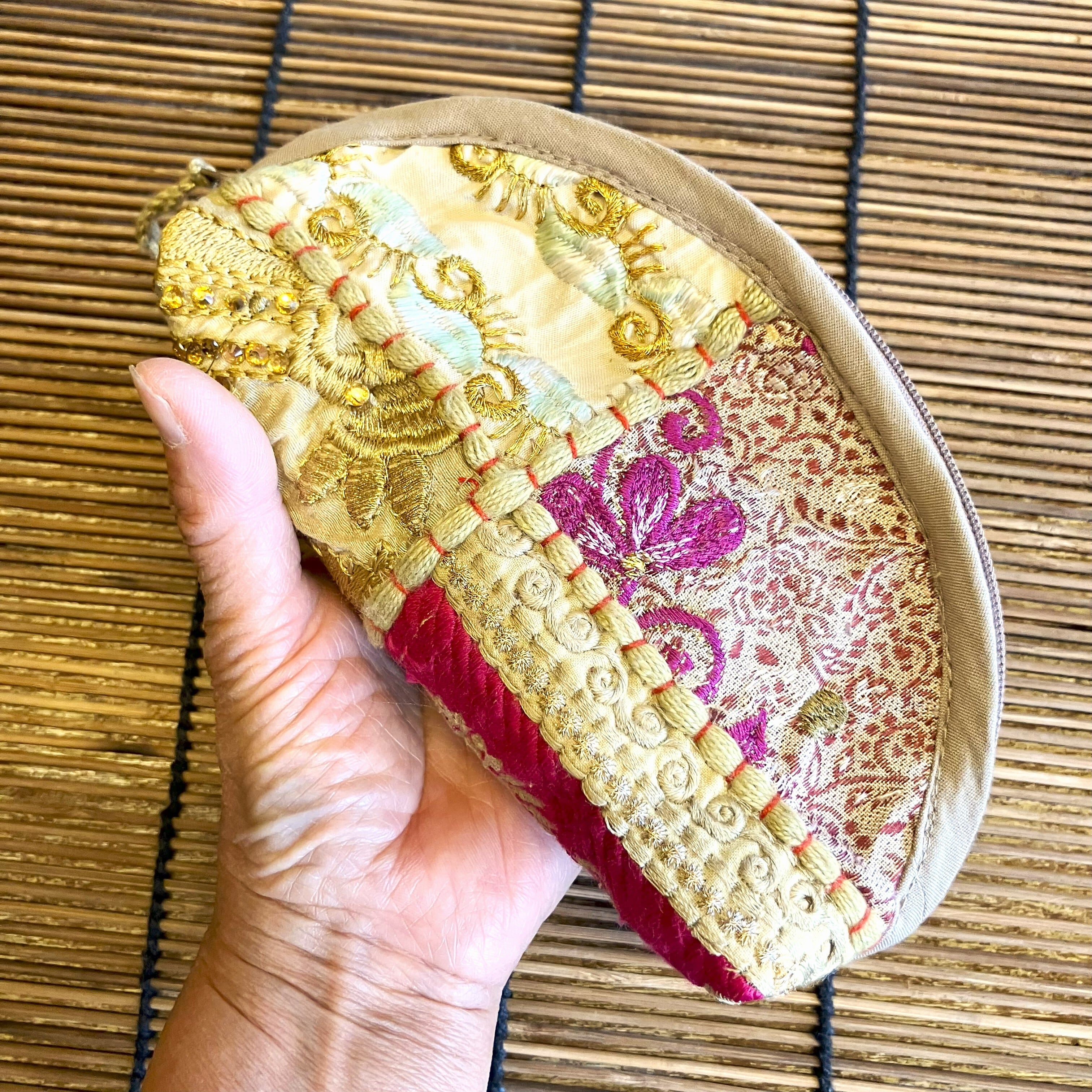 インドの伝統的な刺繍とアンティーク布をパッチワークした可愛いポーチです。