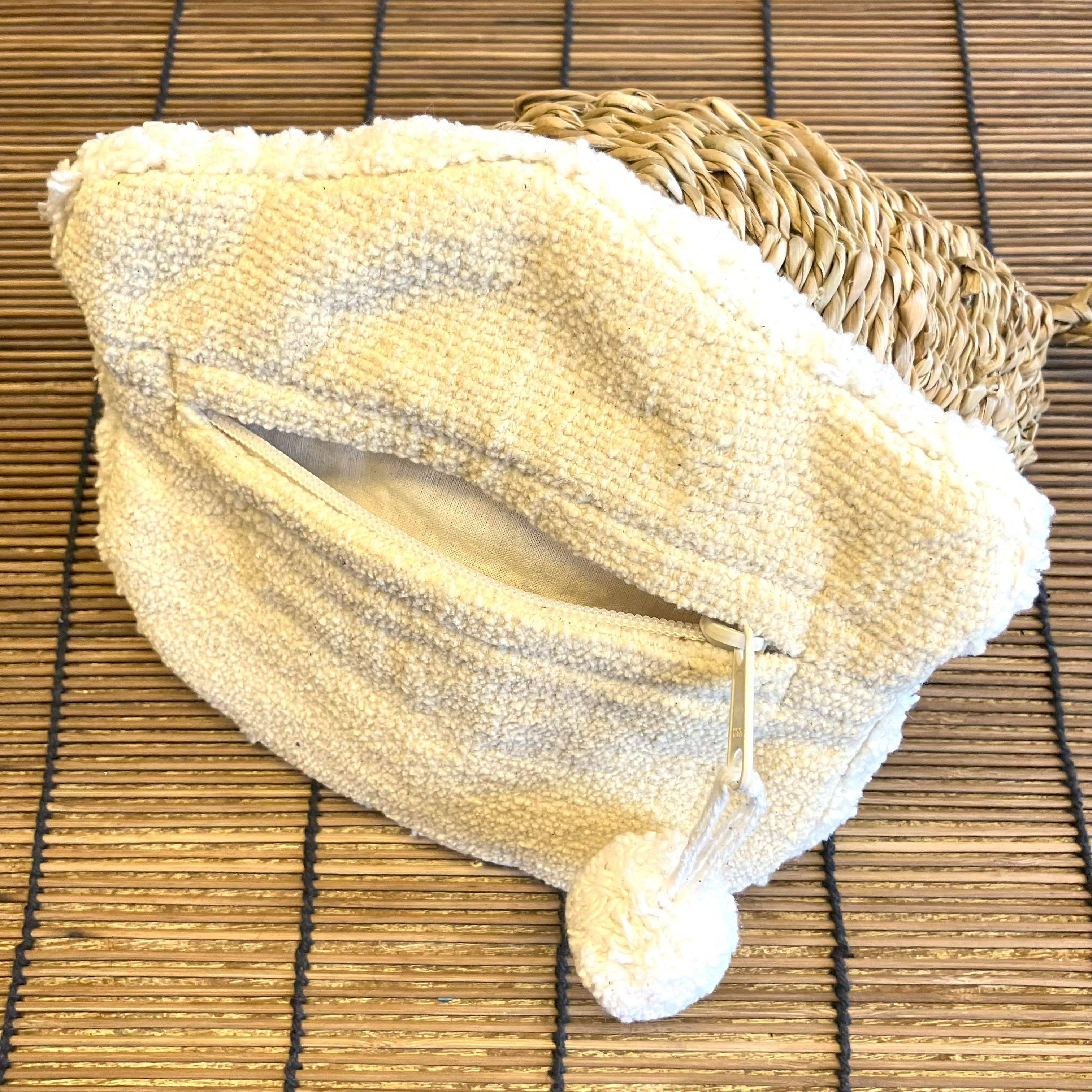 ぽこぽこ・もこもこの生地がぬいぐるみのようなポーチです。