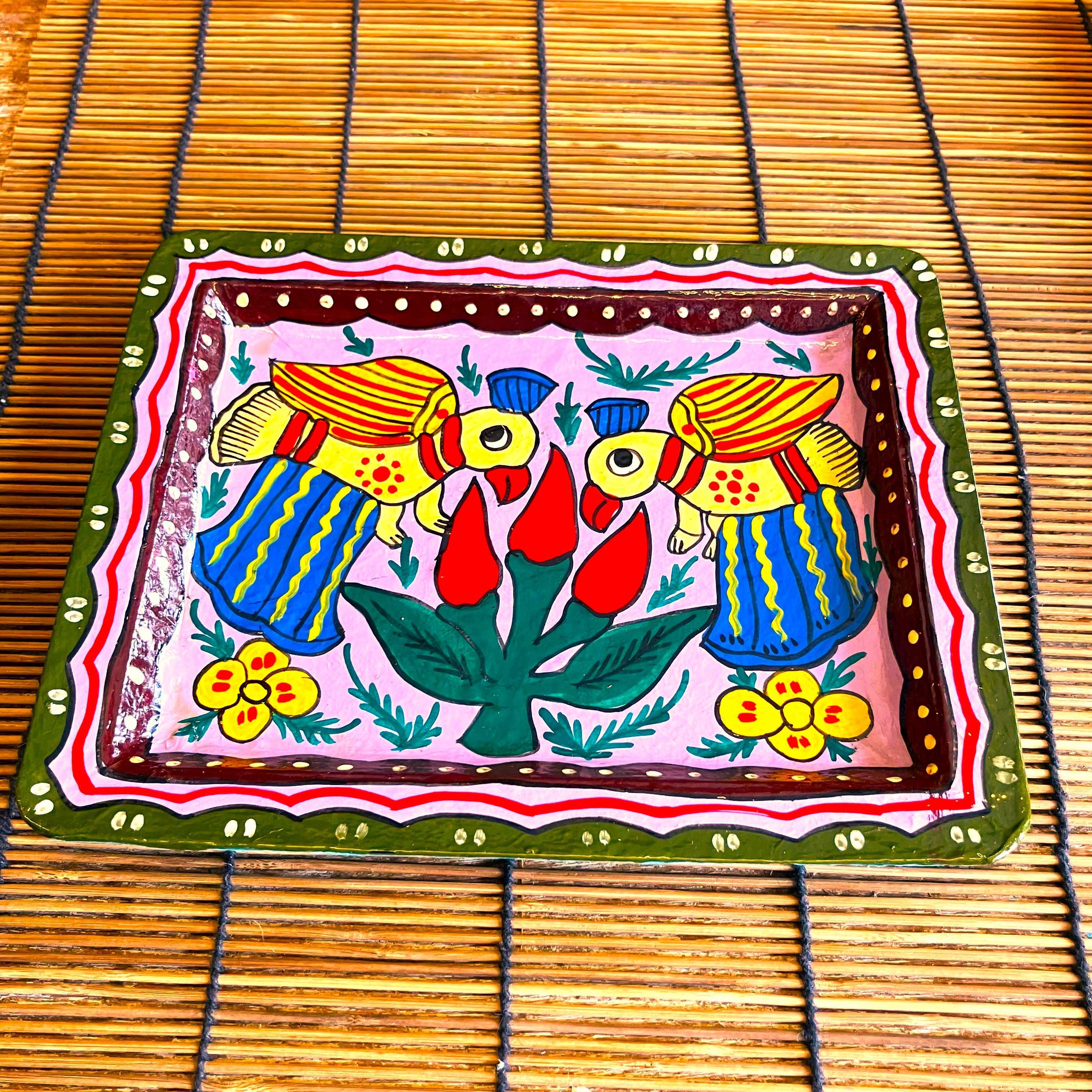 ネパールのミティーラ画をモチーフにしたトレイの飾りです。