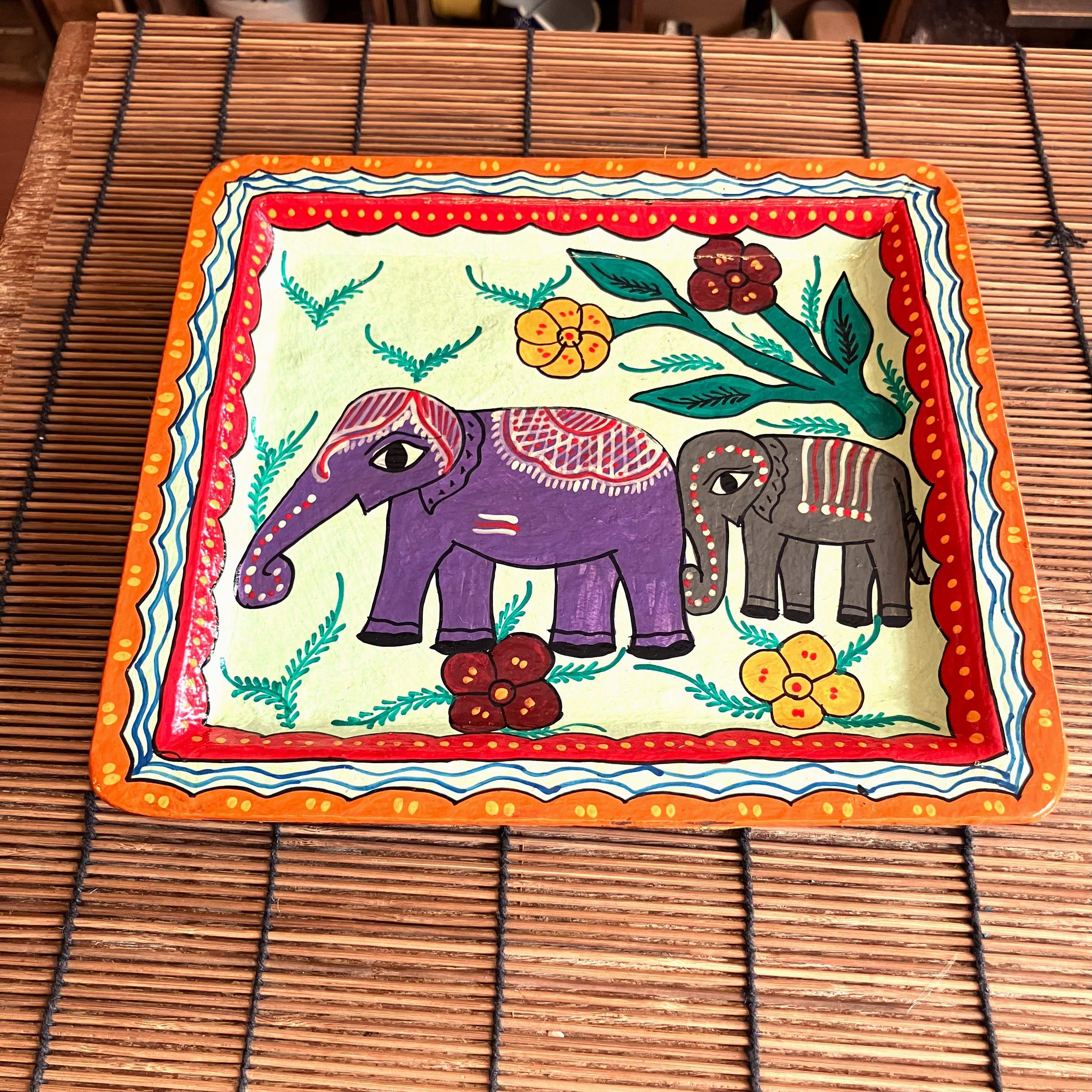 ネパールのミティーラ画をモチーフにしたトレイの飾りです。
