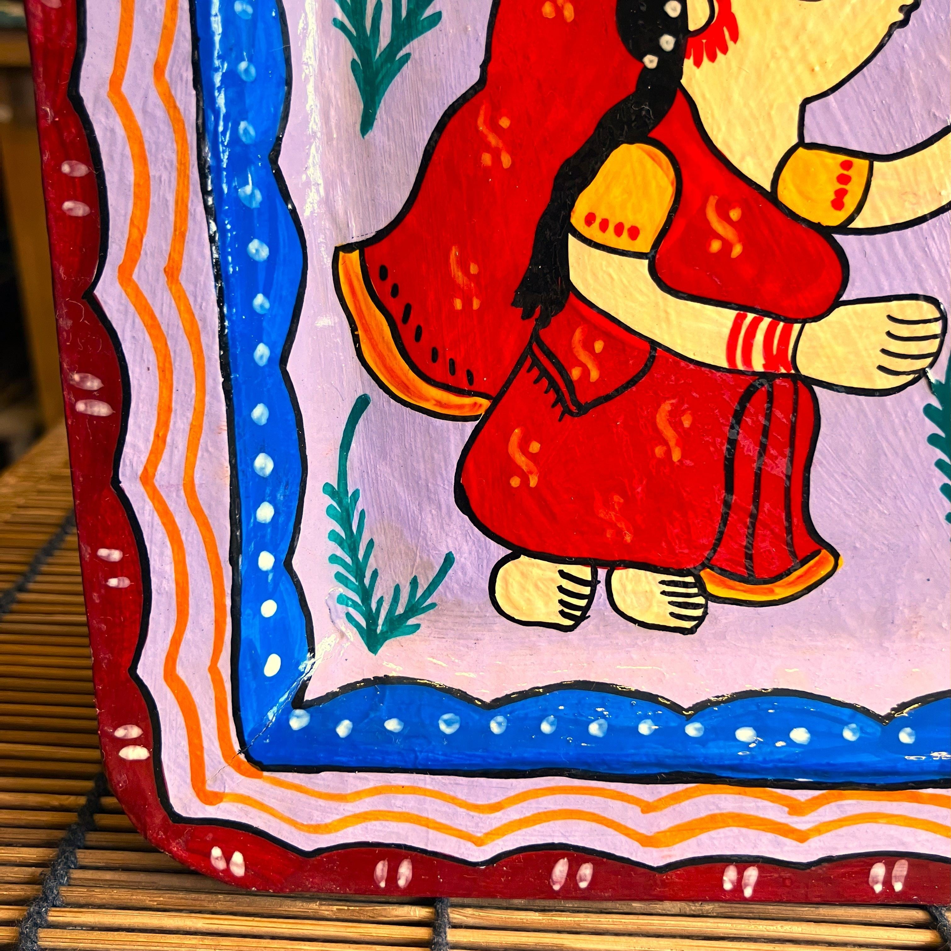 ネパールのミティーラ画をモチーフにしたトレイの飾りです。
