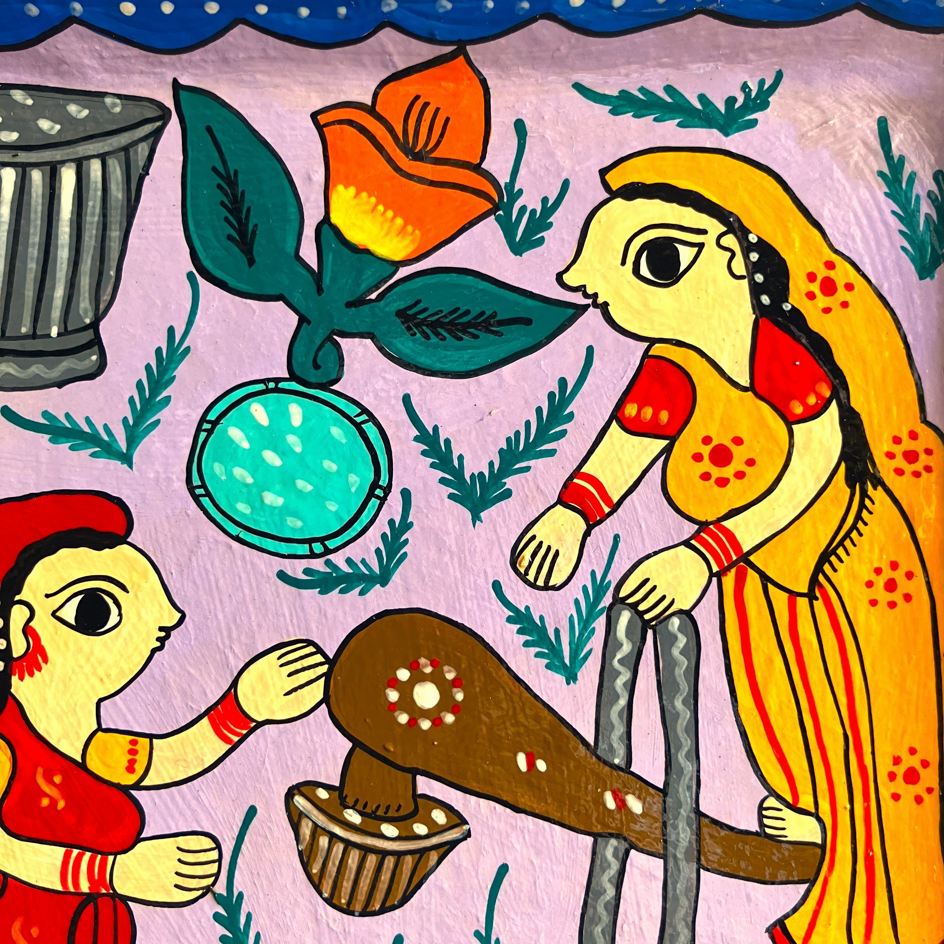 ネパールとインドの国境にまたがるミティーラ地方に古くから伝わる伝統的な絵画様式です。