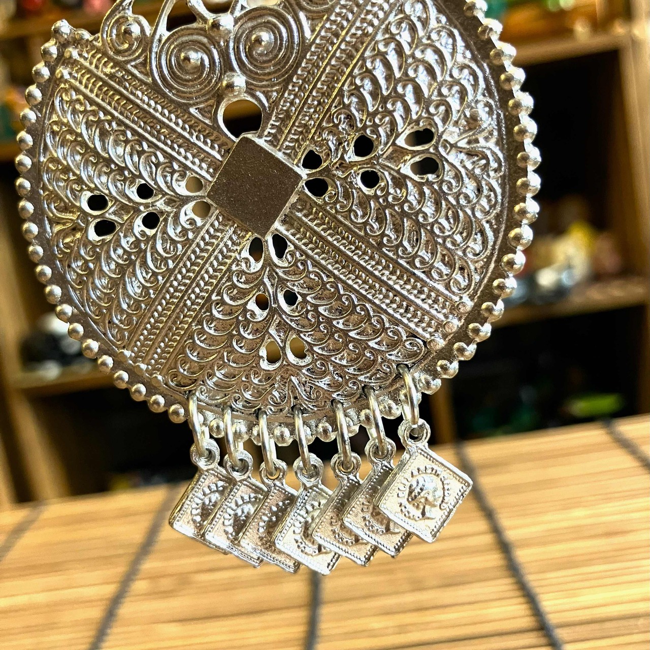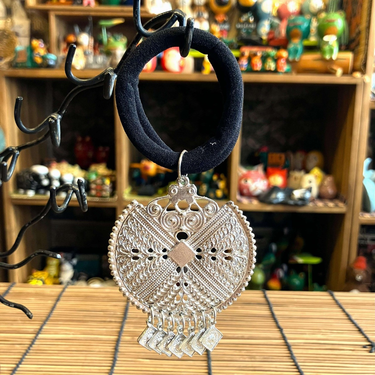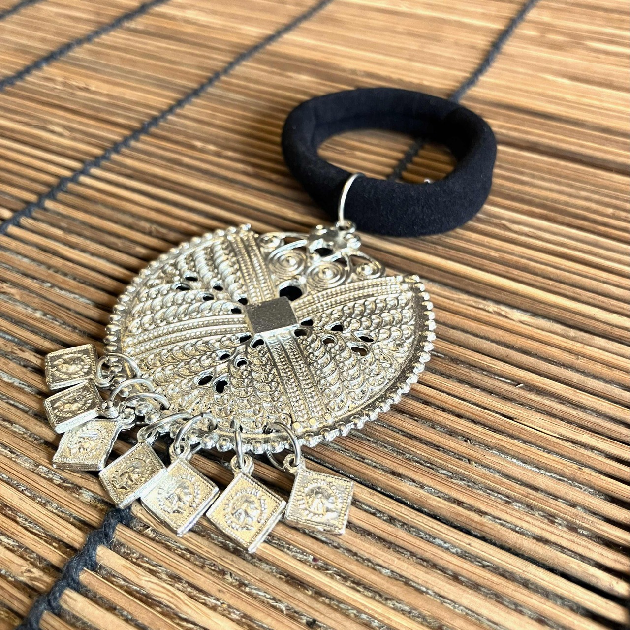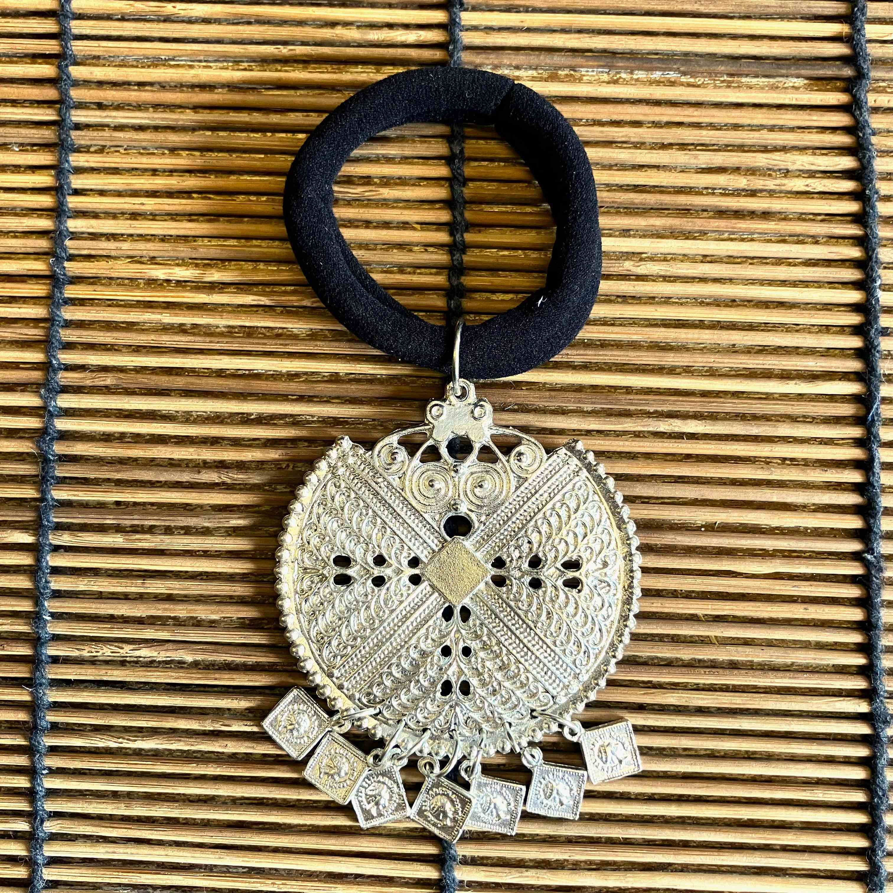 遊牧民が身に着ける飾りを思わせるチャーミングなヘアゴムです。