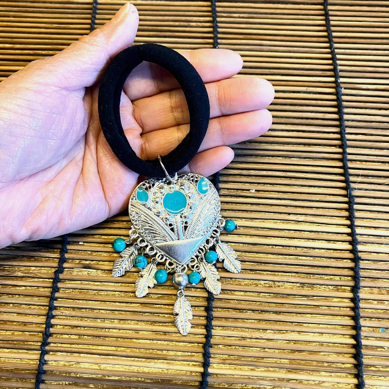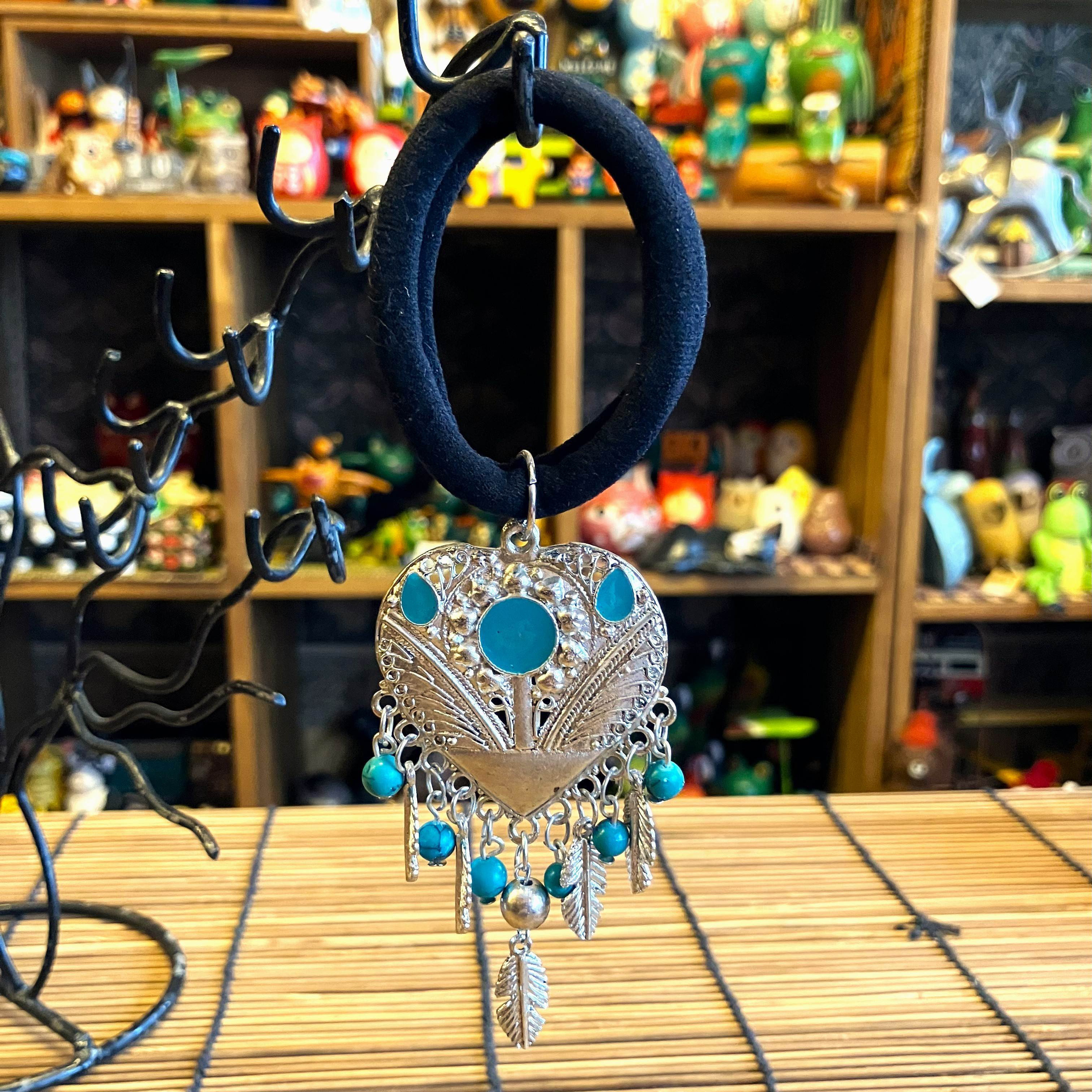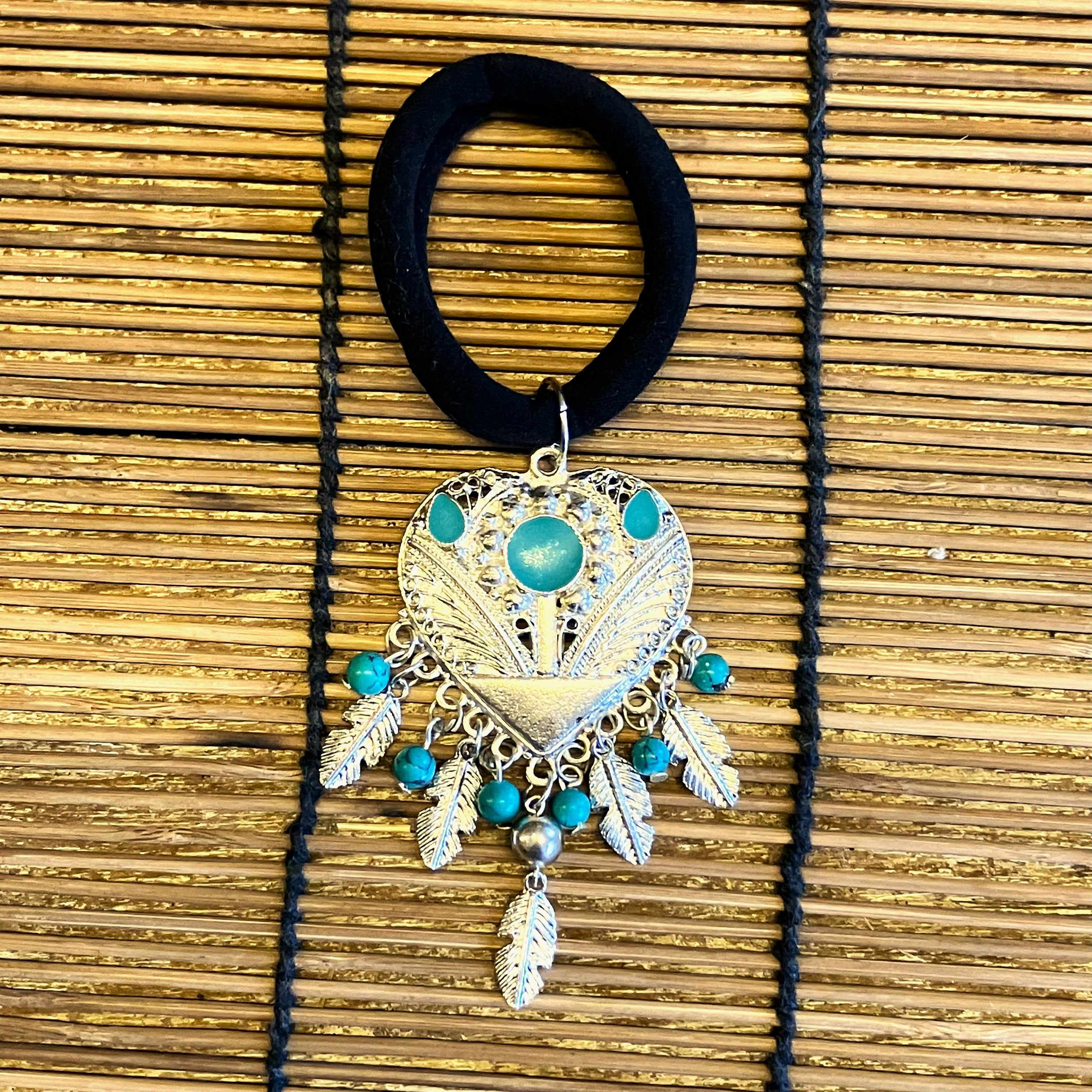 遊牧民が身に着ける飾りを思わせるチャーミングなヘアゴムです。