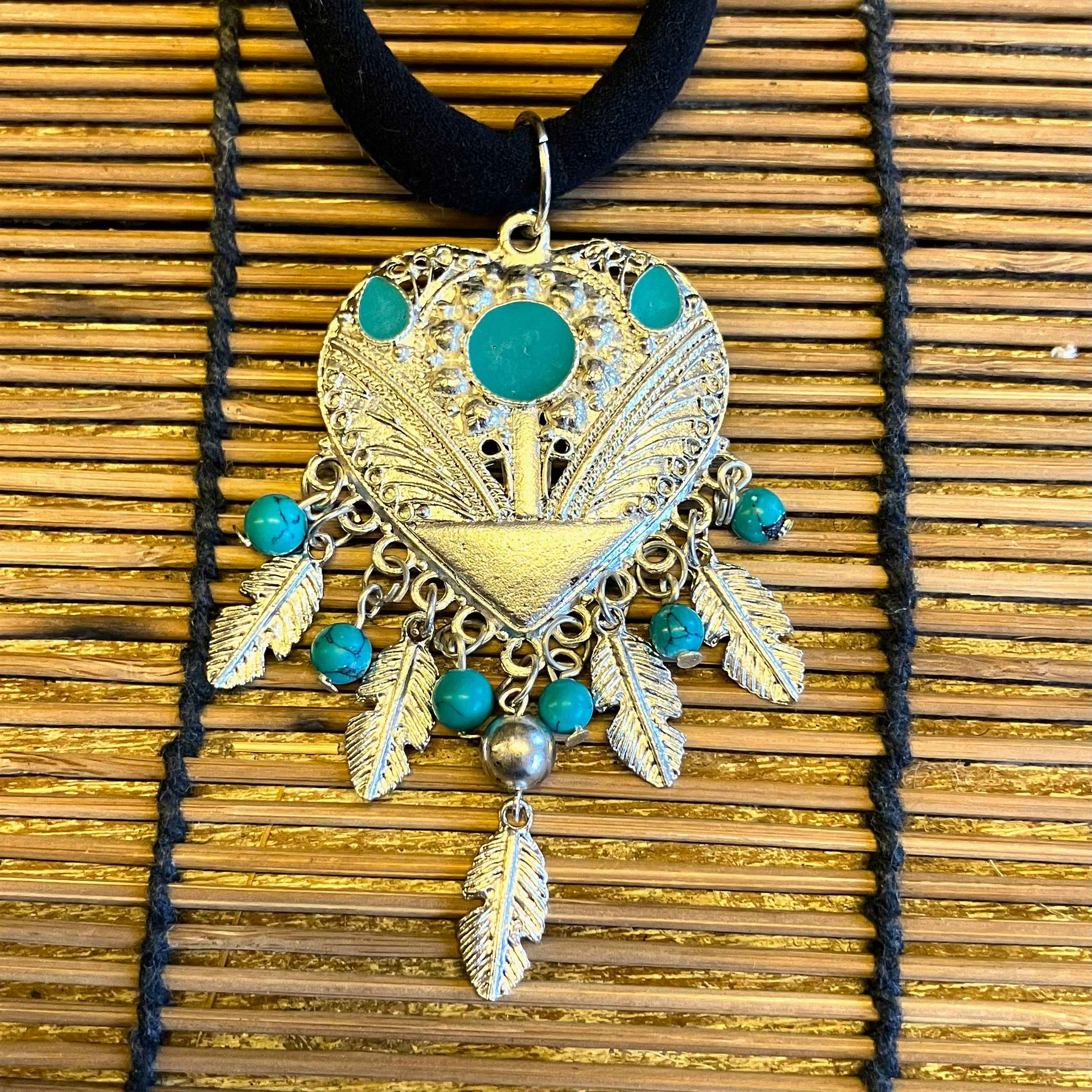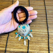 ハートとフェザーの組み合わせでターコイズブルーも綺麗です。