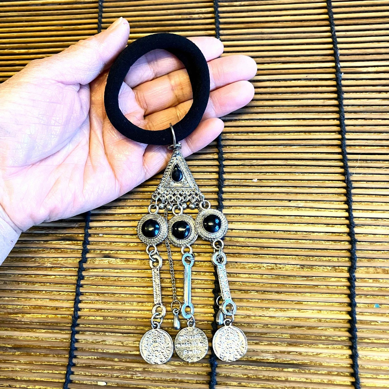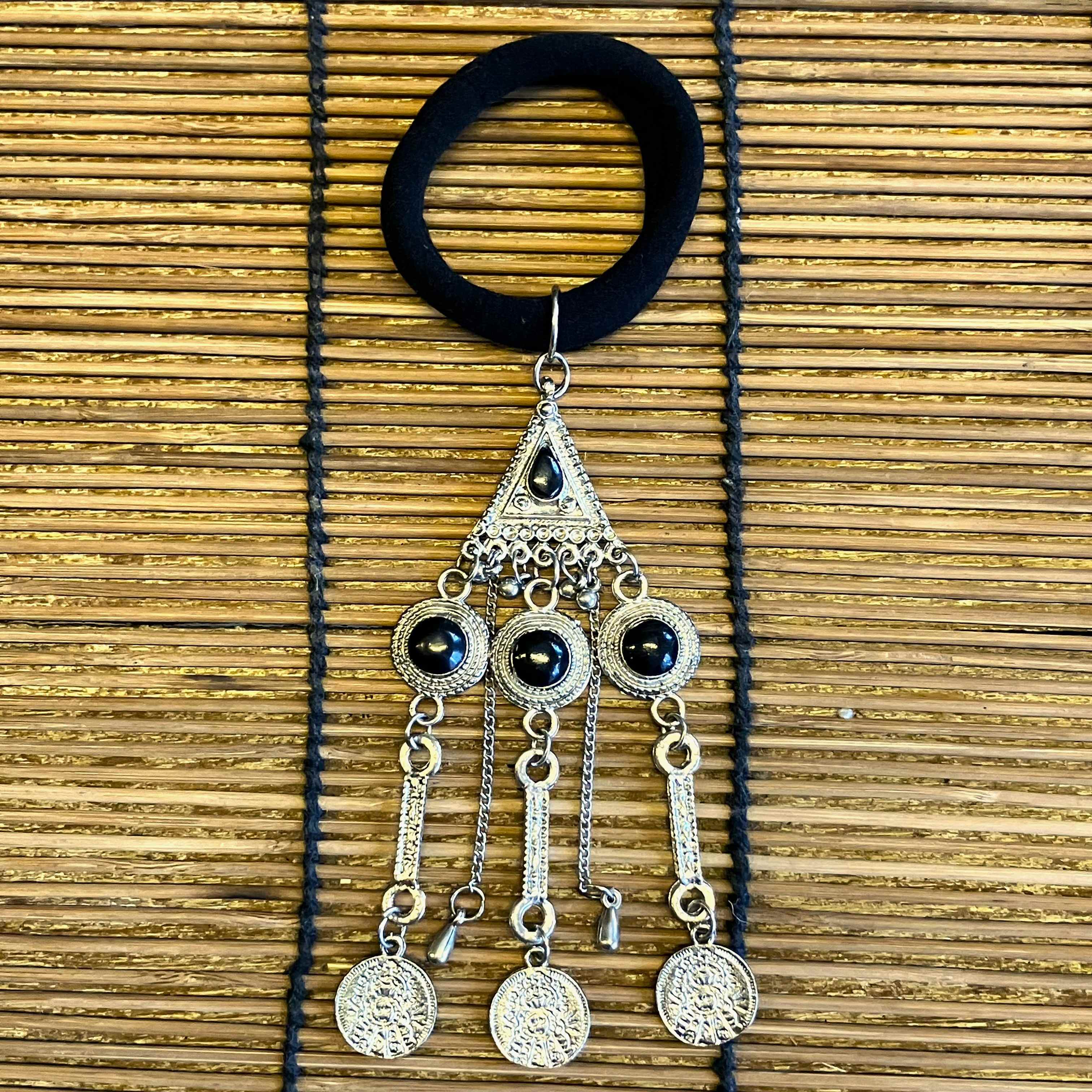 遊牧民が身に着ける飾りを思わせるチャーミングなヘアゴムです。