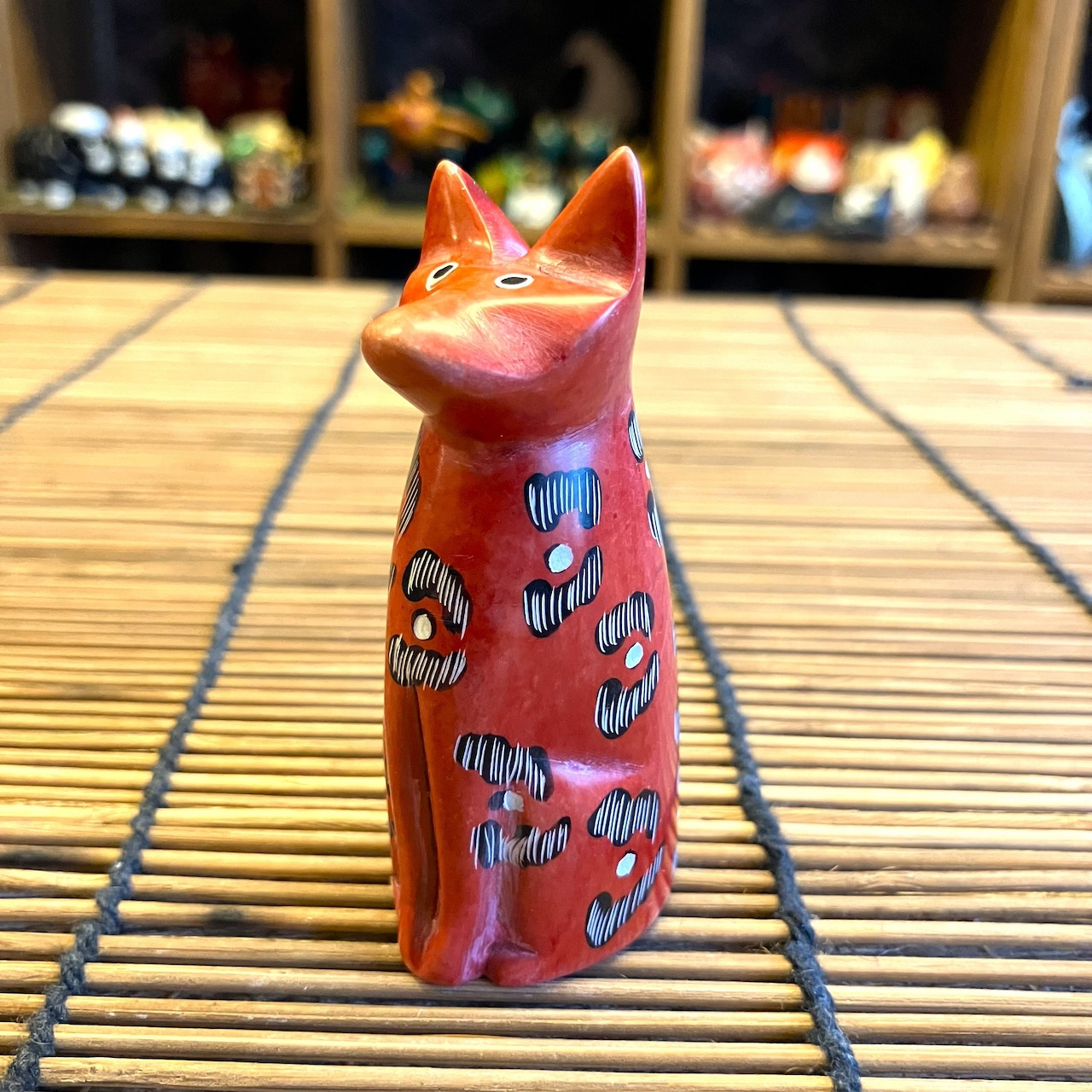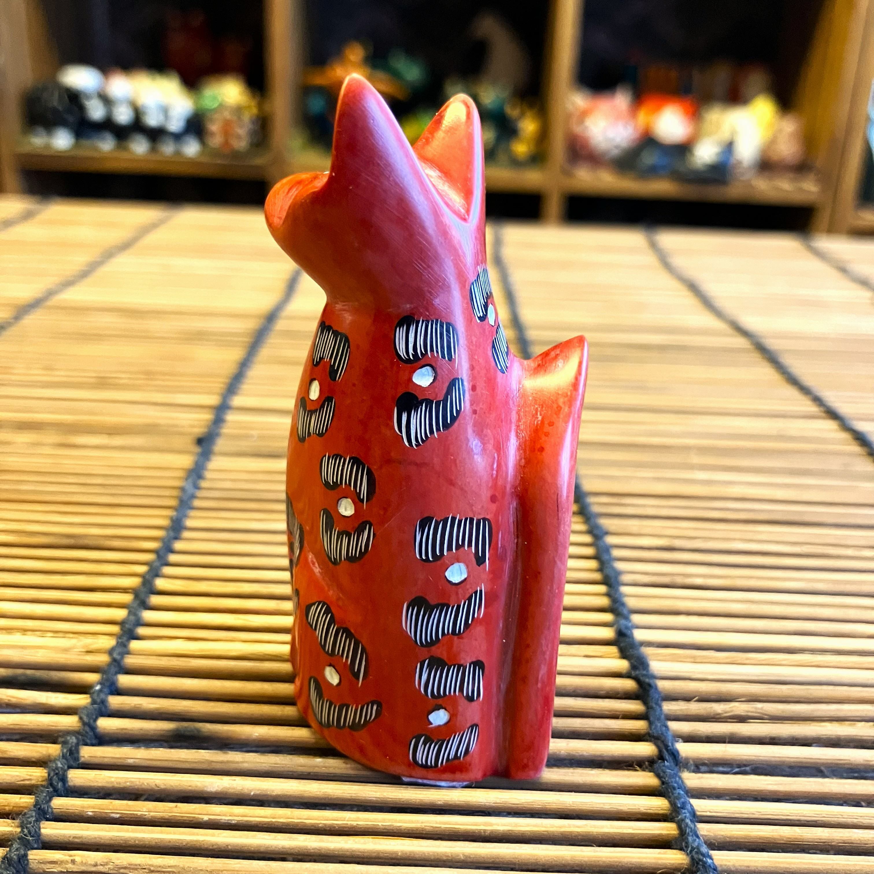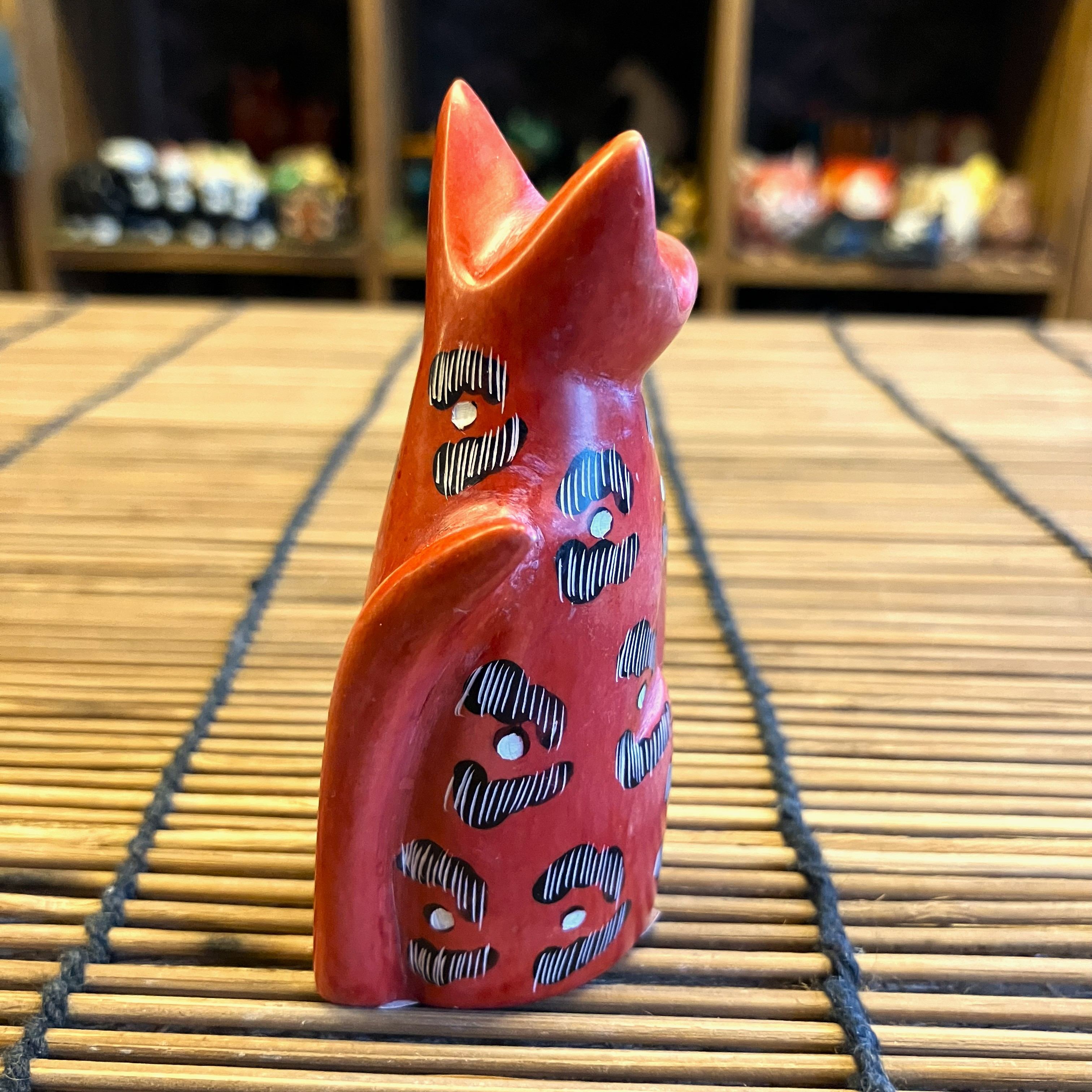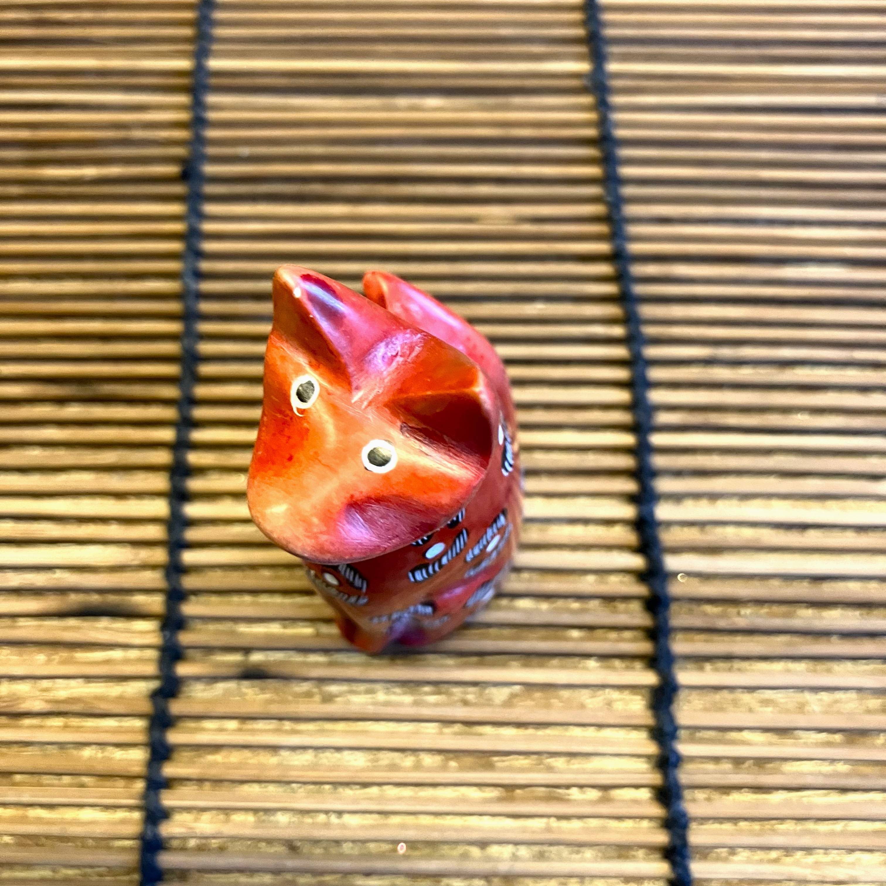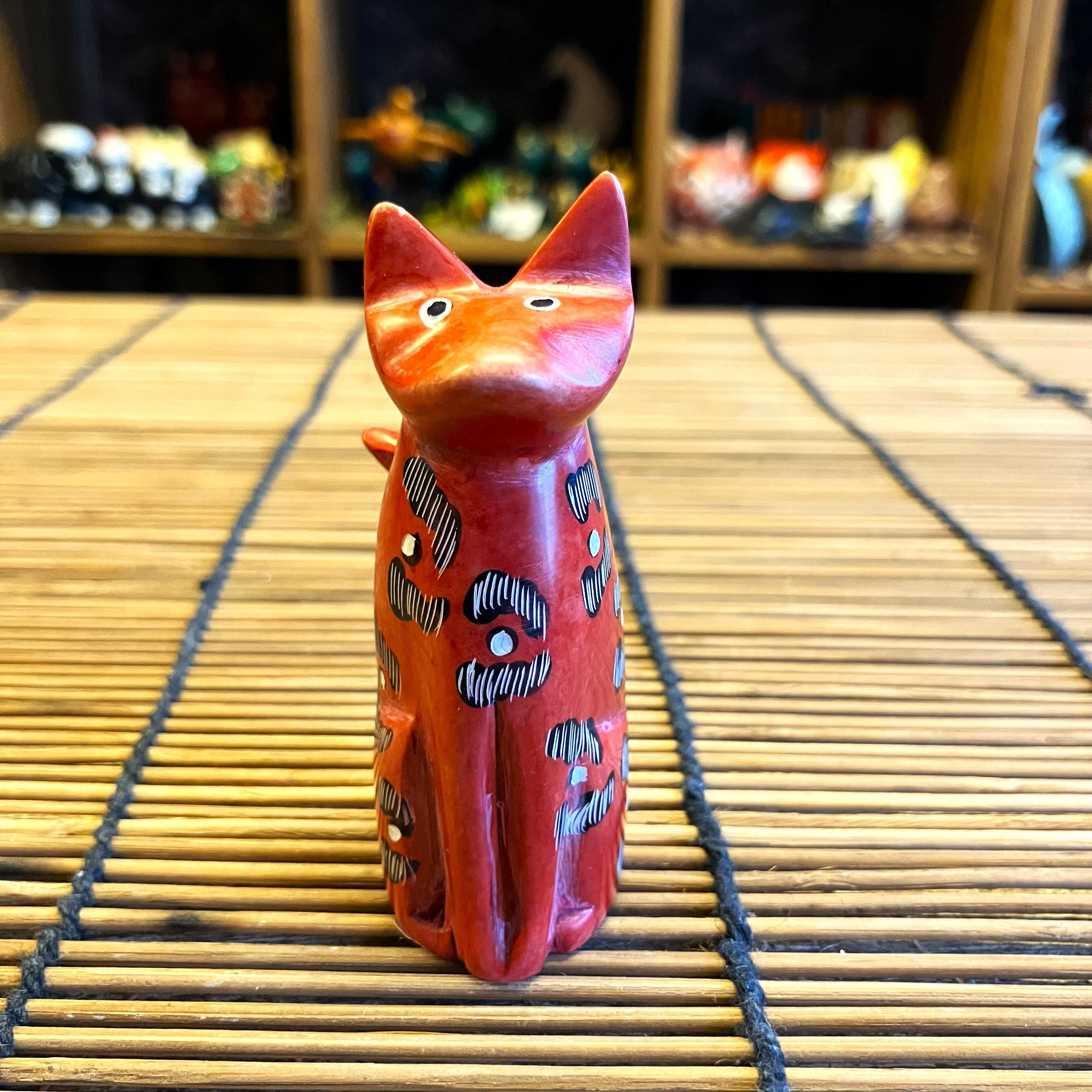 ケニアの手作りオブジェで小さなレッドのネコさんです。