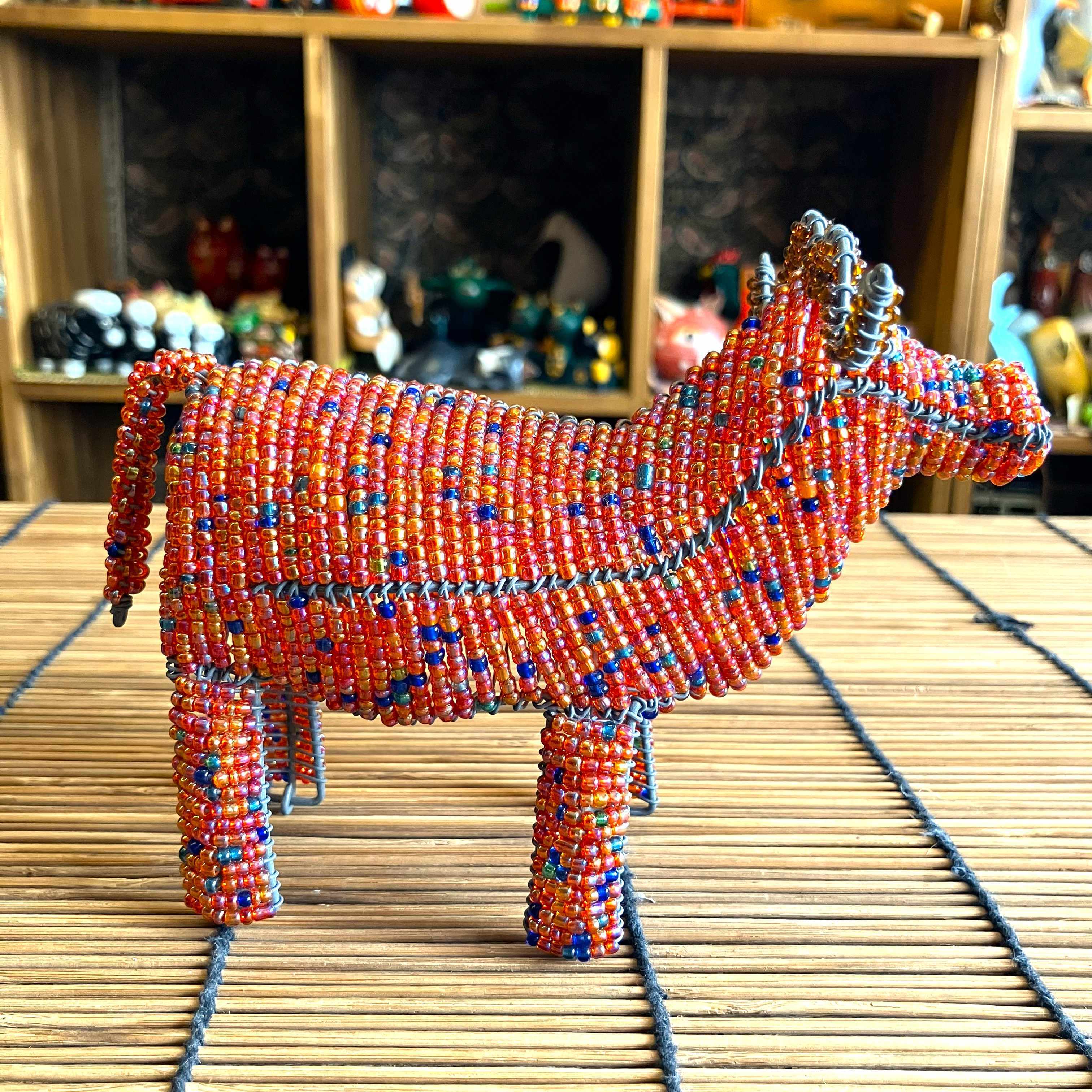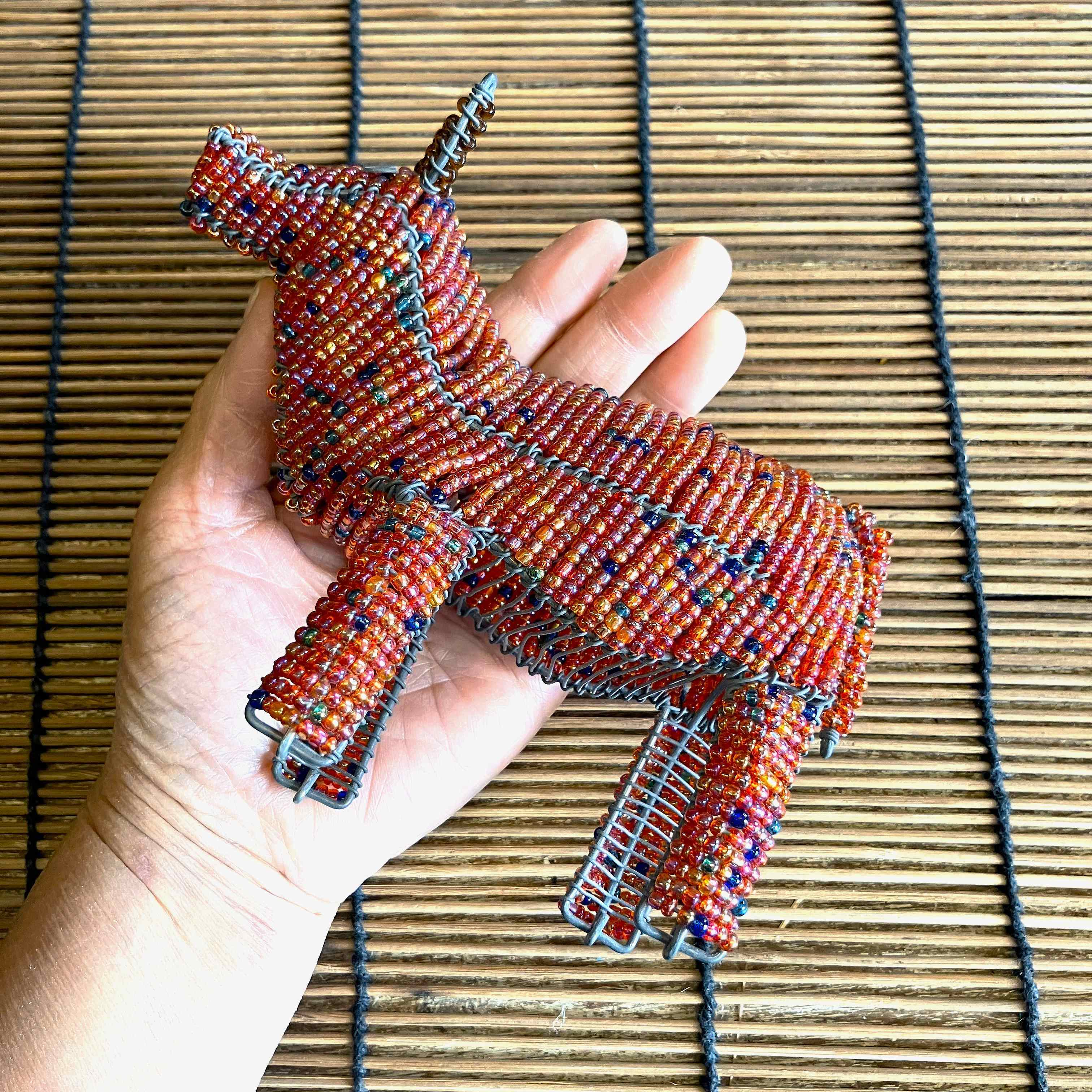 ケニアからやってきた手作りのオブジェで、ワイヤーとビーズを使って細かく丁寧に作られています。