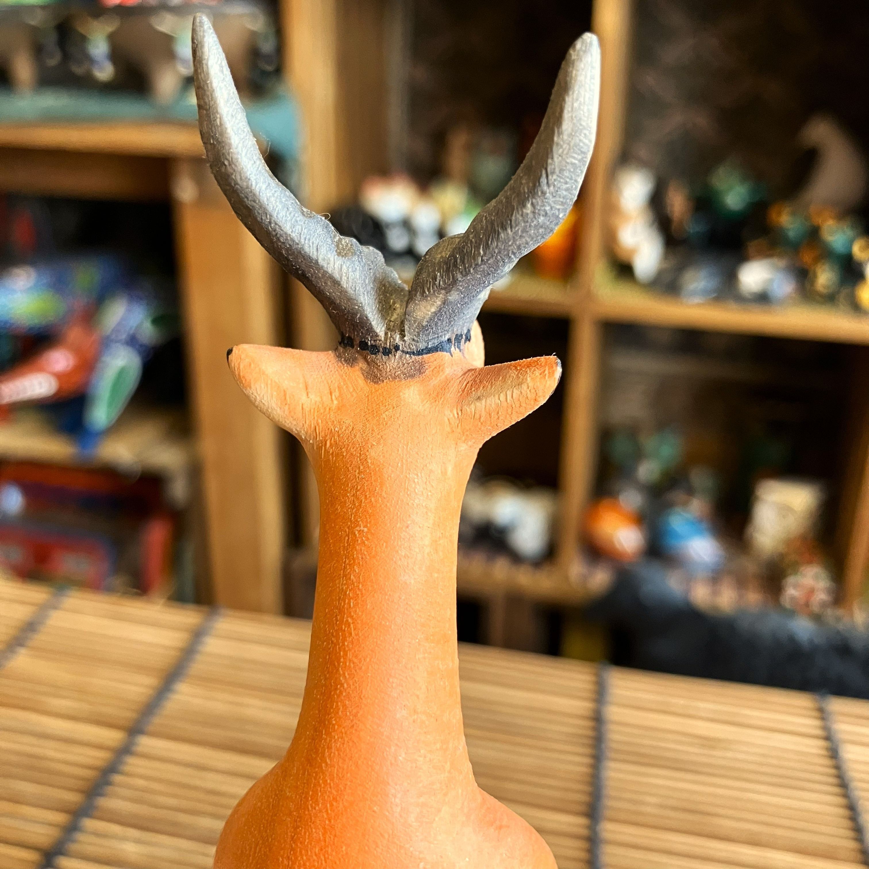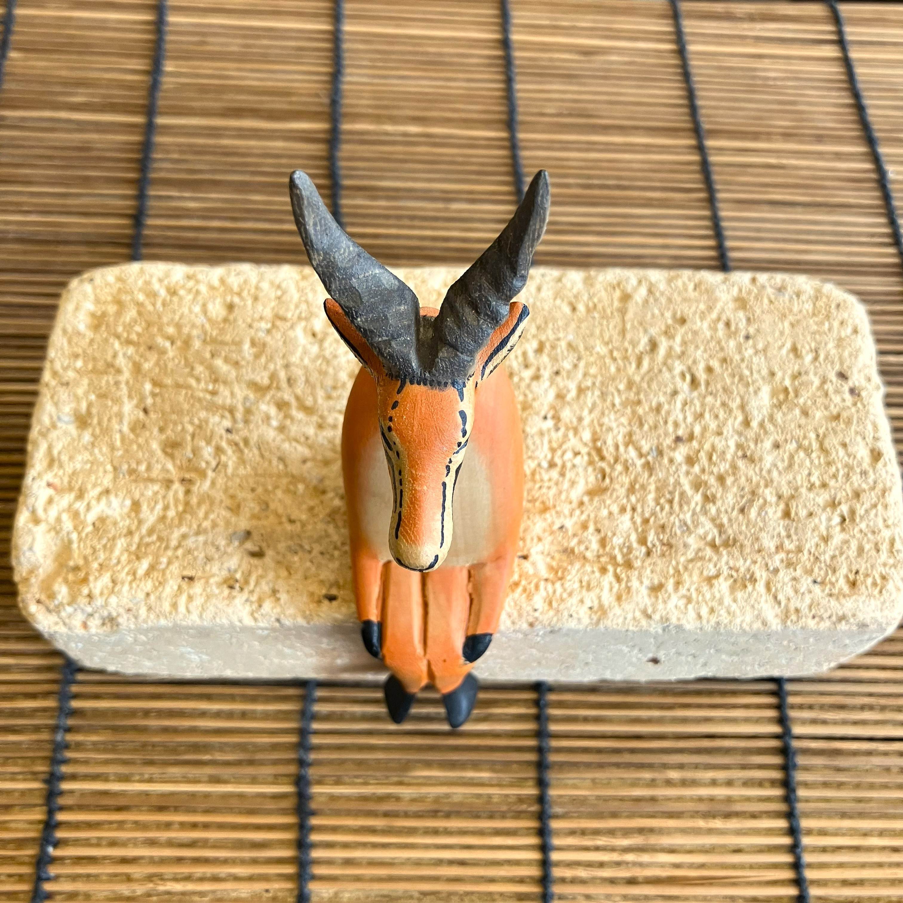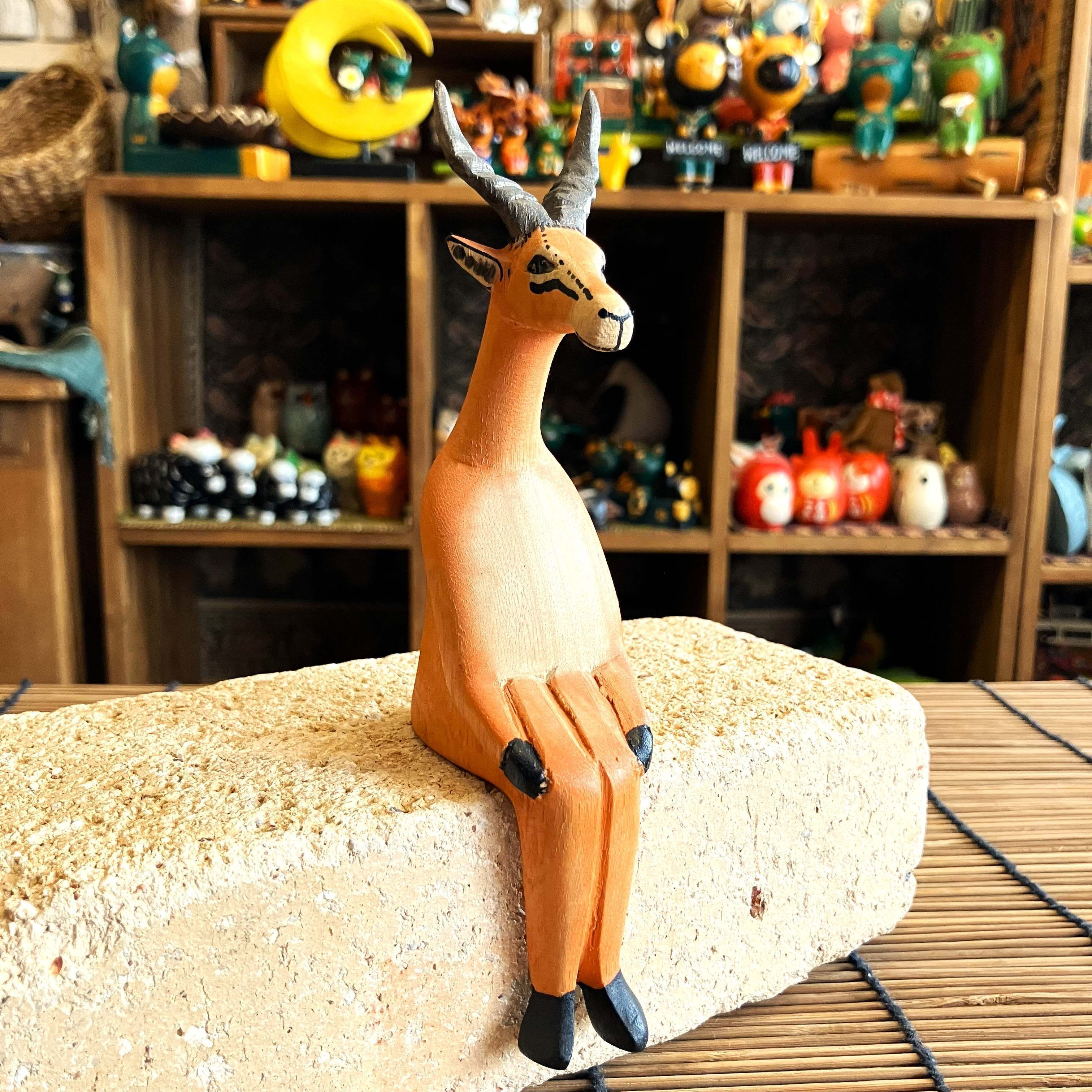 ケニアの手作りオブジェで、腰かけている動物シリーズの座りガゼルです。