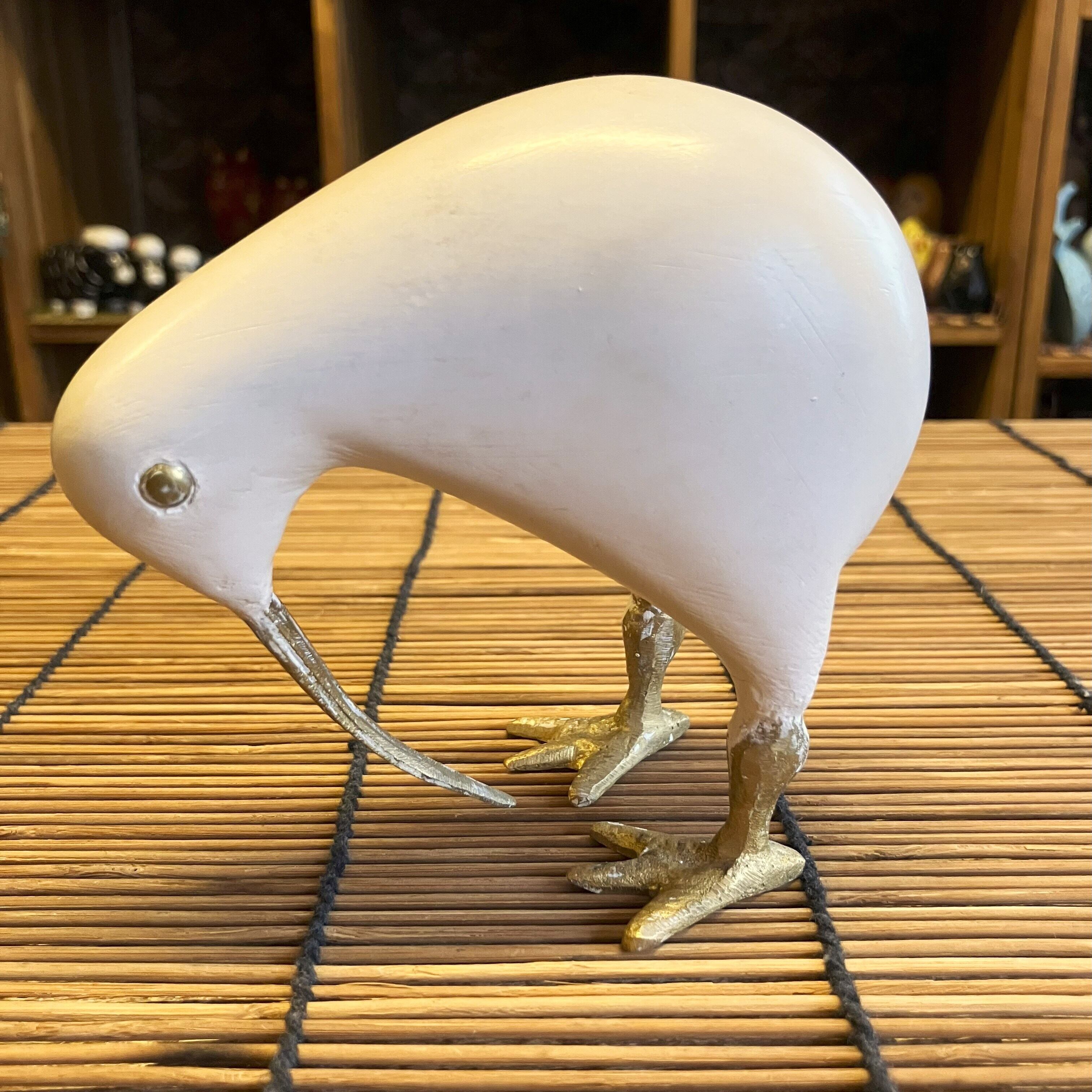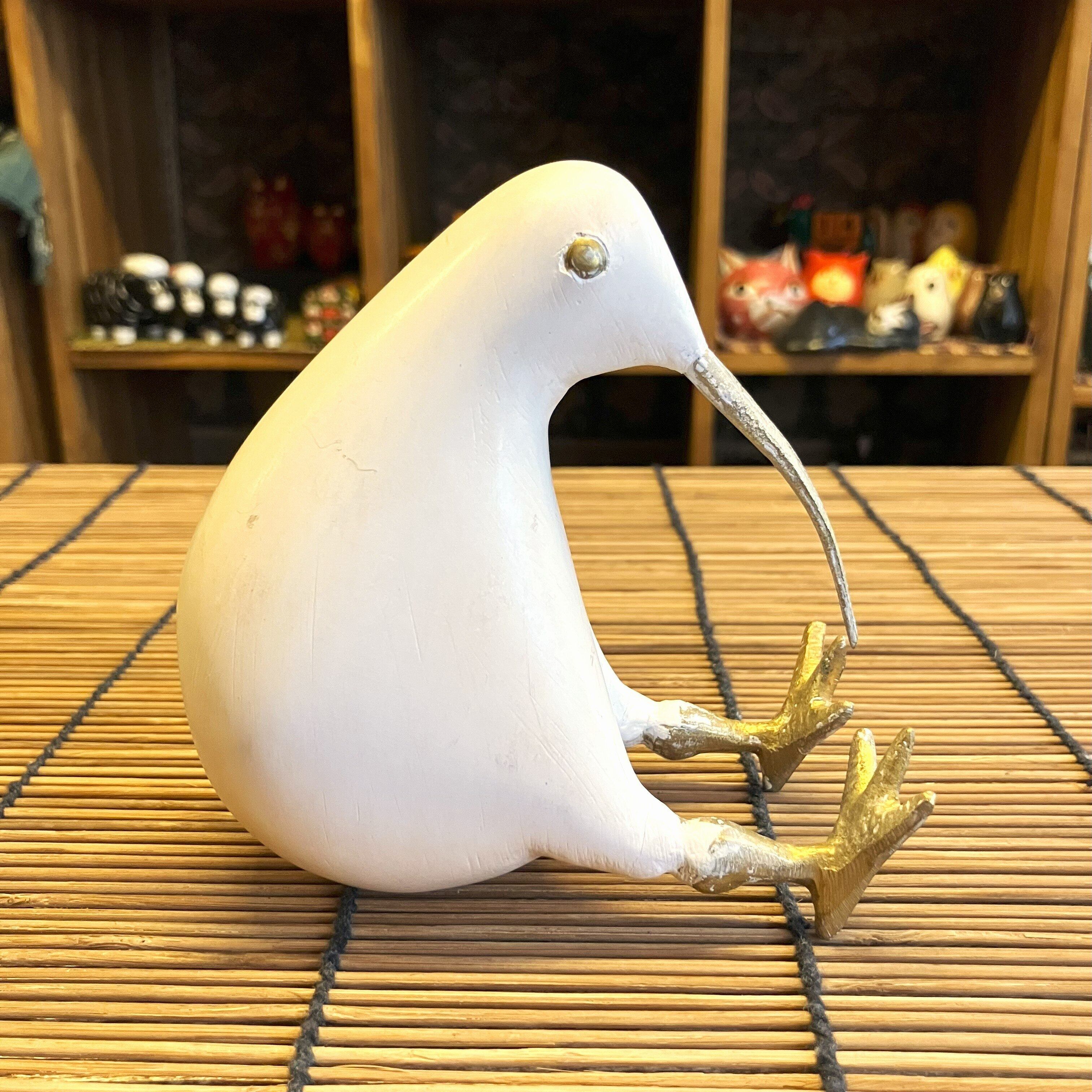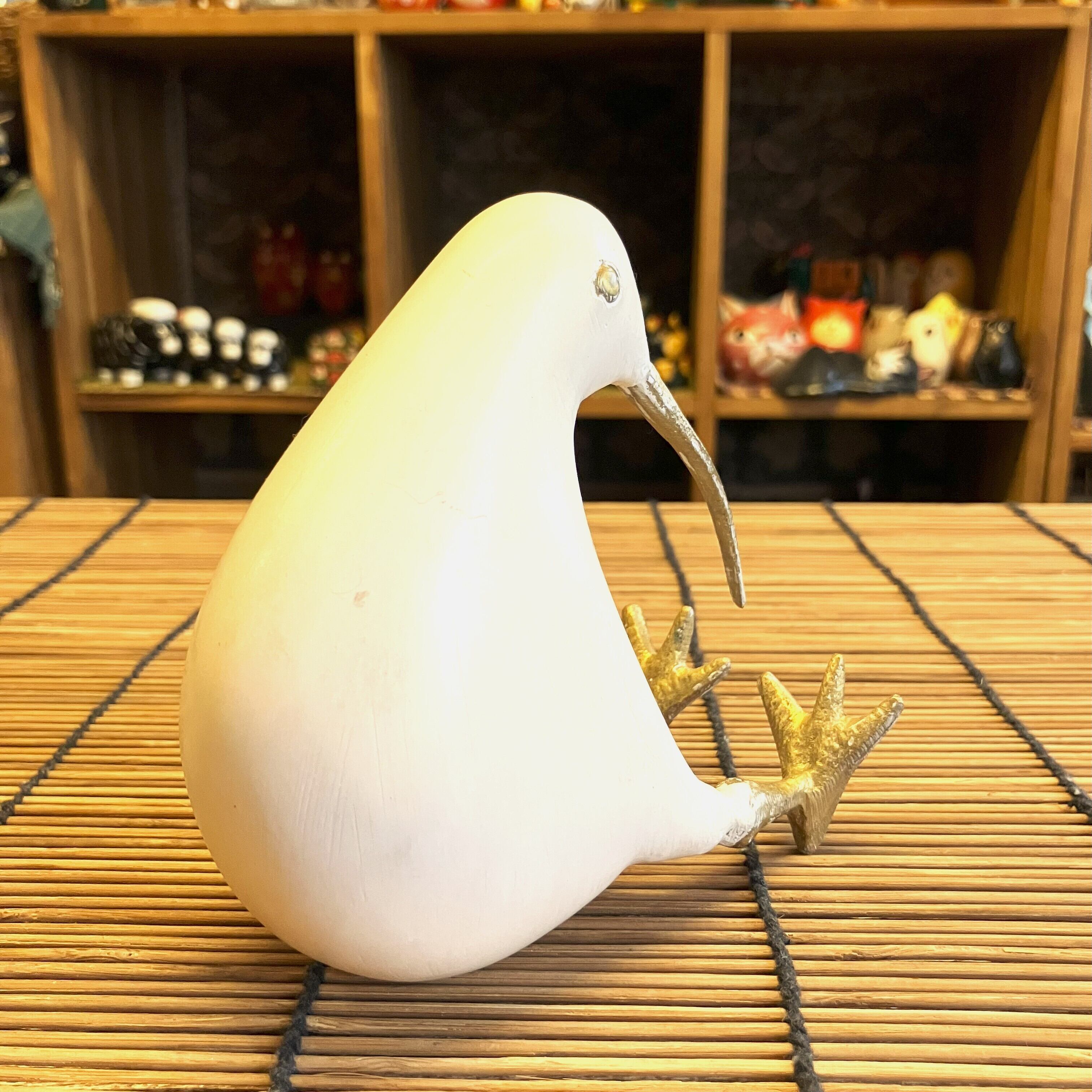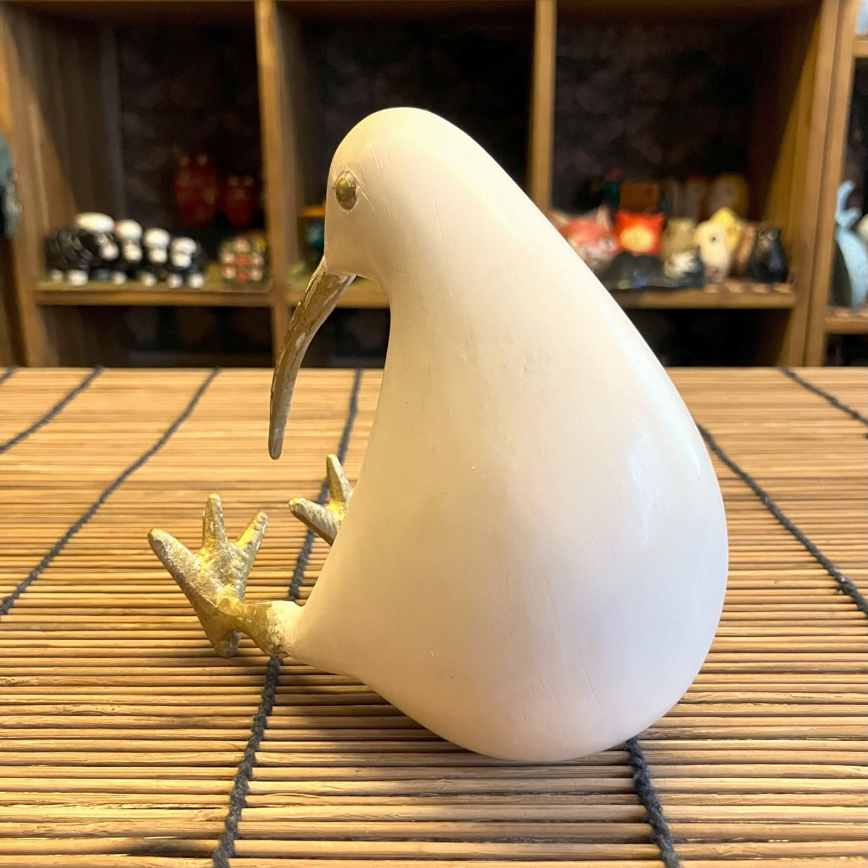 なめらかな手触りの木製ボディに、くちばしと足が真ちゅうで作られた『キウイ』のオブジェ