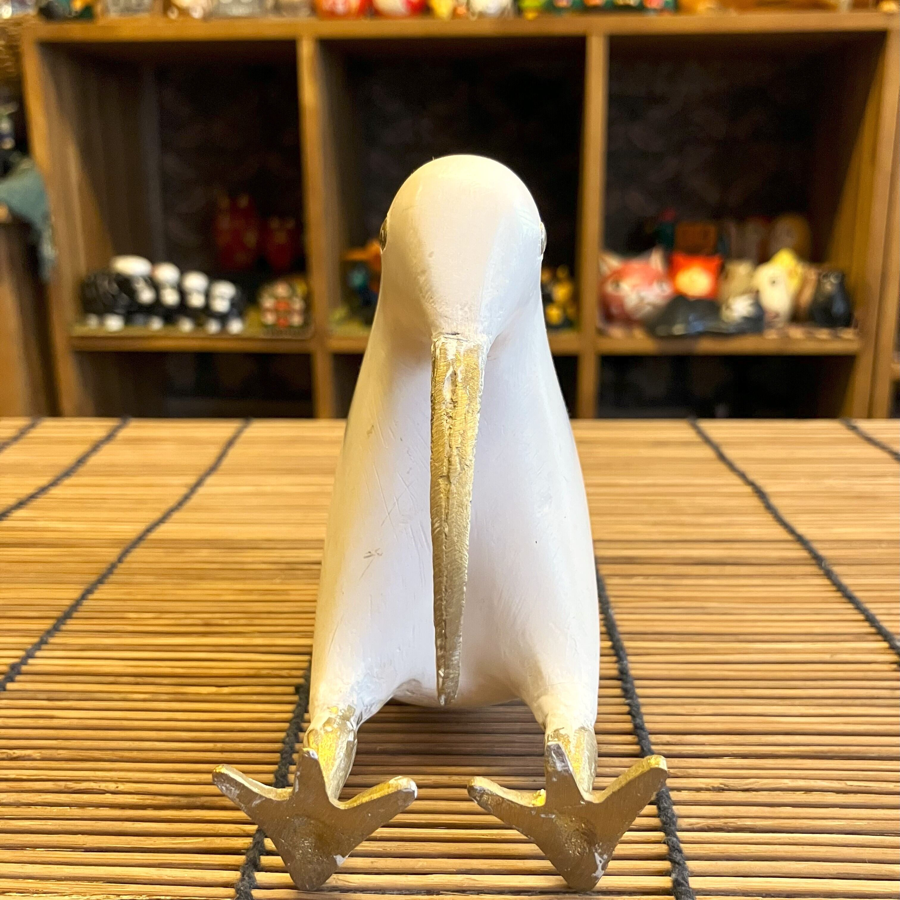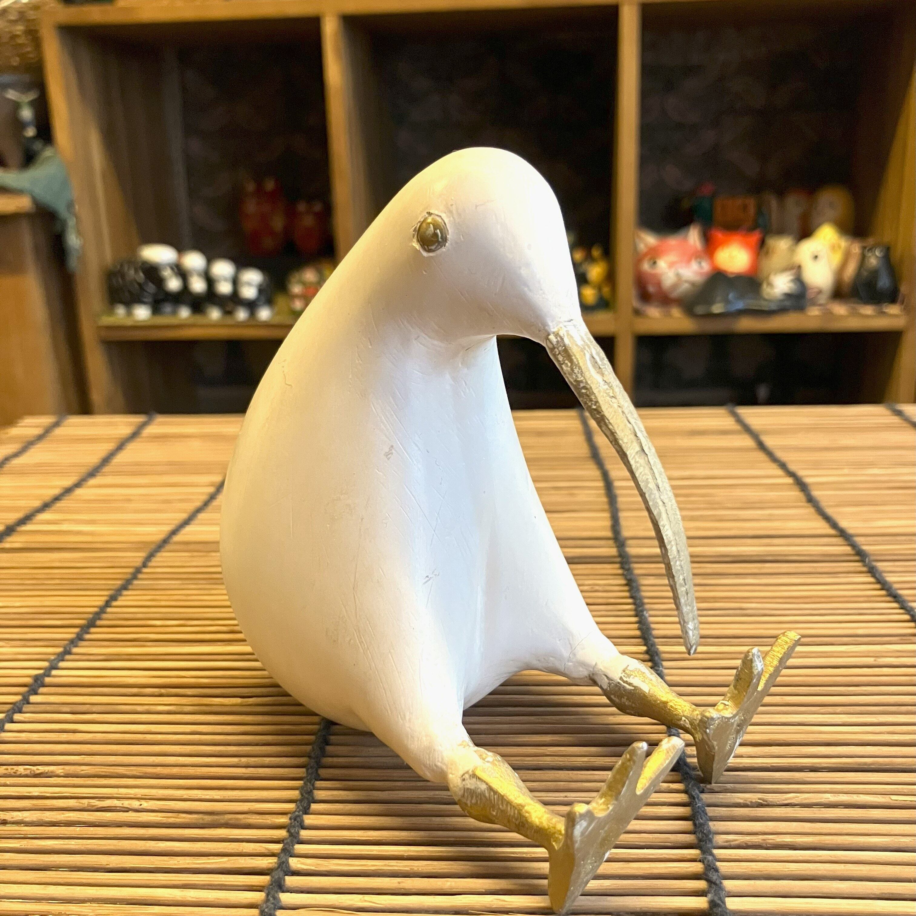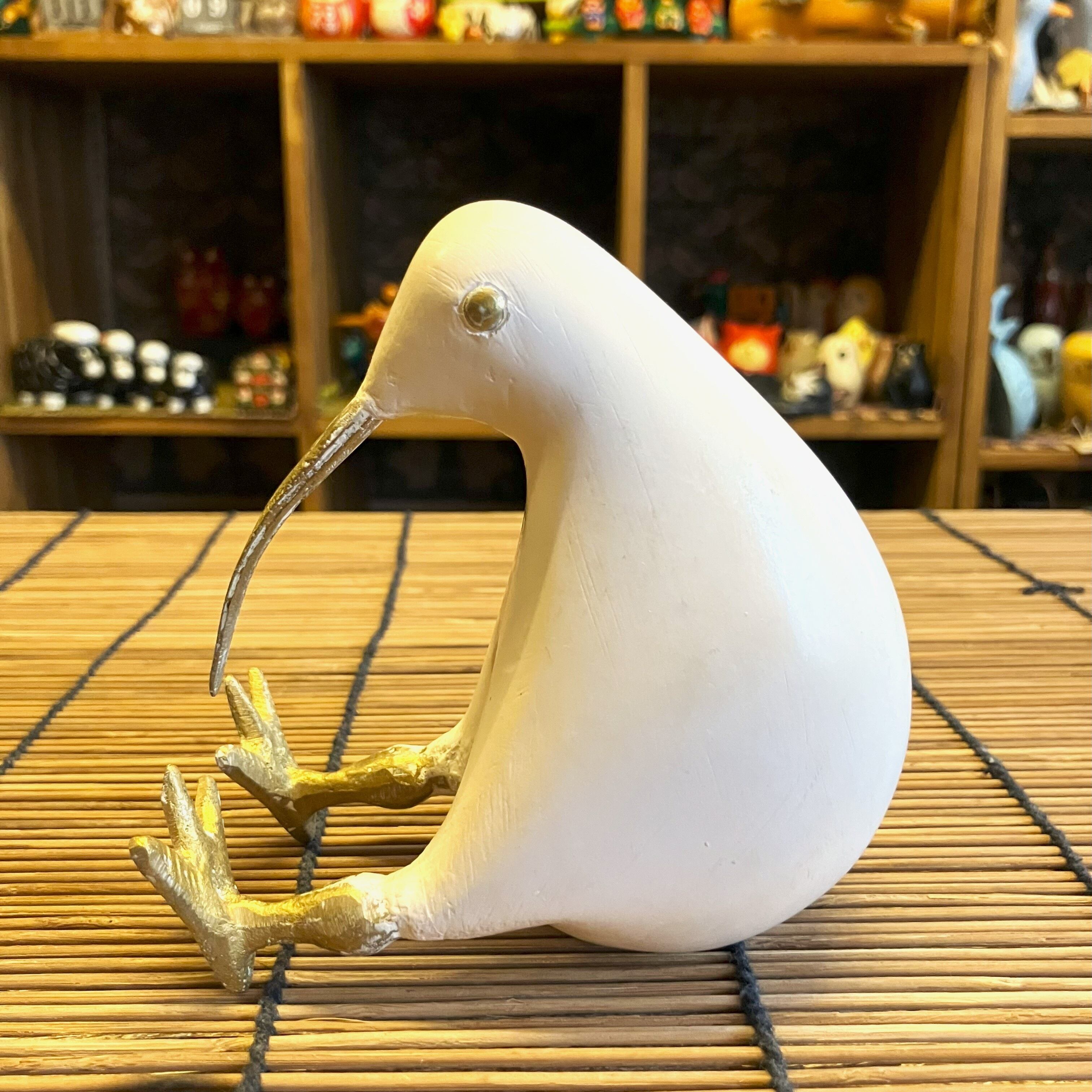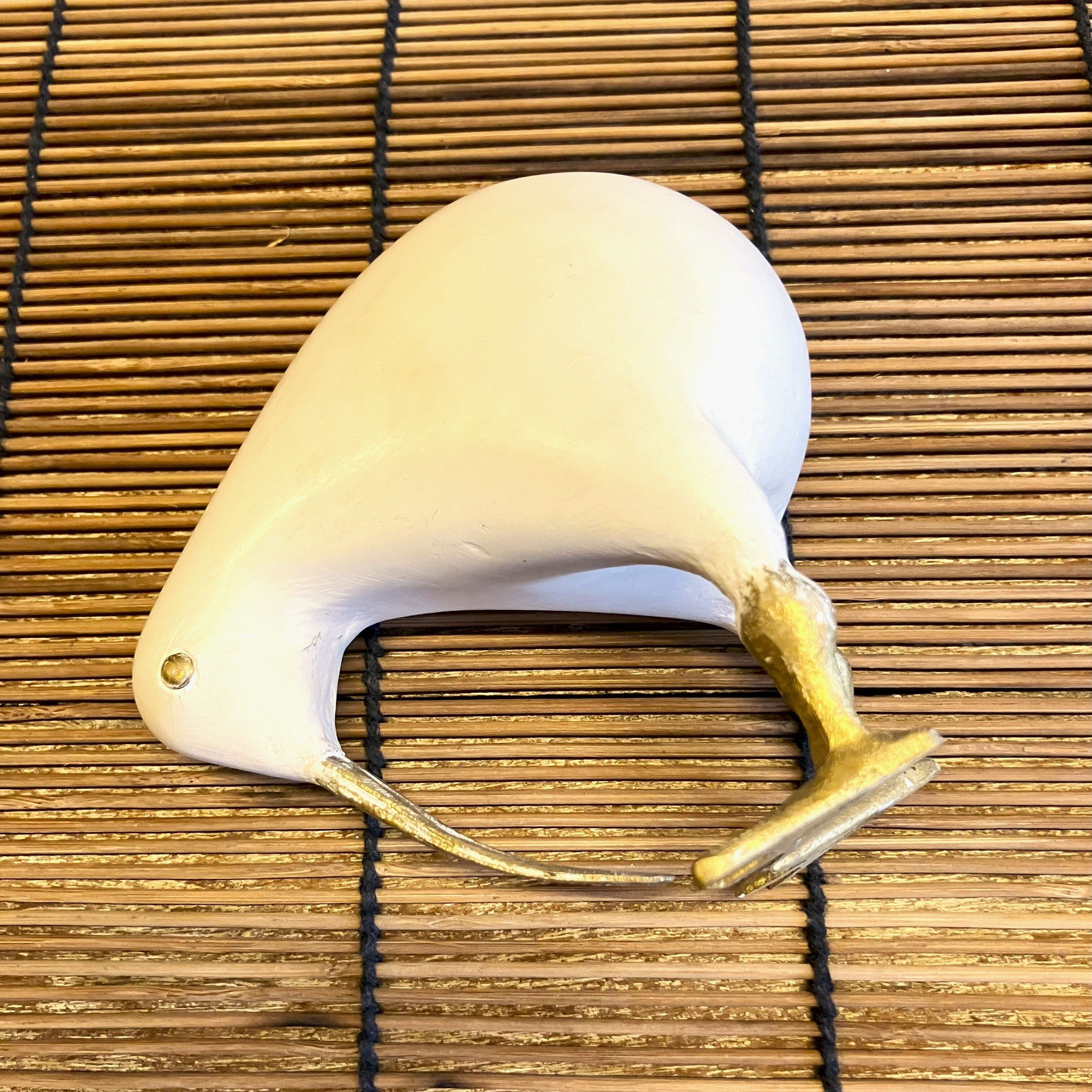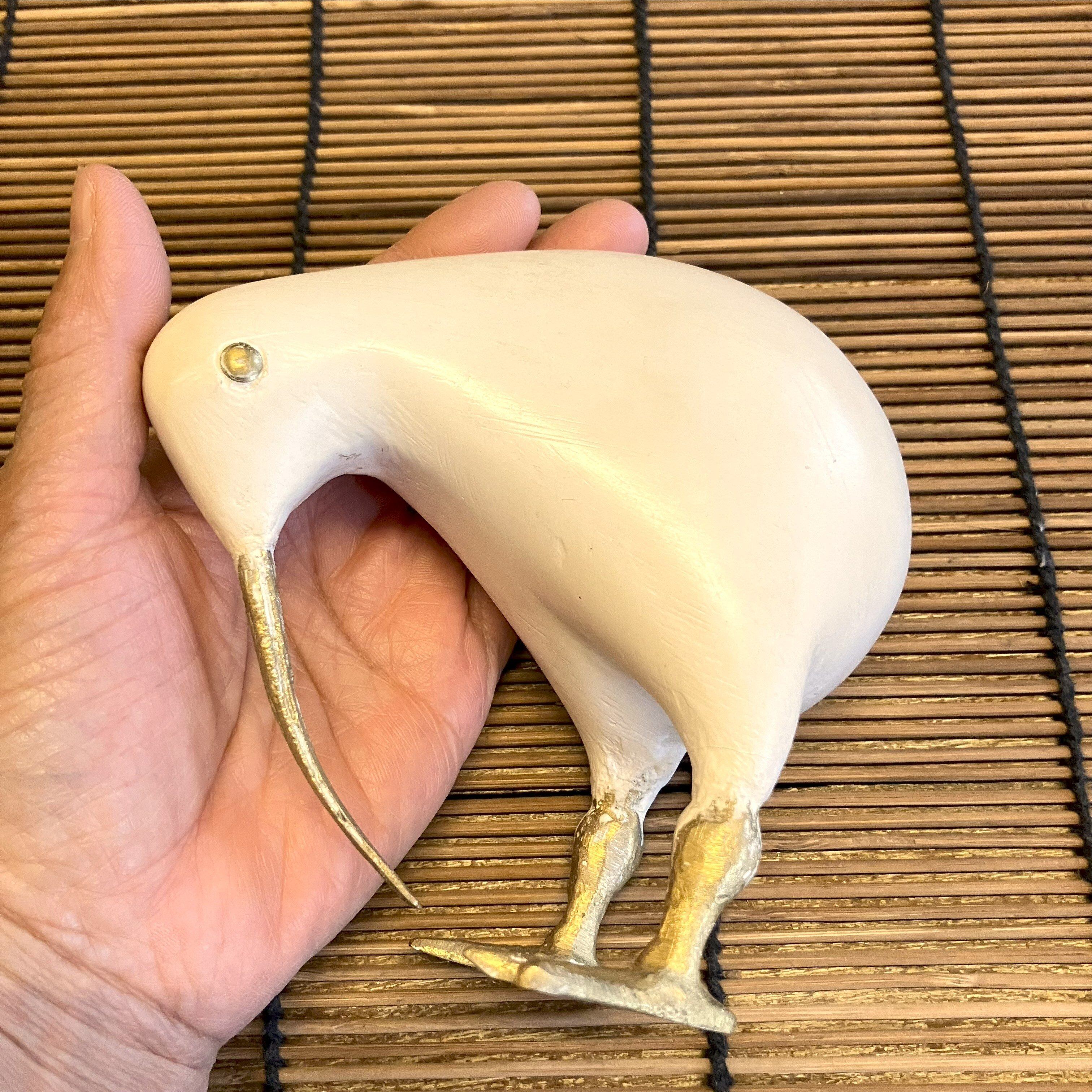 なめらかな手触りの木製ボディに、くちばしと足が真ちゅうで作られた『キウイ』のオブジェ