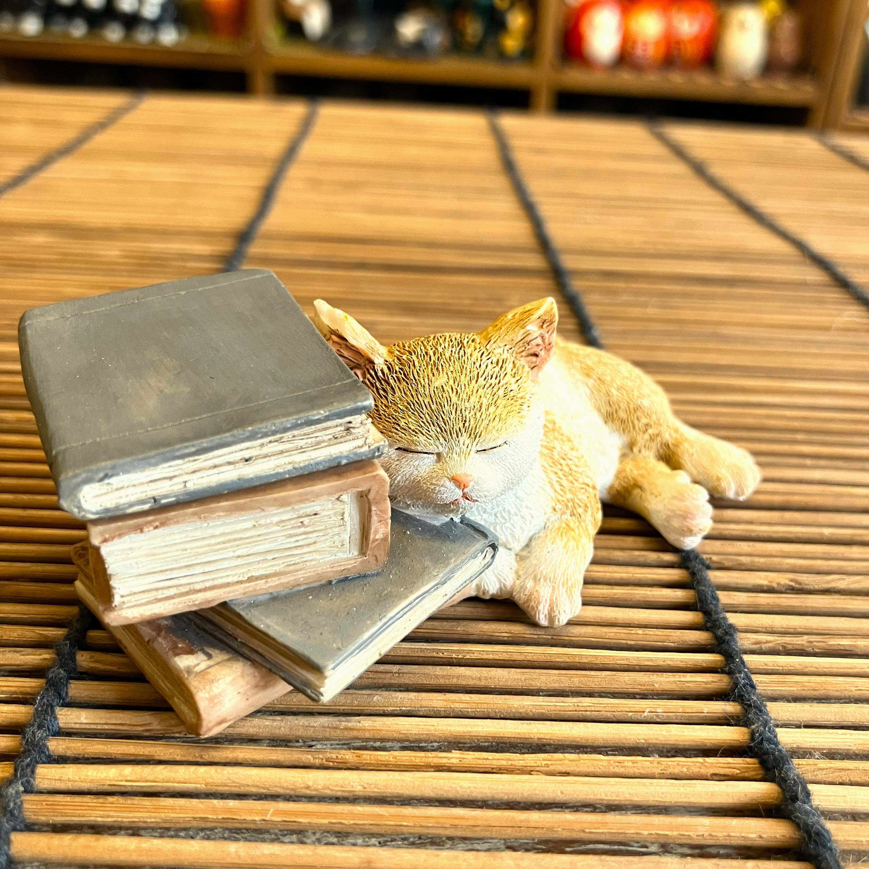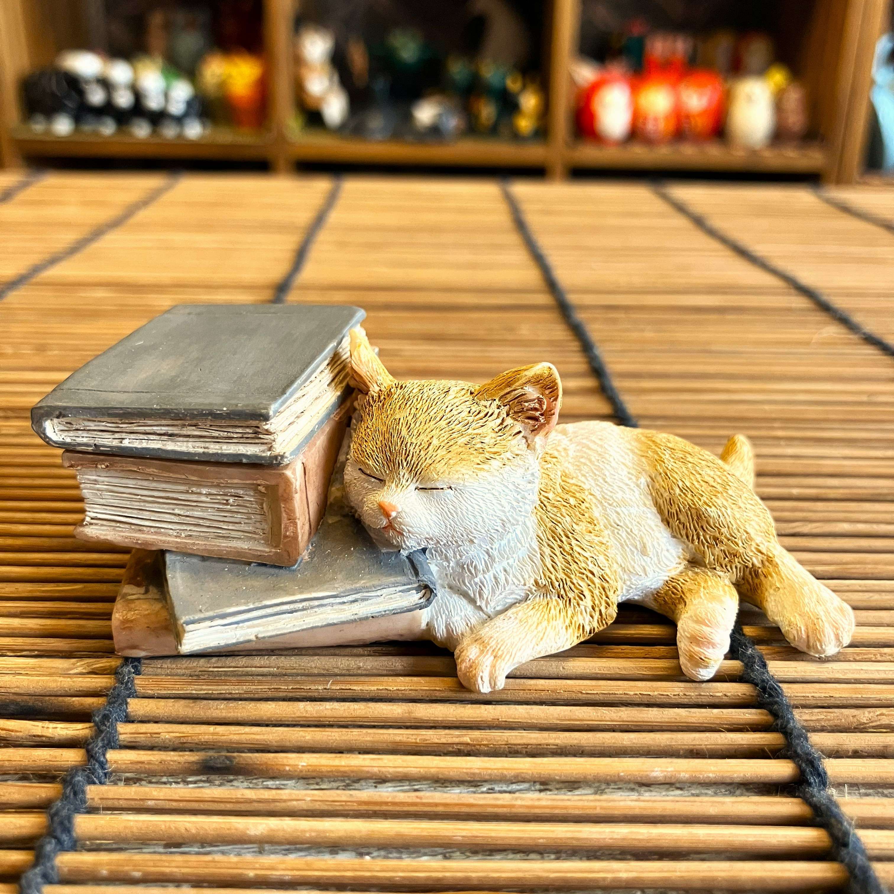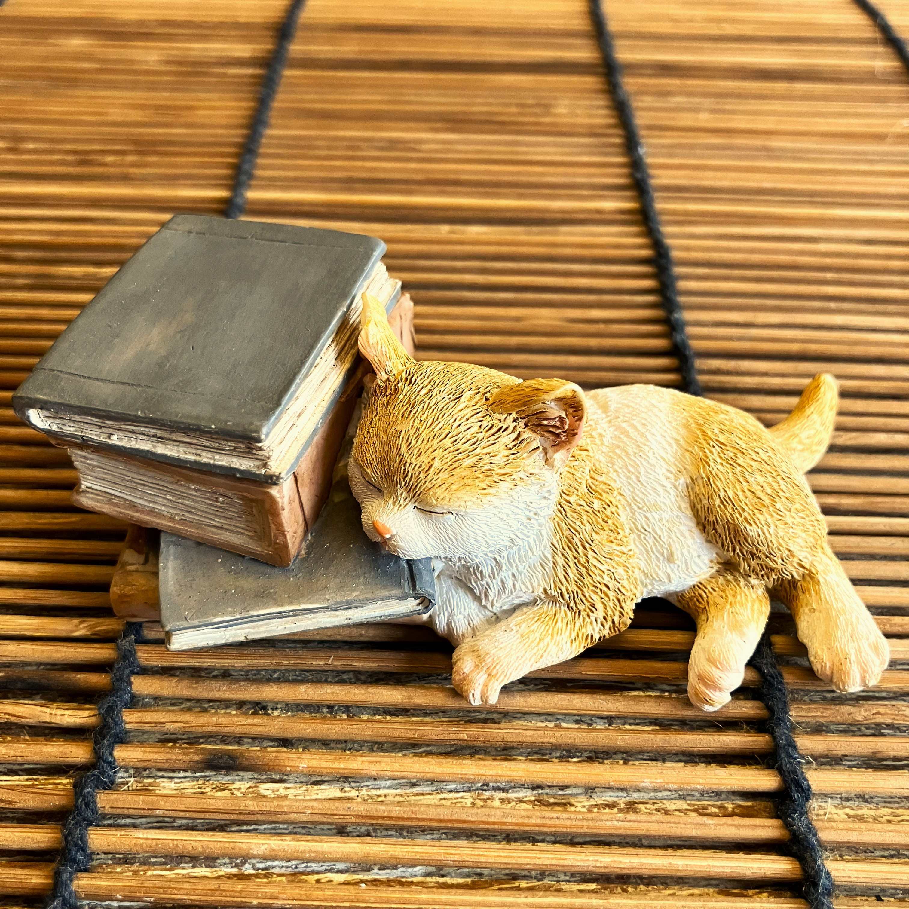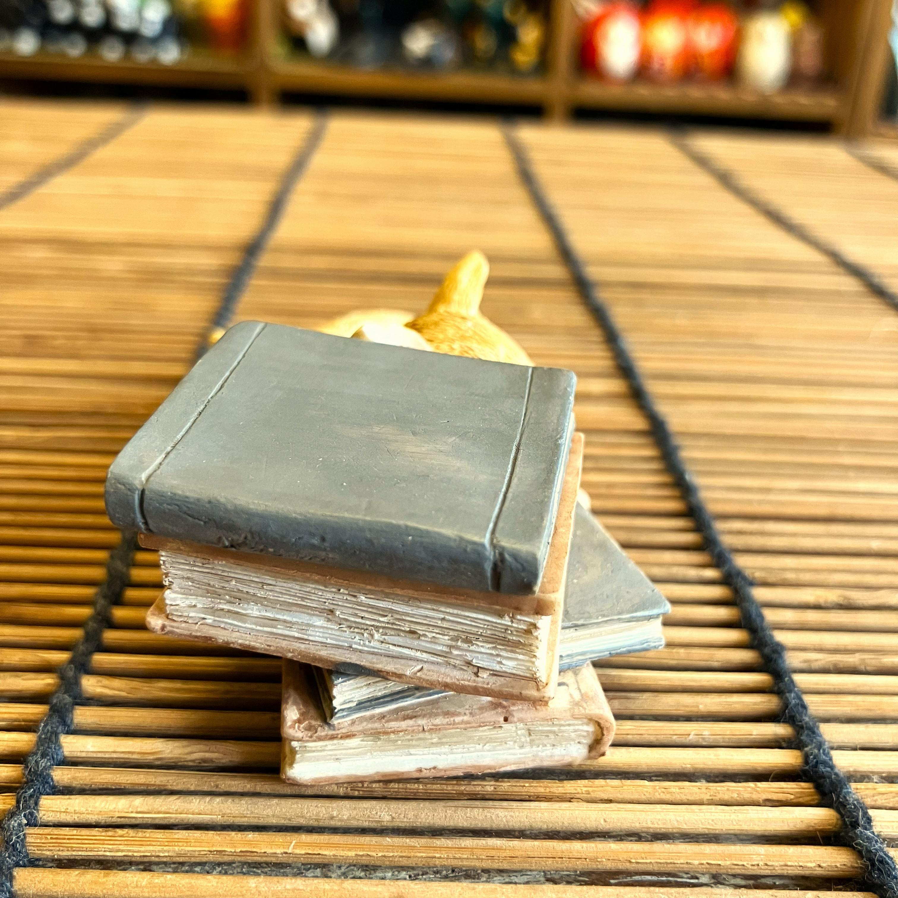 本の上でお昼寝をしているような子猫のオブジェです。