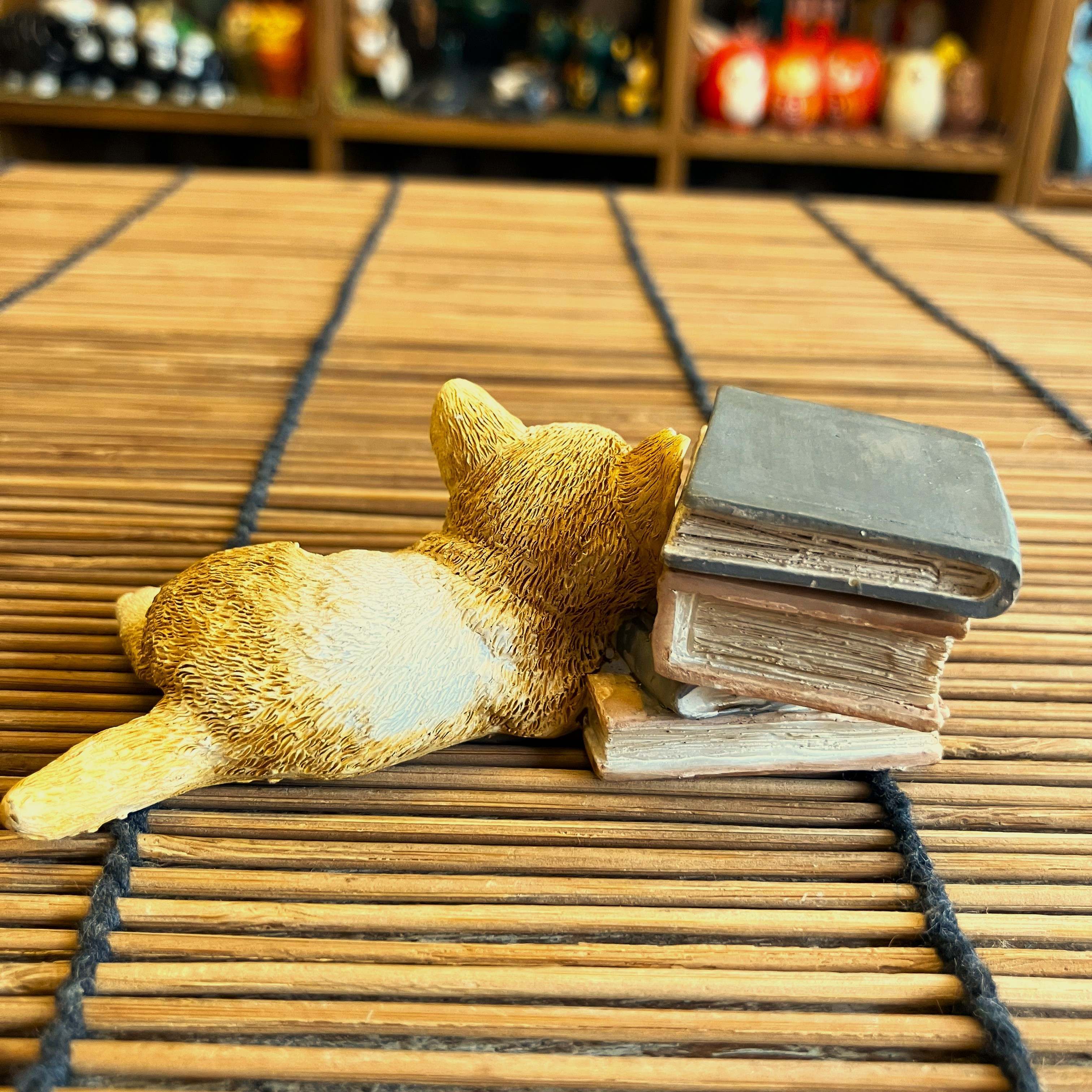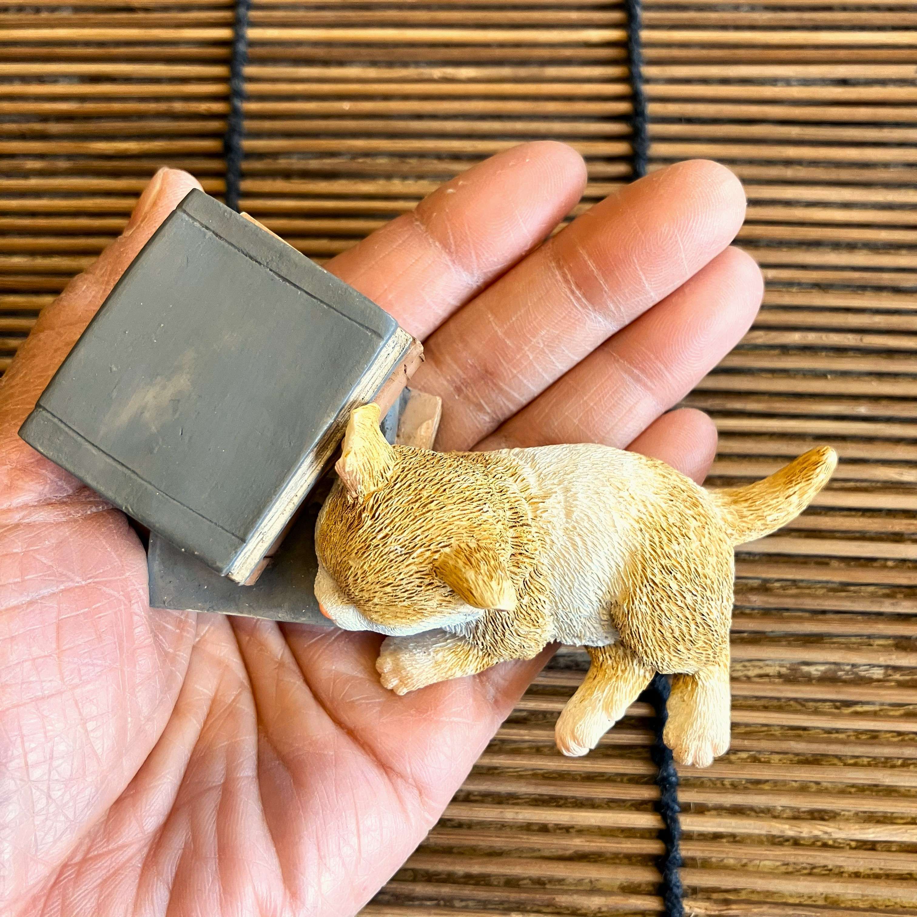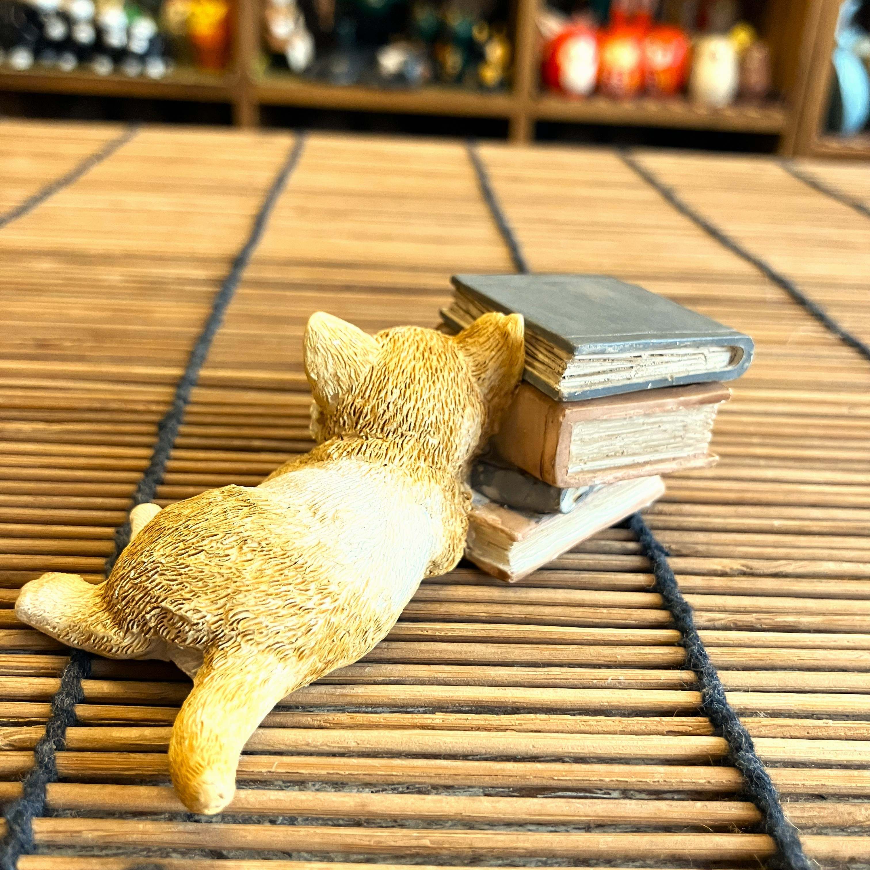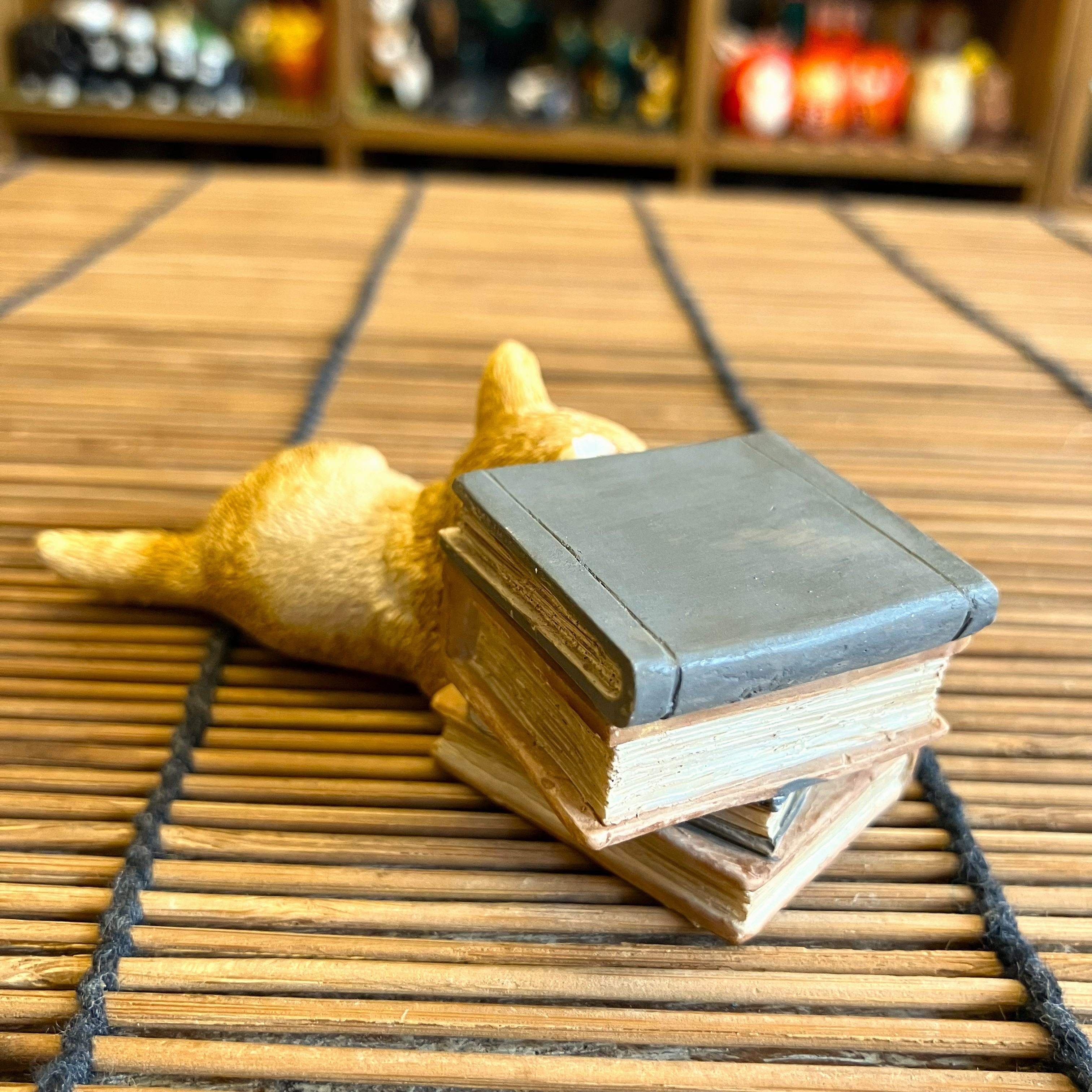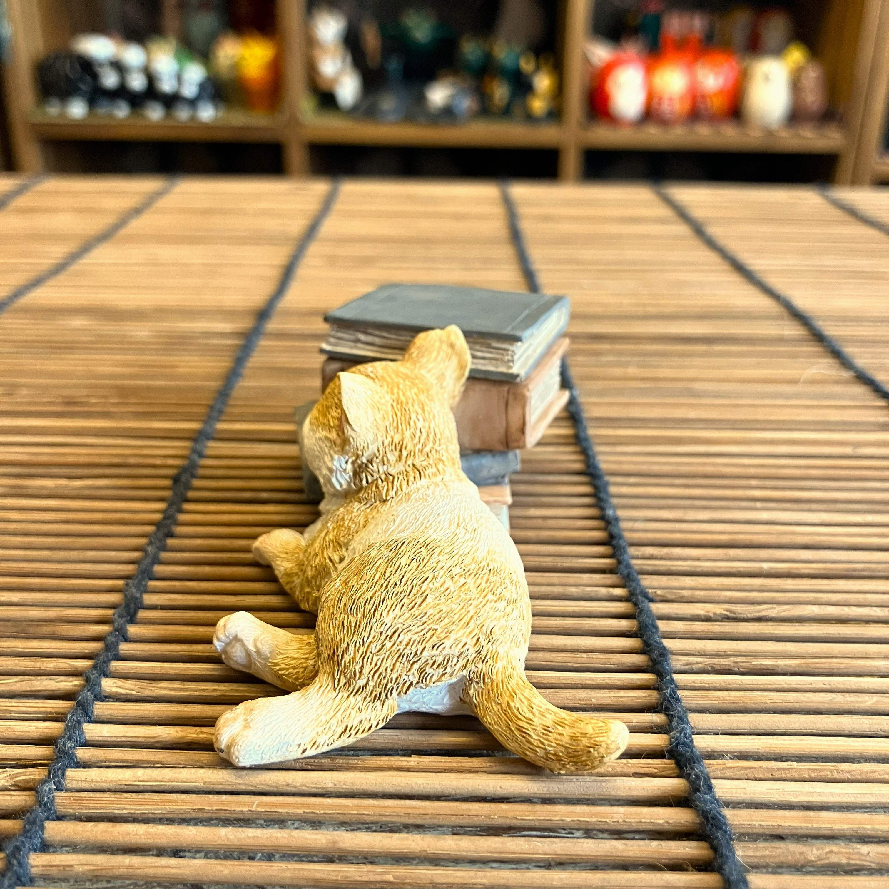 本の上でお昼寝をしているような子猫のオブジェです。