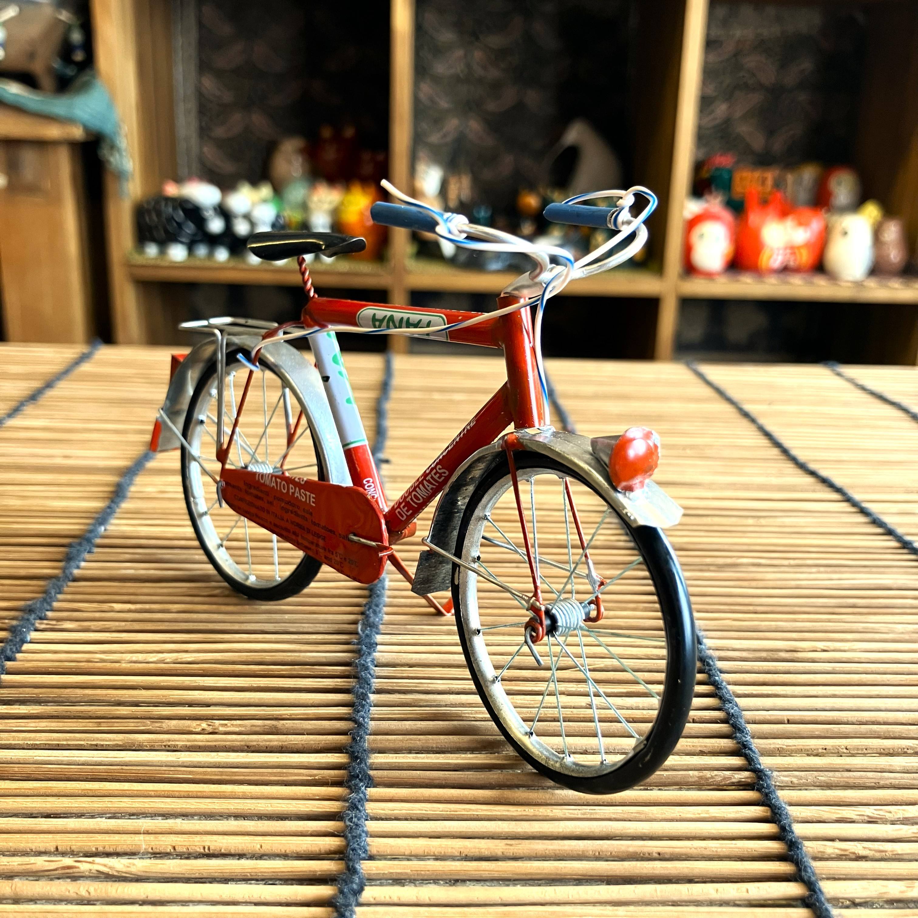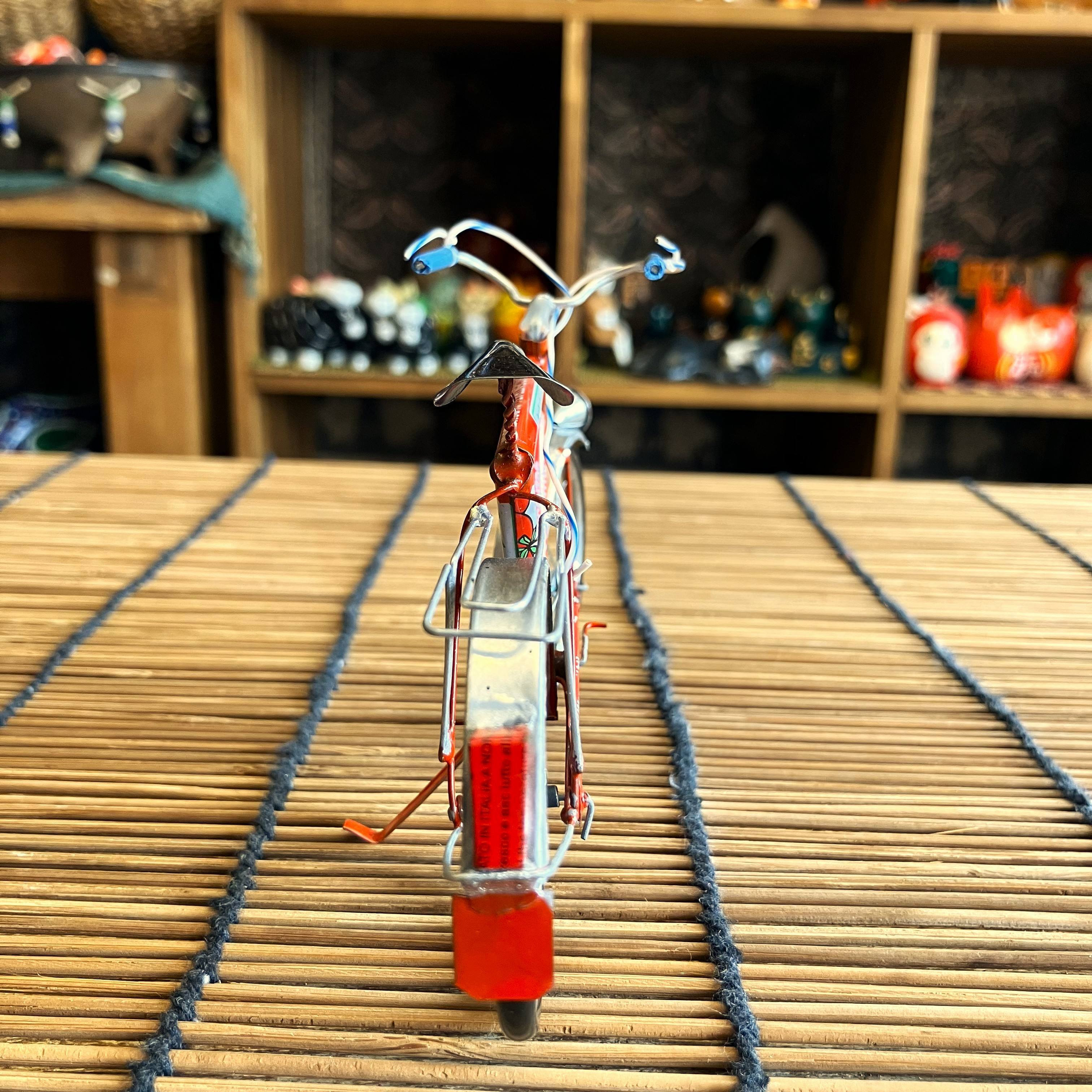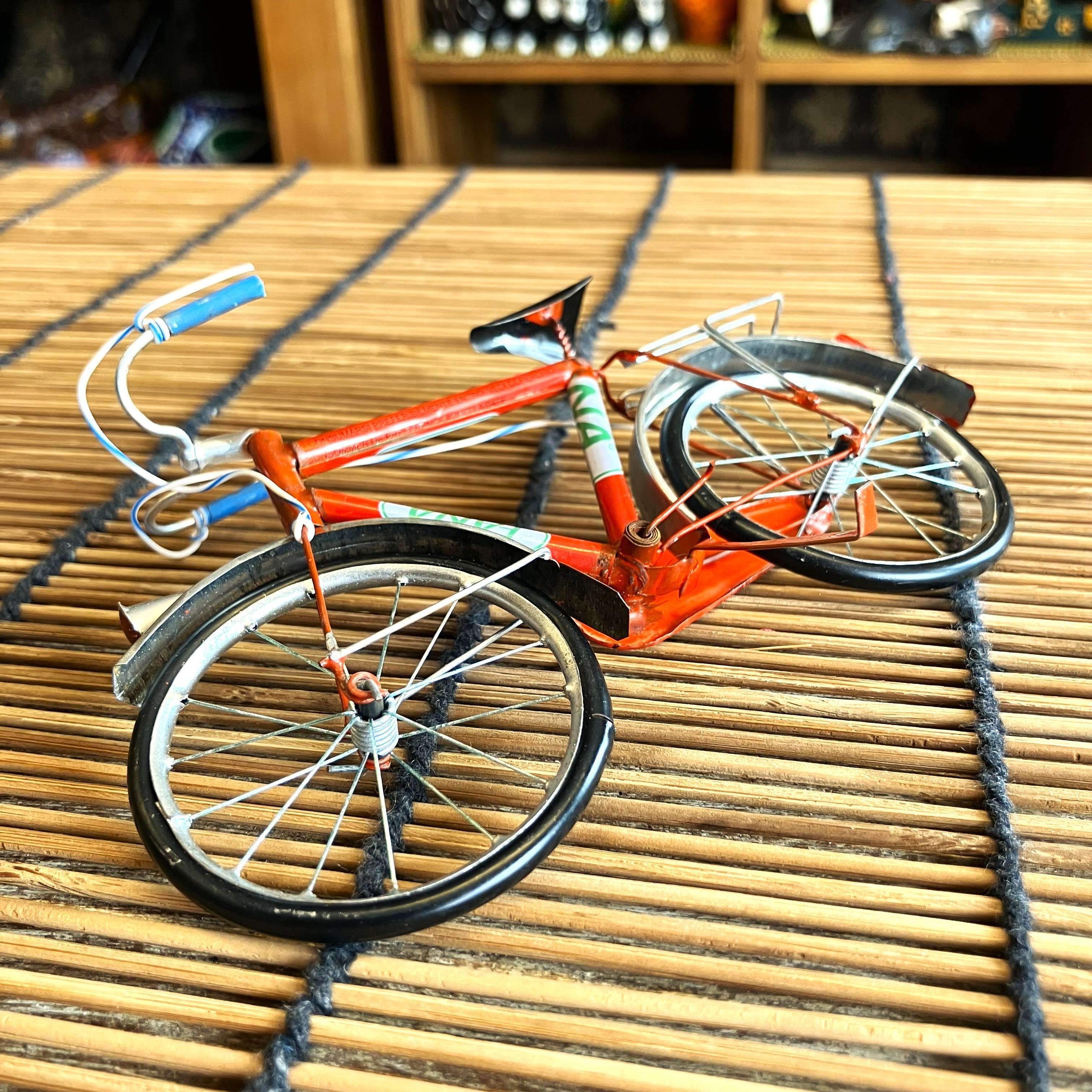 マダガスカル製で空き缶をリサイクルして手作りされた可愛い自転車オブジェです。