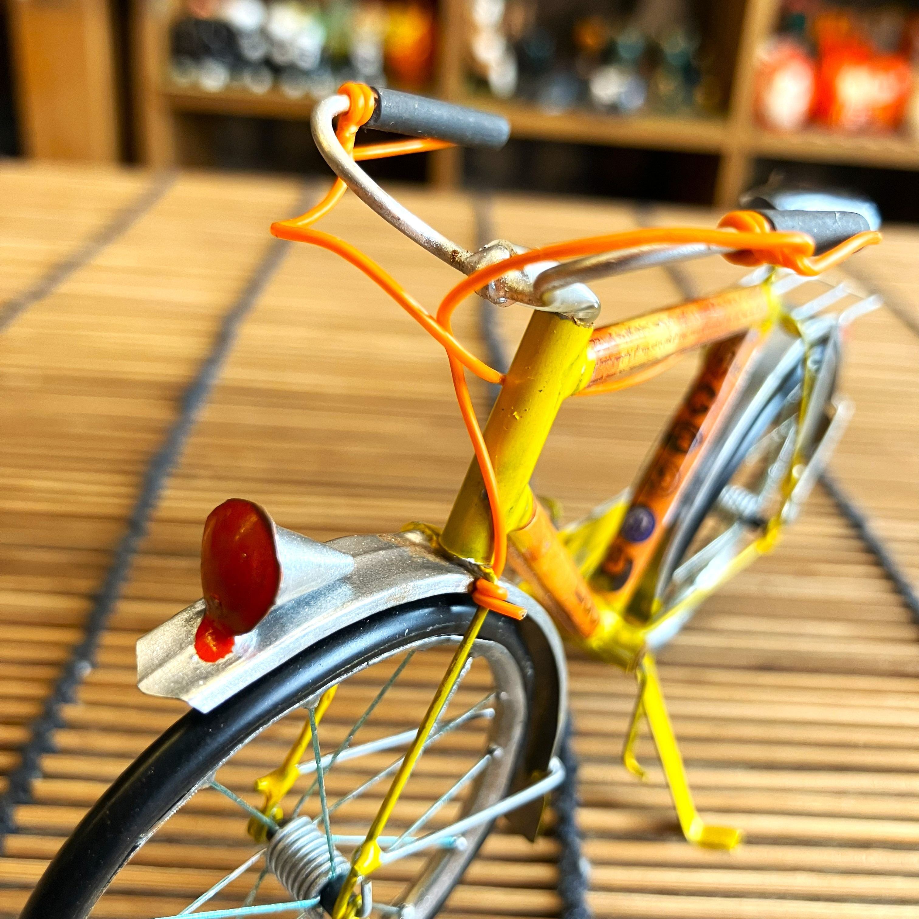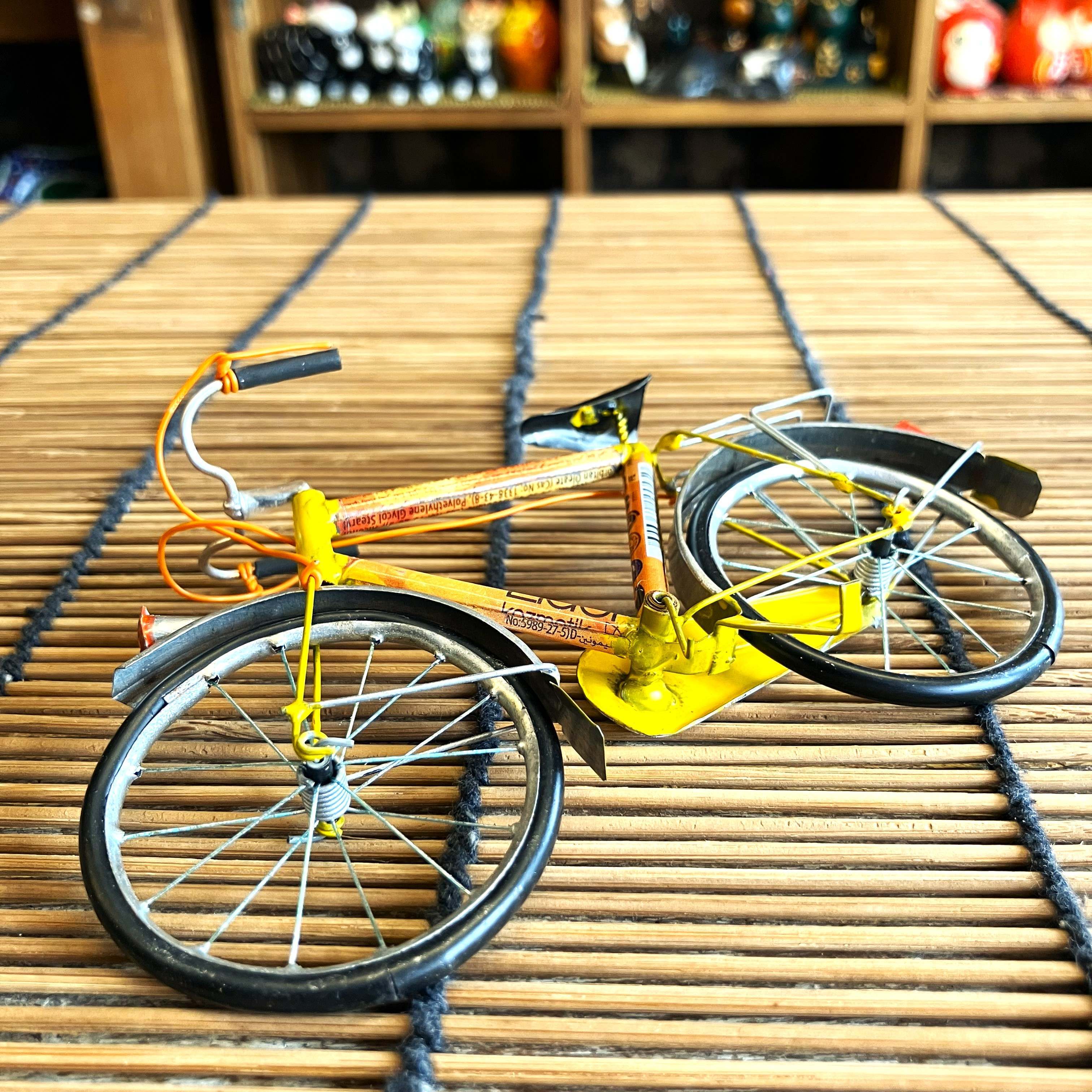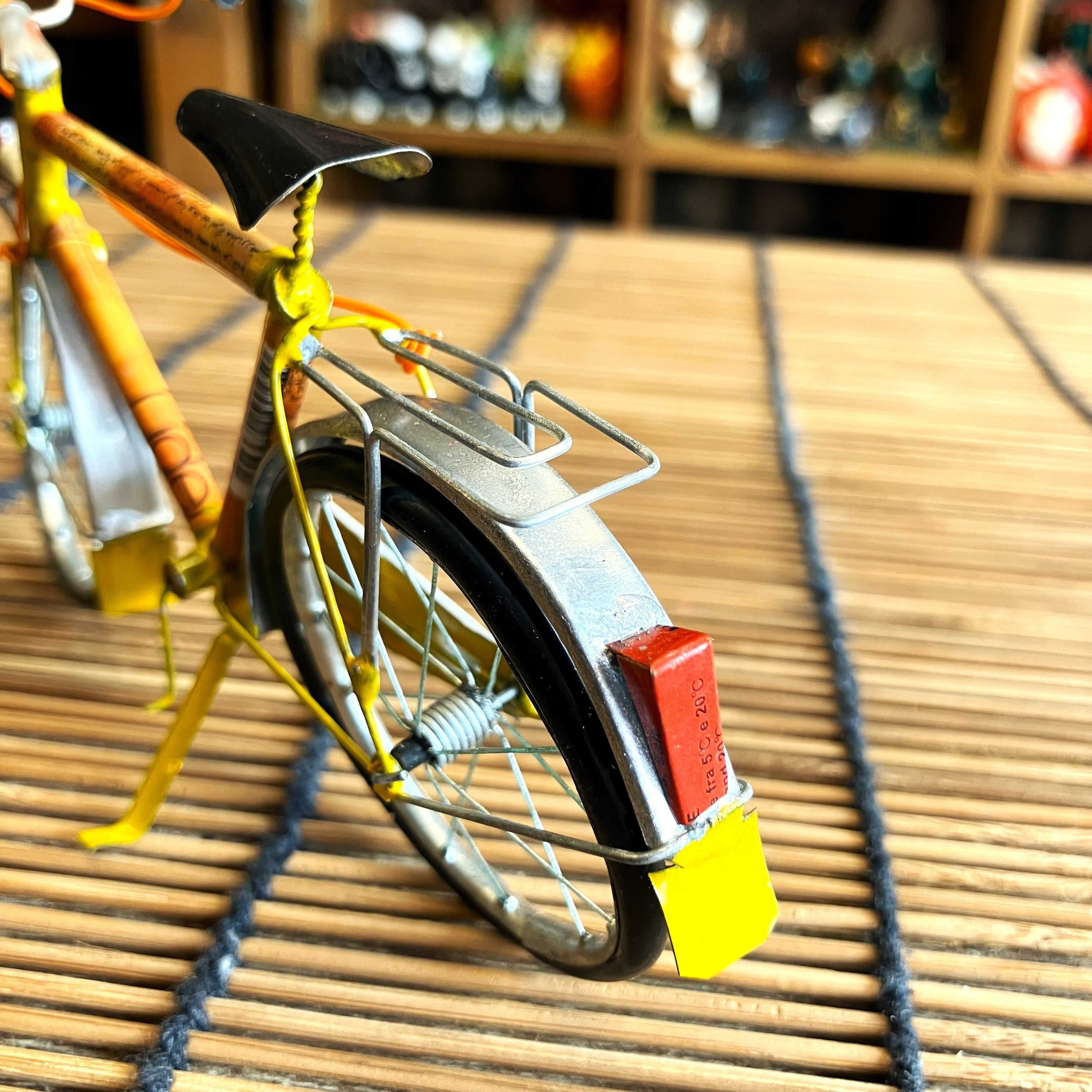 マダガスカル製で空き缶をリサイクルして手作りされた可愛い自転車オブジェです。