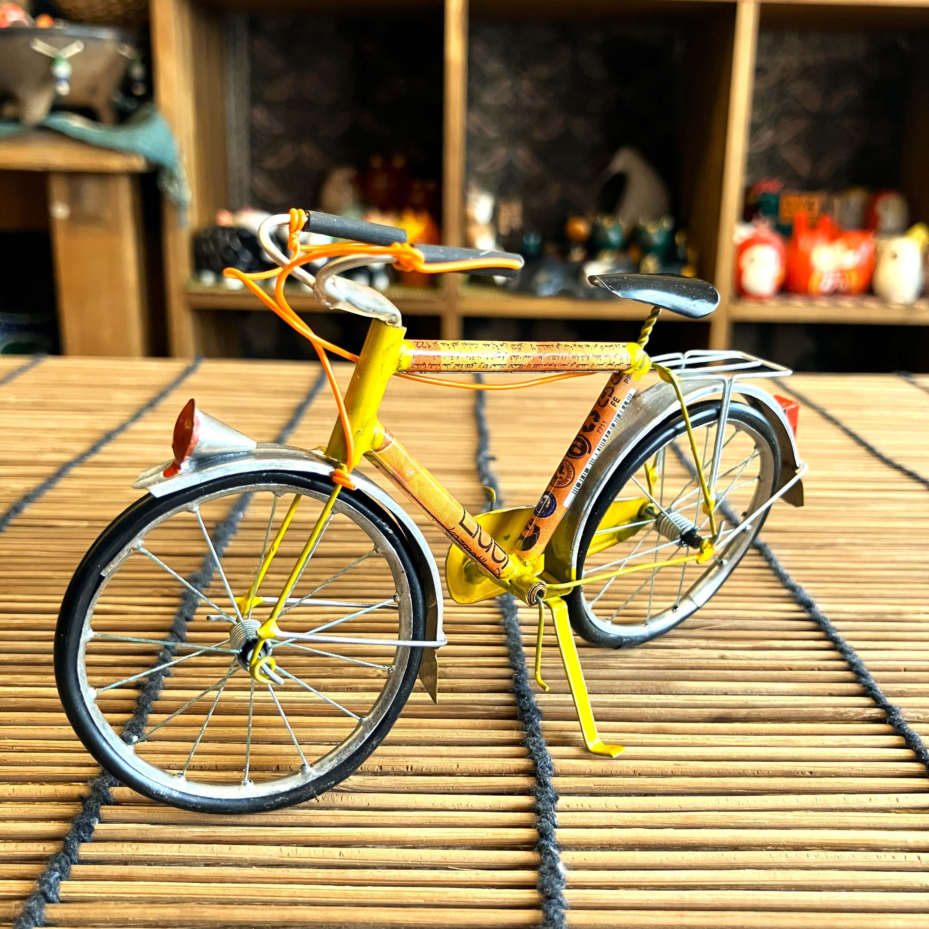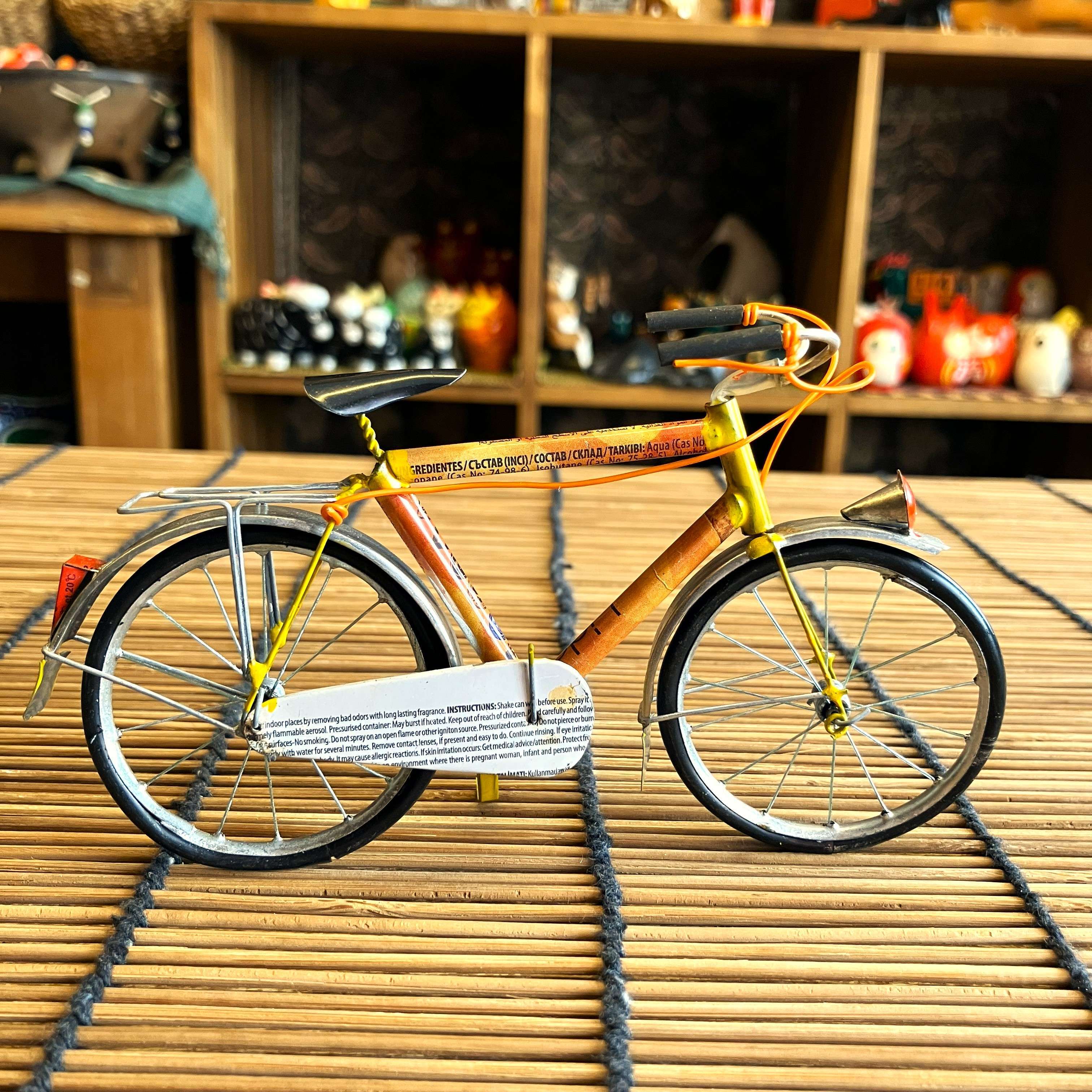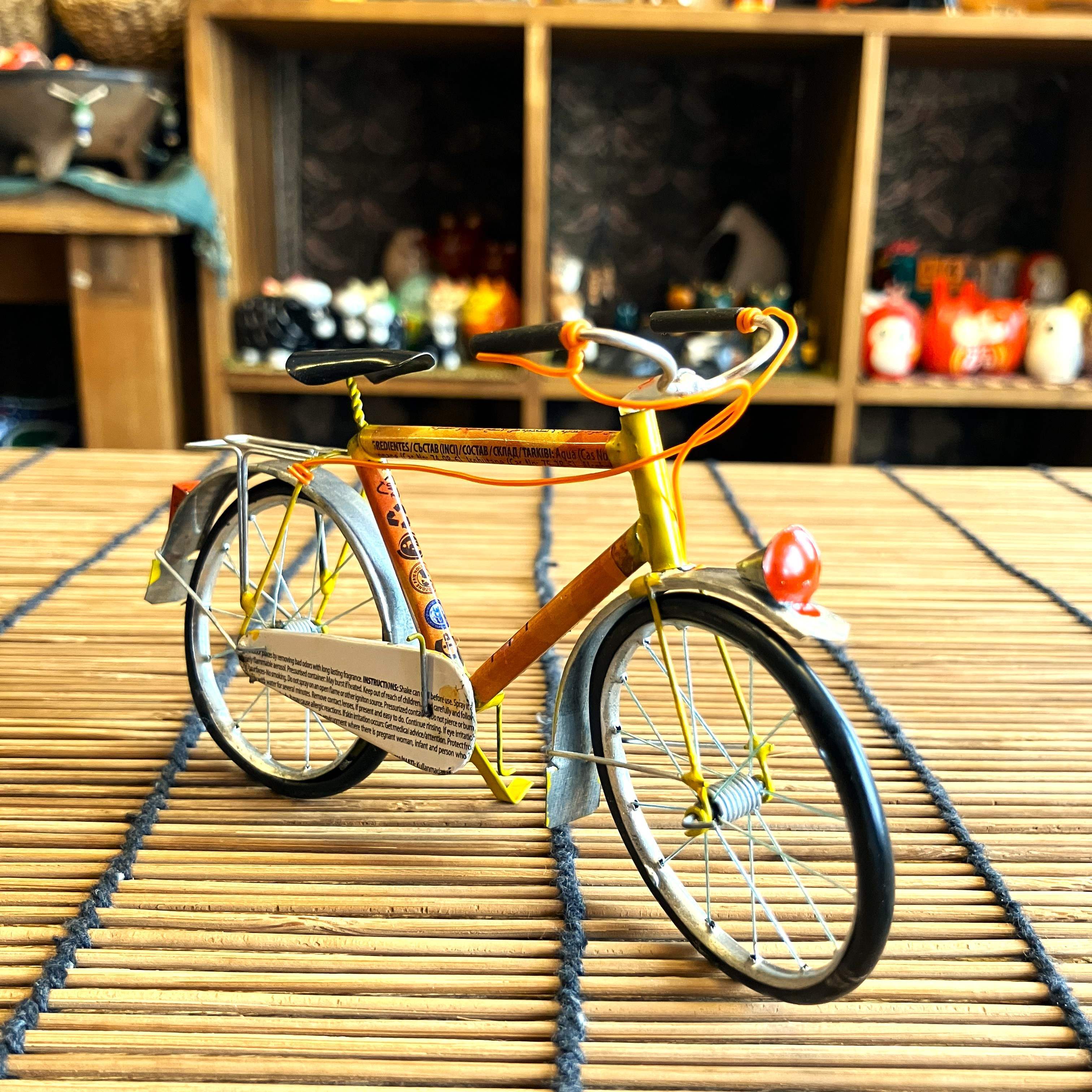 マダガスカル製で空き缶をリサイクルして手作りされた可愛い自転車オブジェです。